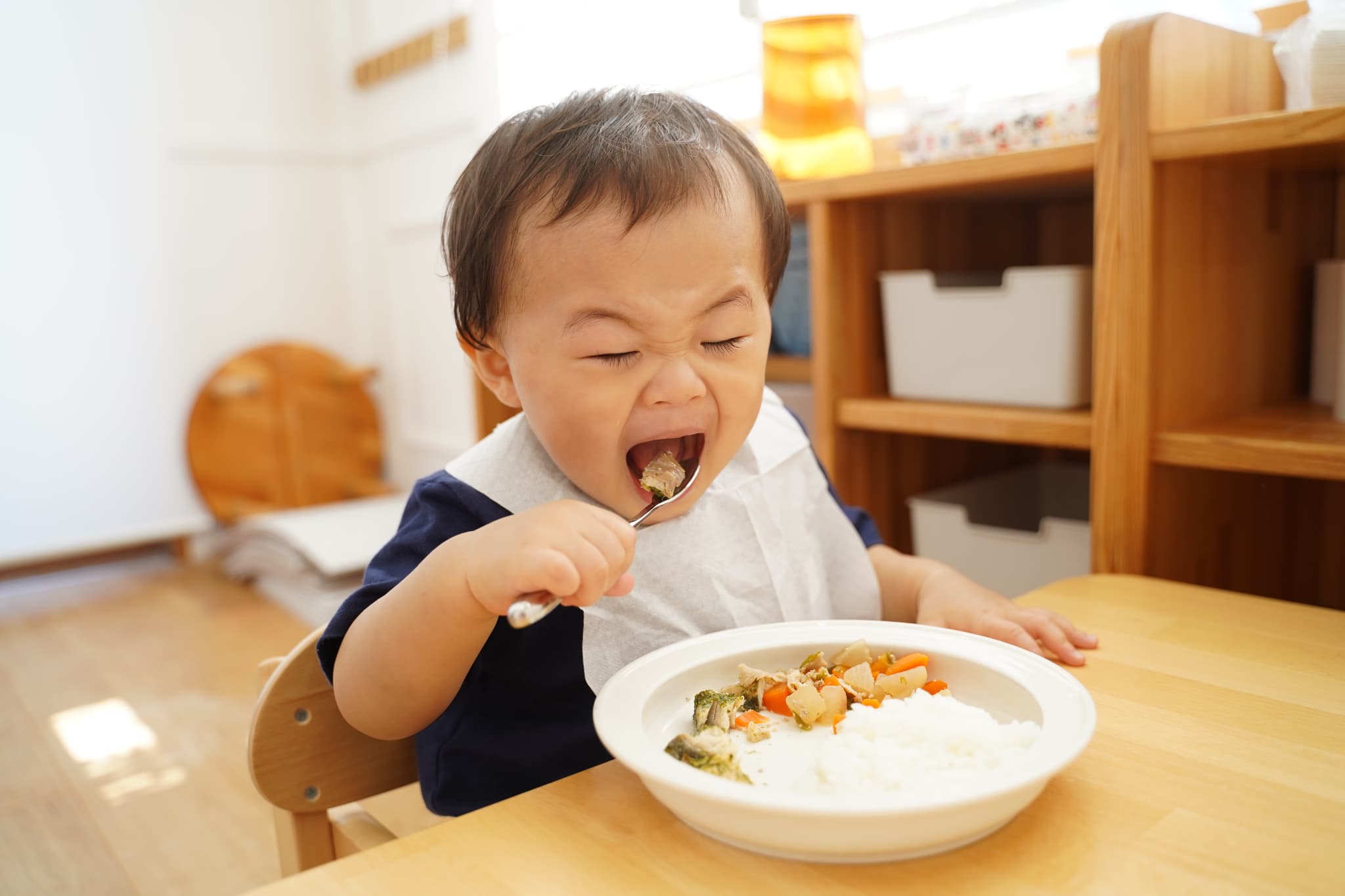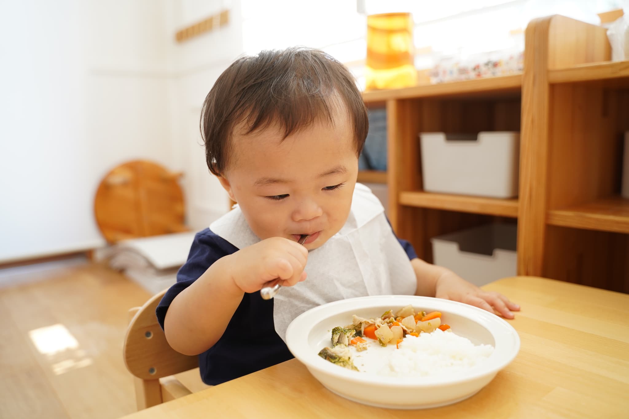 自分でスプーンを持ってお口まで運ぶこともできるよ✨