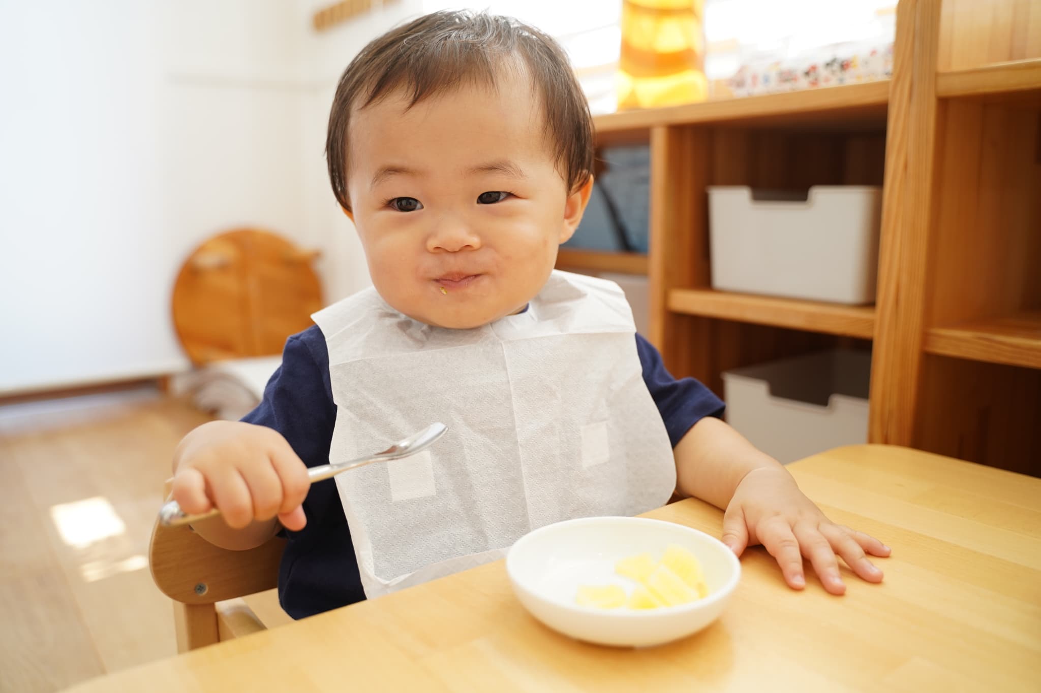 1人座りやスプーンの持ち方なども日に日に少しずつ上手に成長しています🥄✨