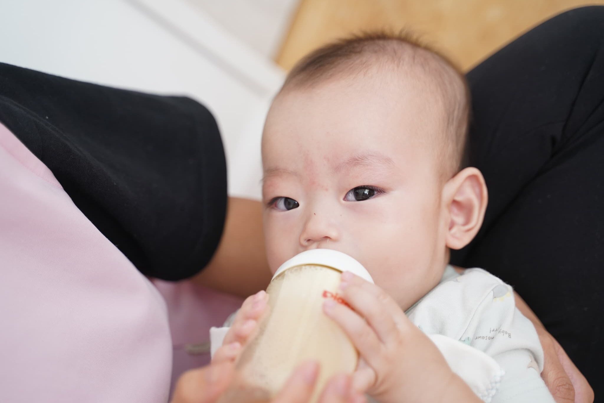 自分で哺乳瓶を持つこともできるんだ〜🖐️