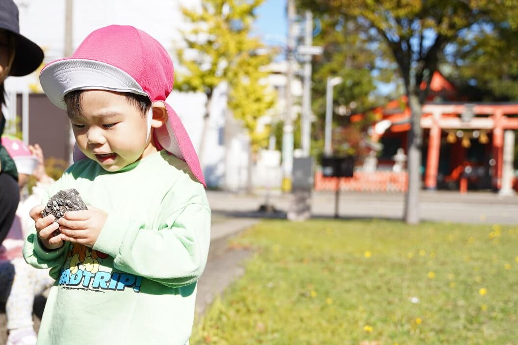 落ち葉もたくさん落ちており、拾ったり、足で踏んで音を楽しんだりしていました🍂