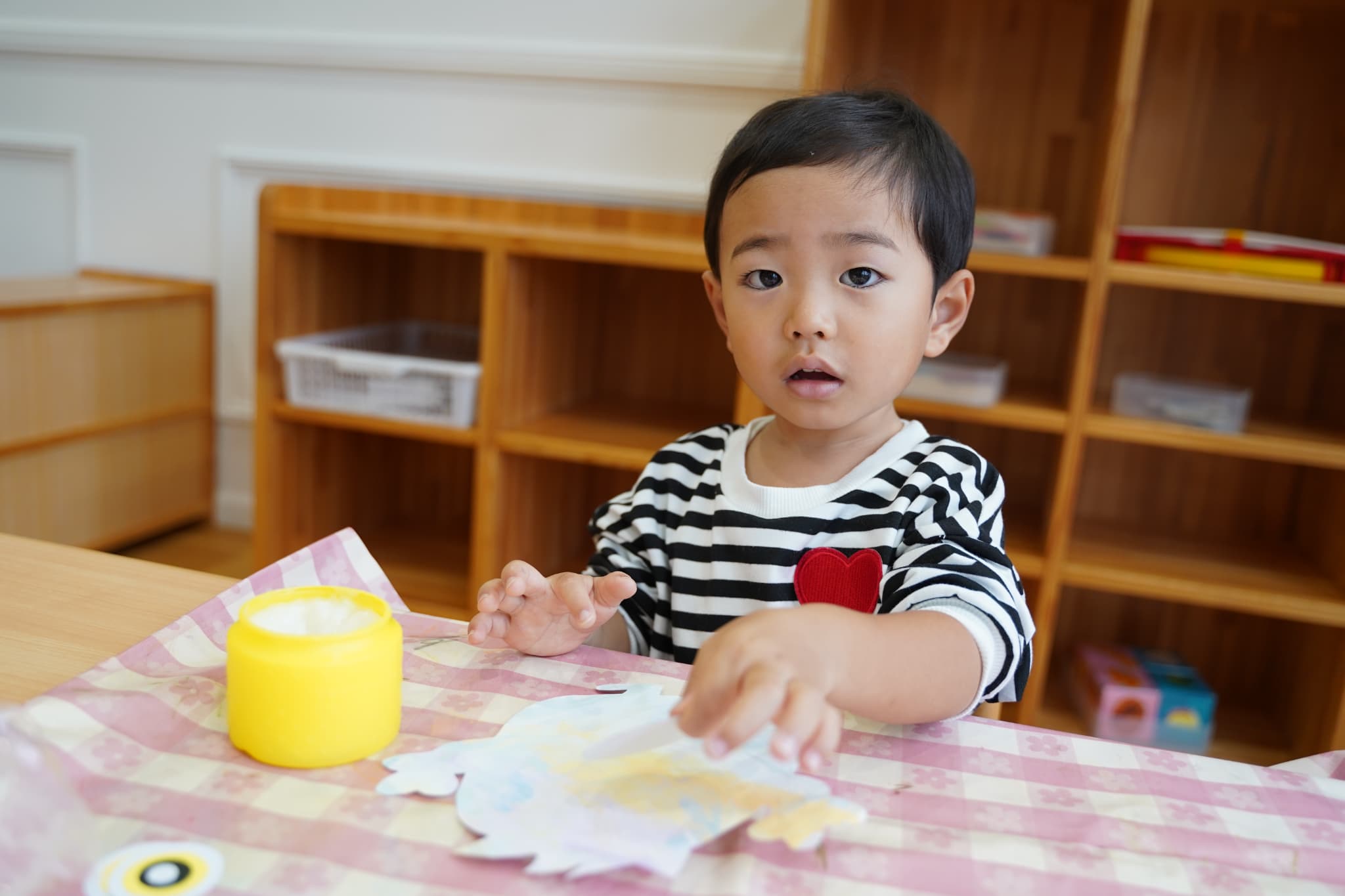 ノリを使って貼ってみました!指を1本出して上手に貼ることができました✨