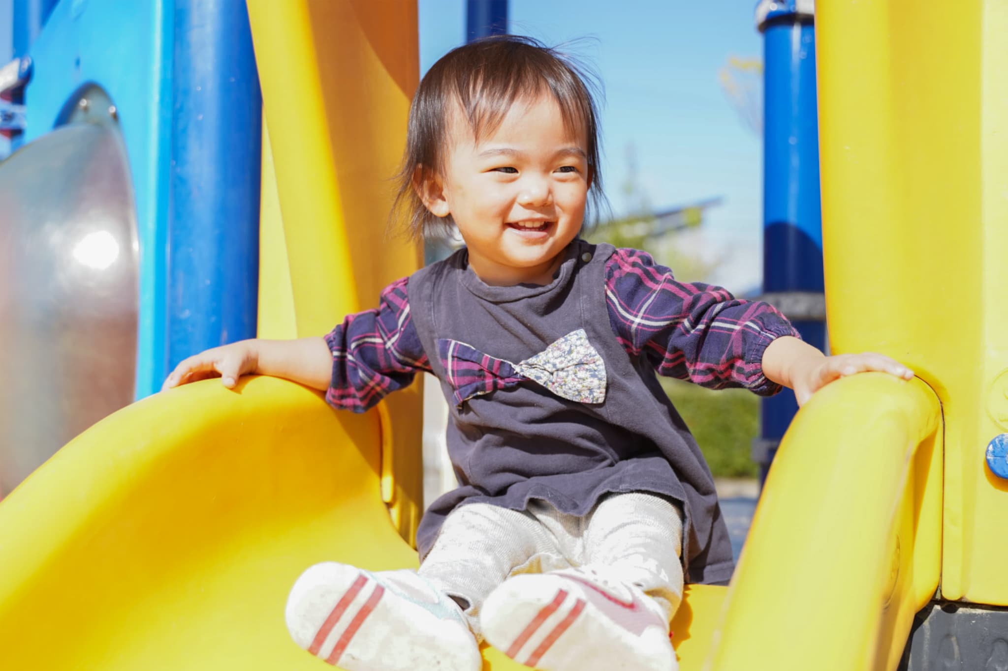 頭がぶつからないようにトンネルをくぐってみたり、段差を四つ這いで上り下りしたり、
