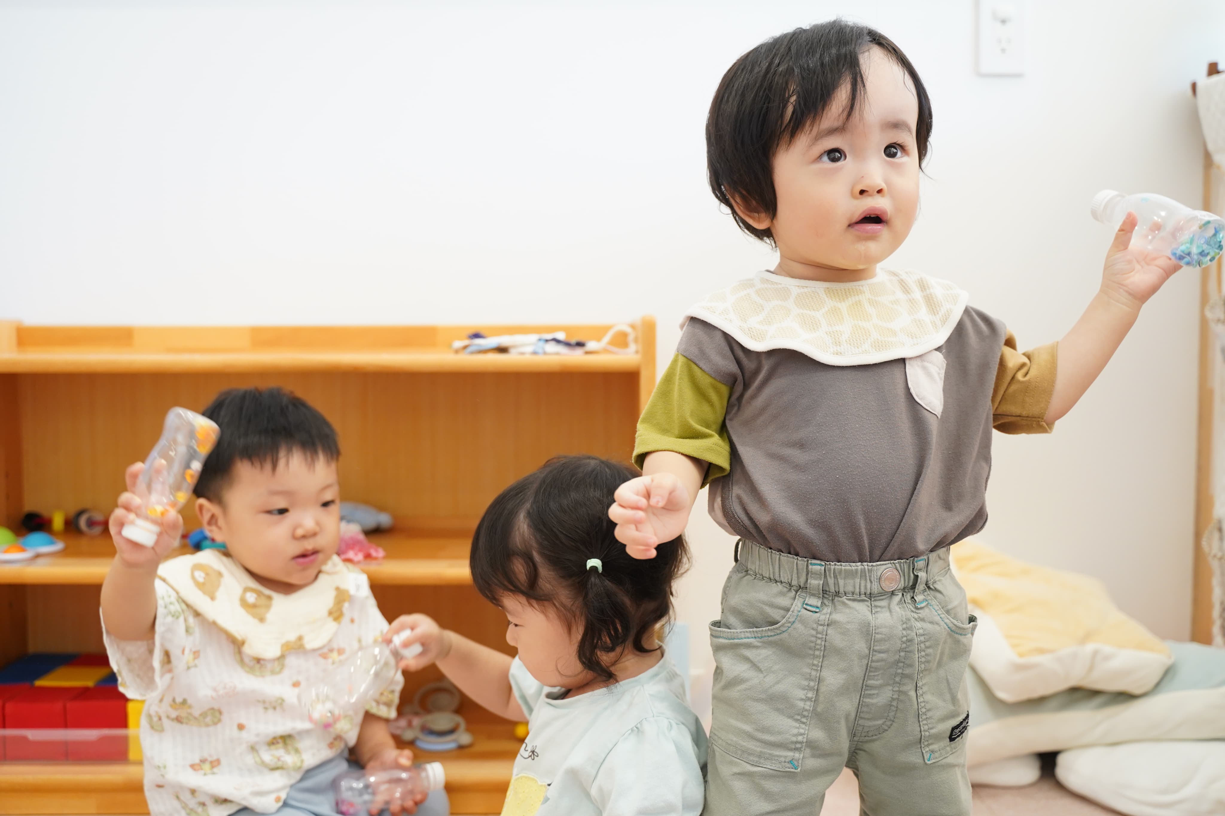 それぞれ手にマラカスを持って「おもちゃのチャチャチャ」を歌います~🎶