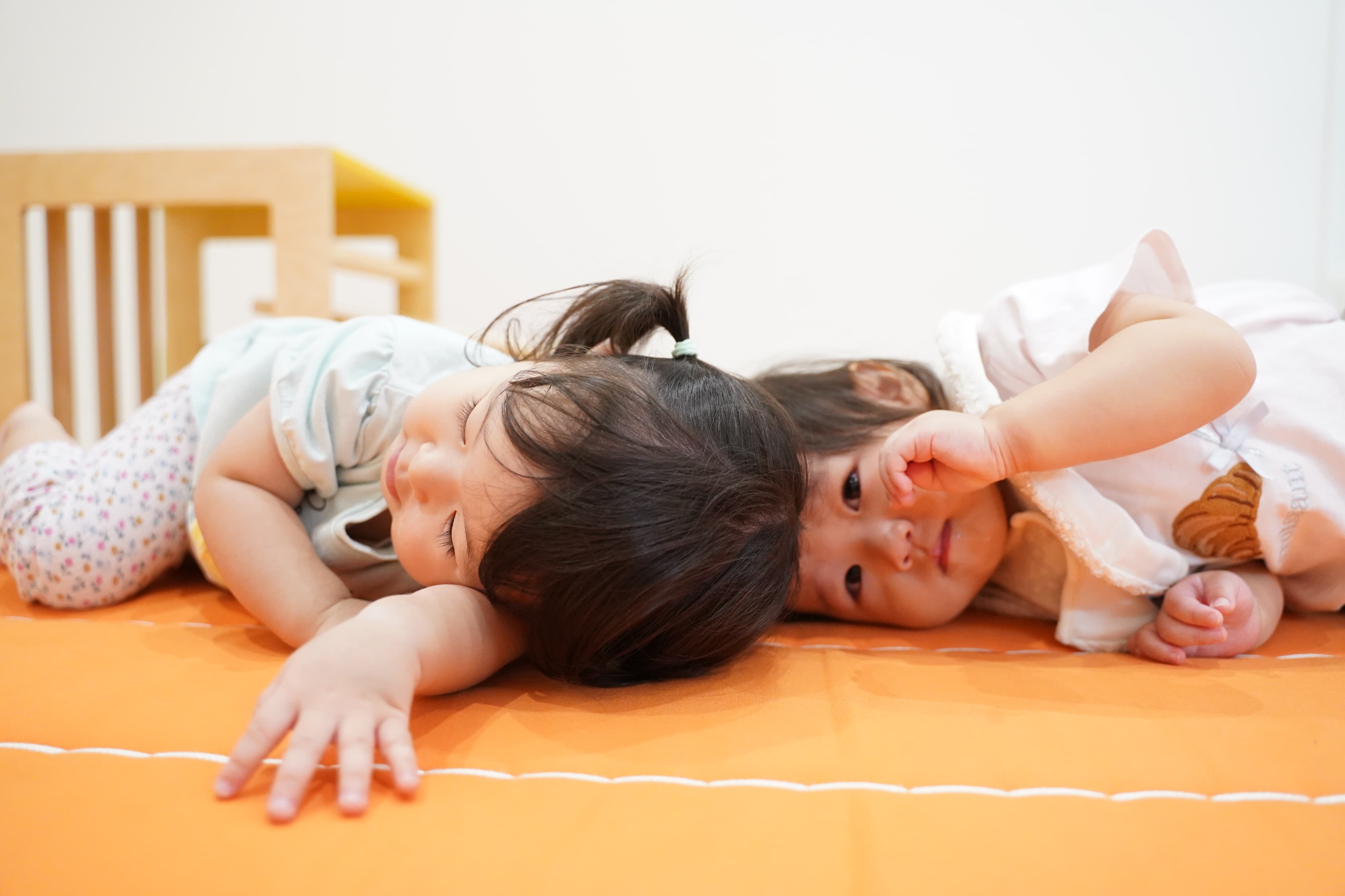 ゴロゴロ〜とプレイルームに入った瞬間、マットでひと休み😮💨