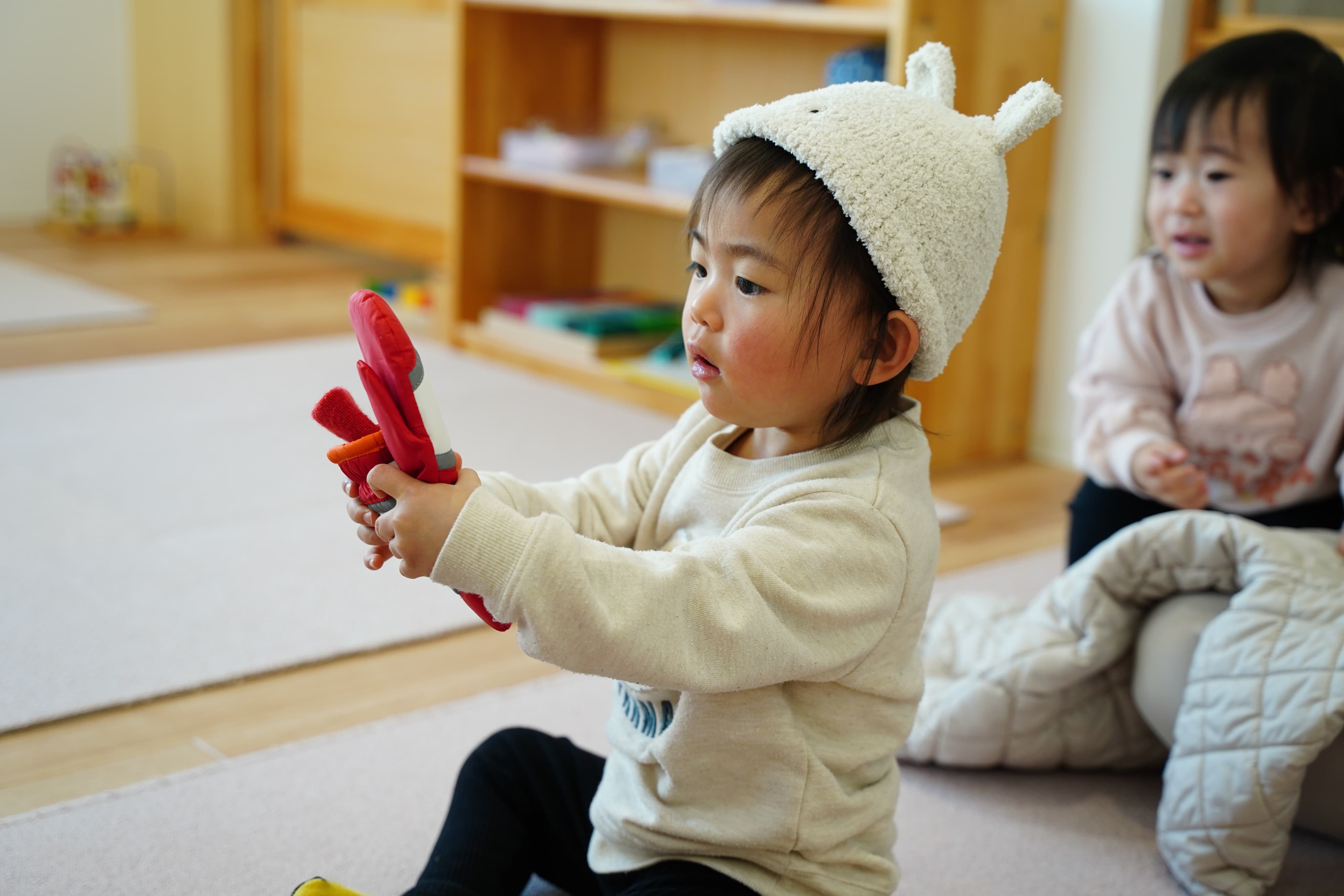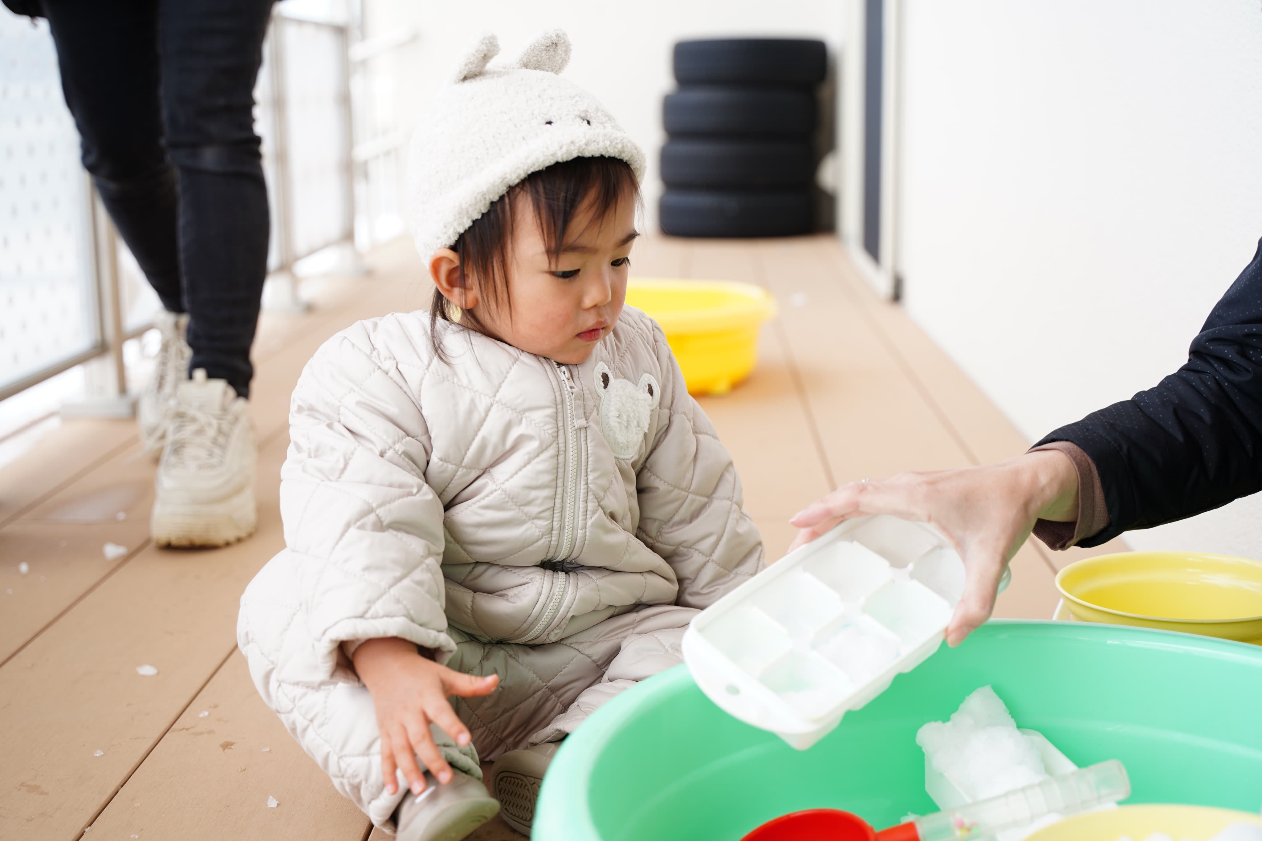 初めは冷たそうに手を離していましたが、慣れてくるとぎゅっと握ってみたり、ポイっと投げてみたりと遊びの幅が広がっていました☺️