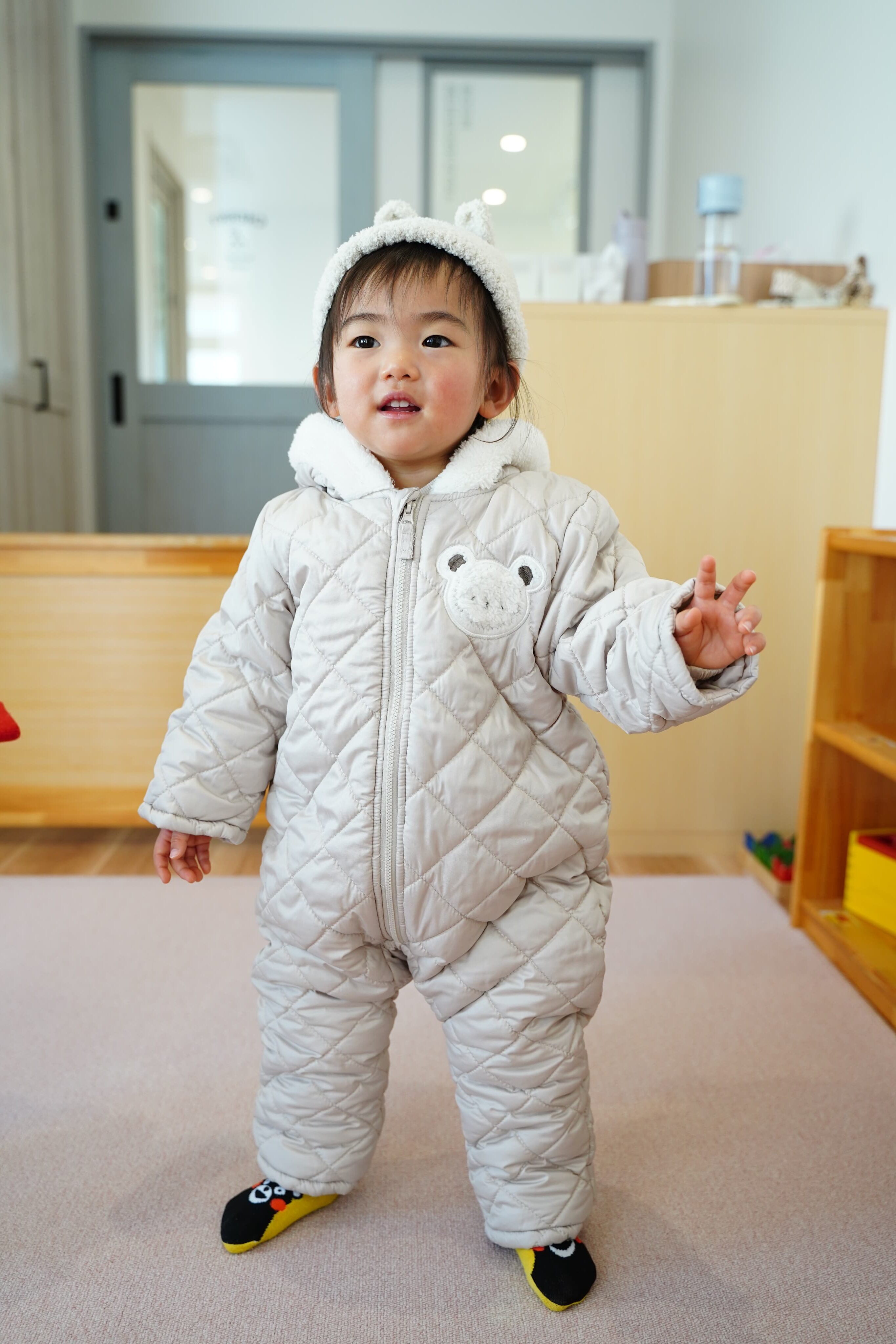 かわいいスキーウェアに着替えたら、テラスにゴー♪