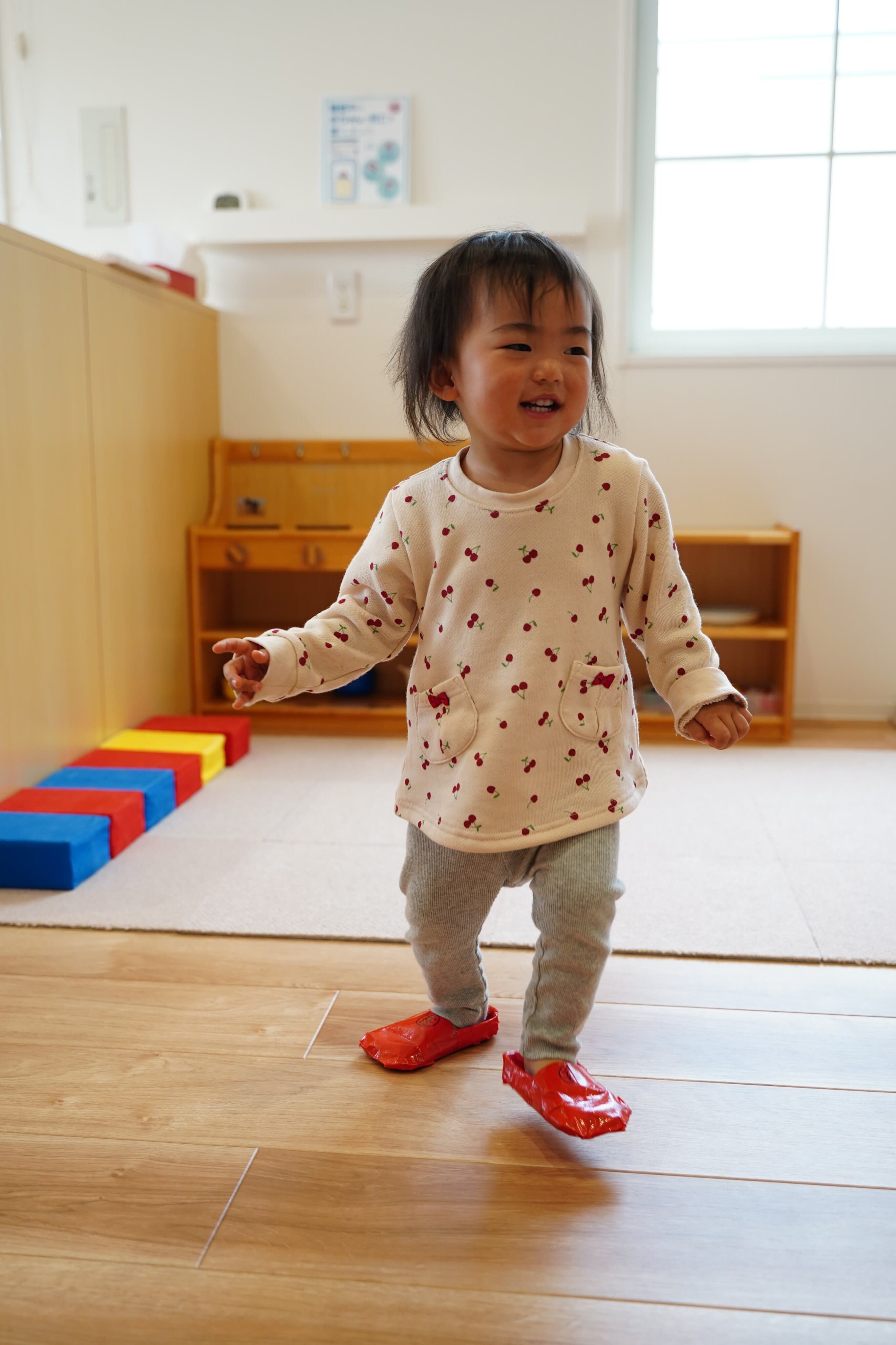 もちろん歩くのも大好き!😆雨で外に出られなくてもスリッパを履いてお部屋をお散歩気分のいちご組さん♫またお散歩に行けるといいな〜👟