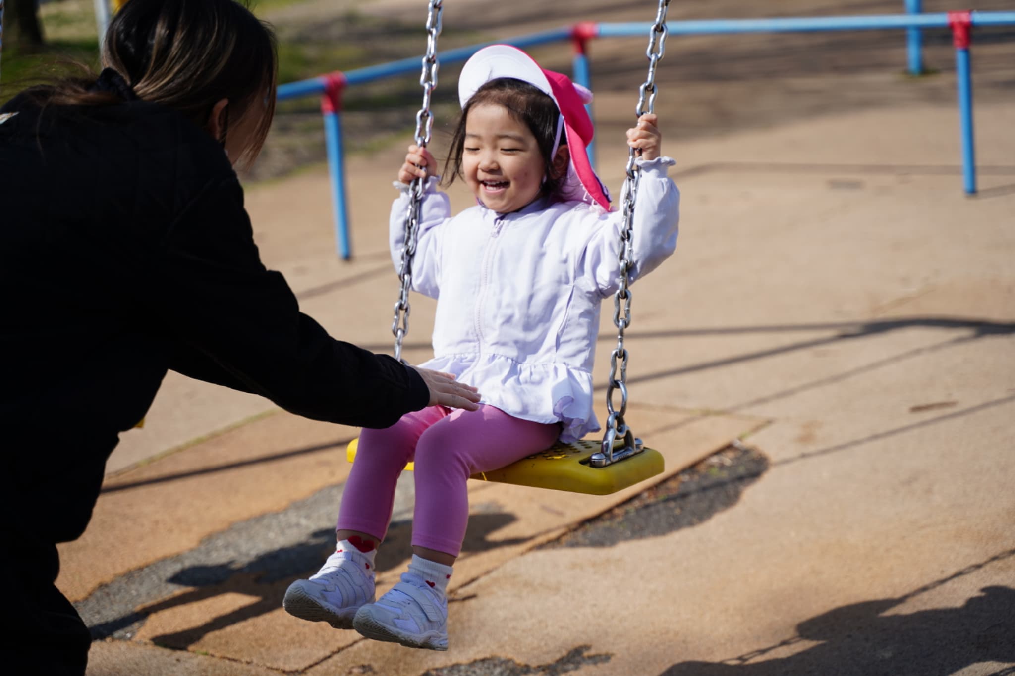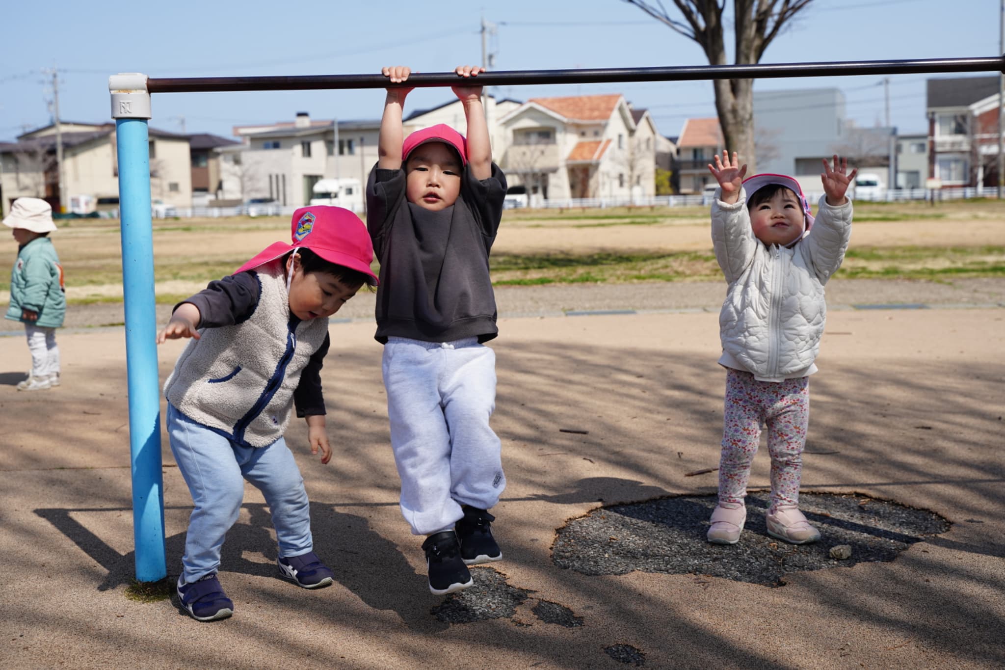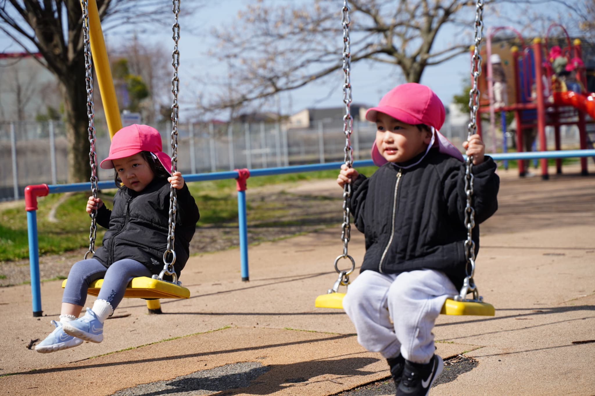 大人気の鉄棒やブランコ、滑り台でたっぷり遊べて、みんないい笑顔です☺️