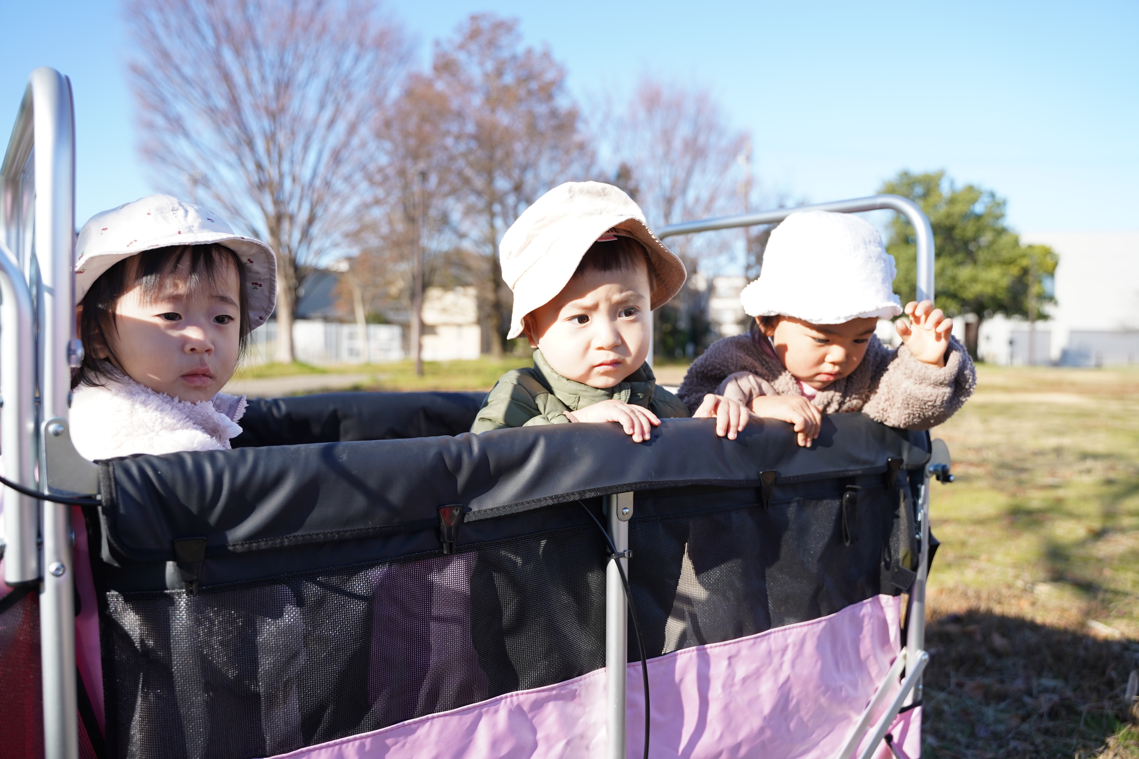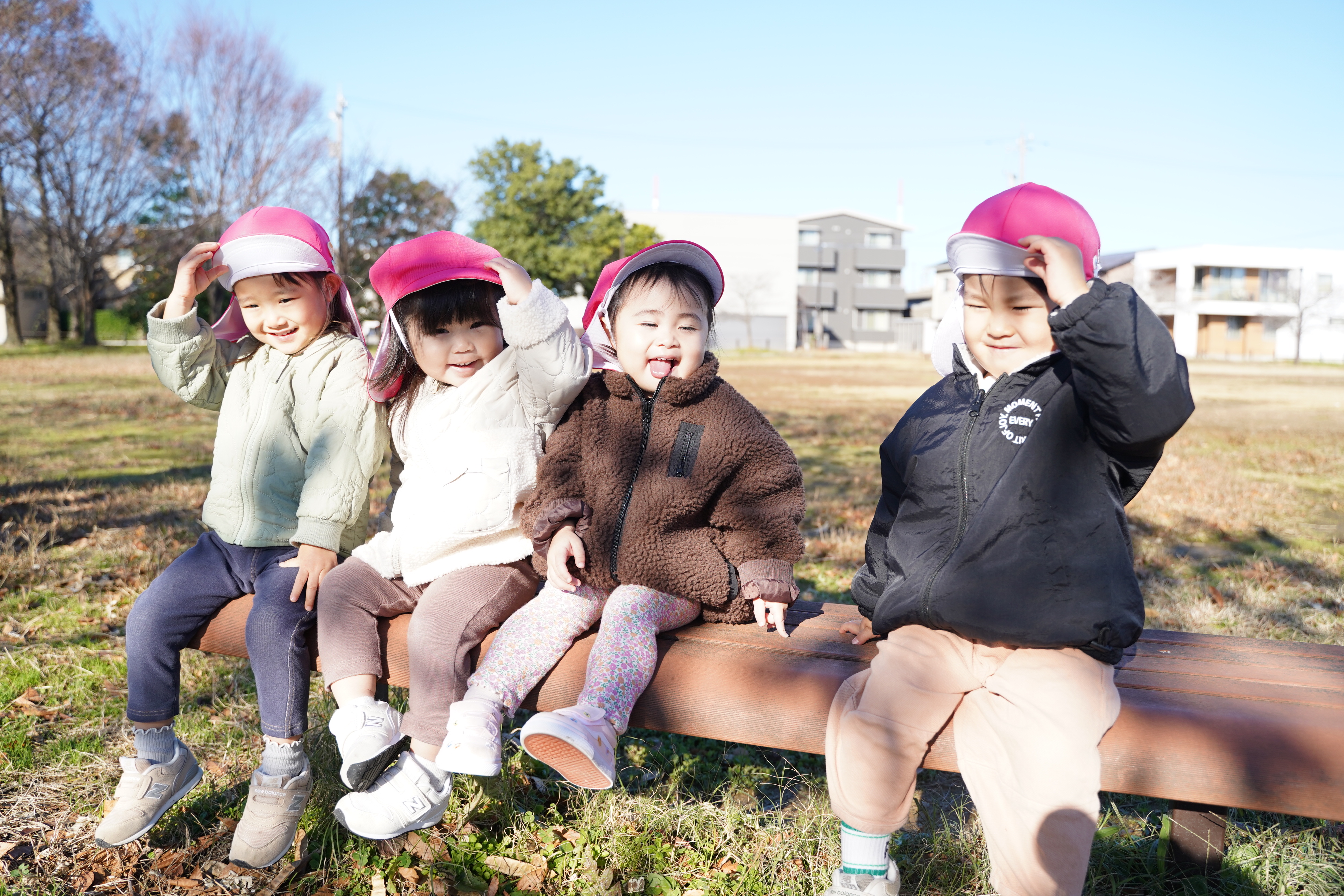 いちご組さん、もも組さんで少し遠くのあおぞら公園へ行ってきました🥰