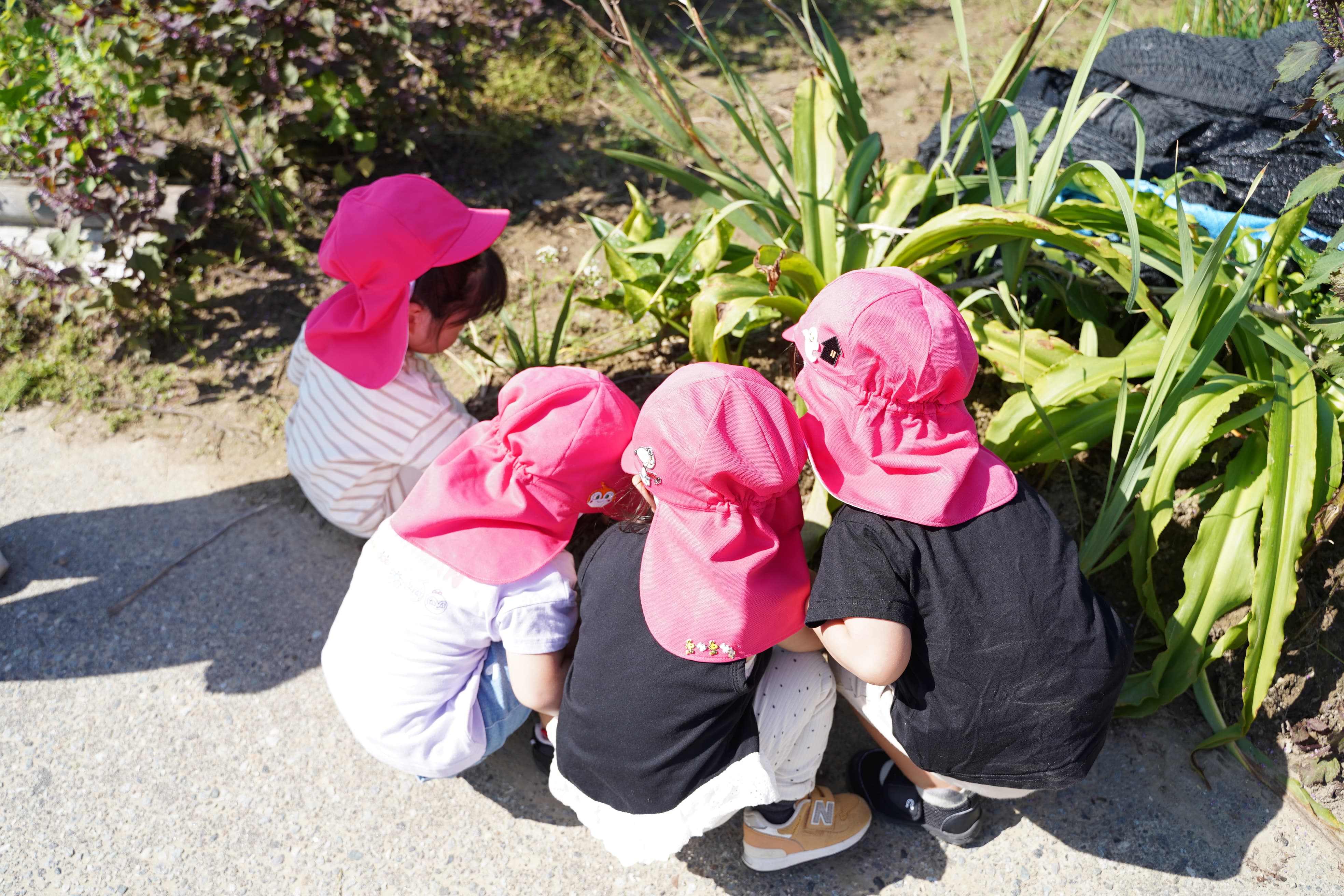 「アリさんいた!」という声からどんどん集まる子どもたち🐜地面にはアリさん、空にはトンボさんがたくさん見られた今日のお散歩でした😆