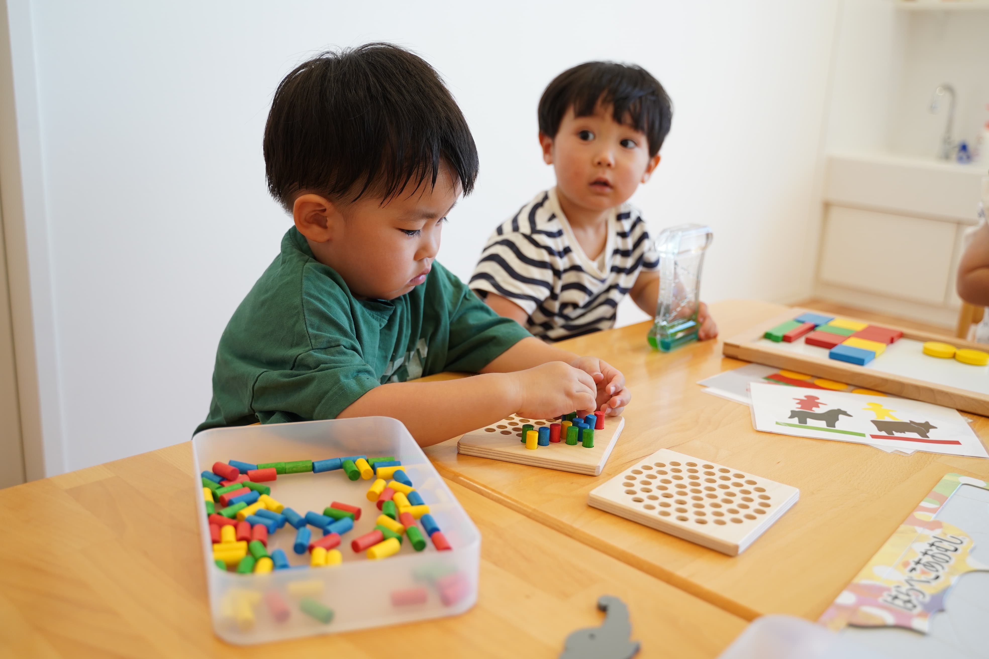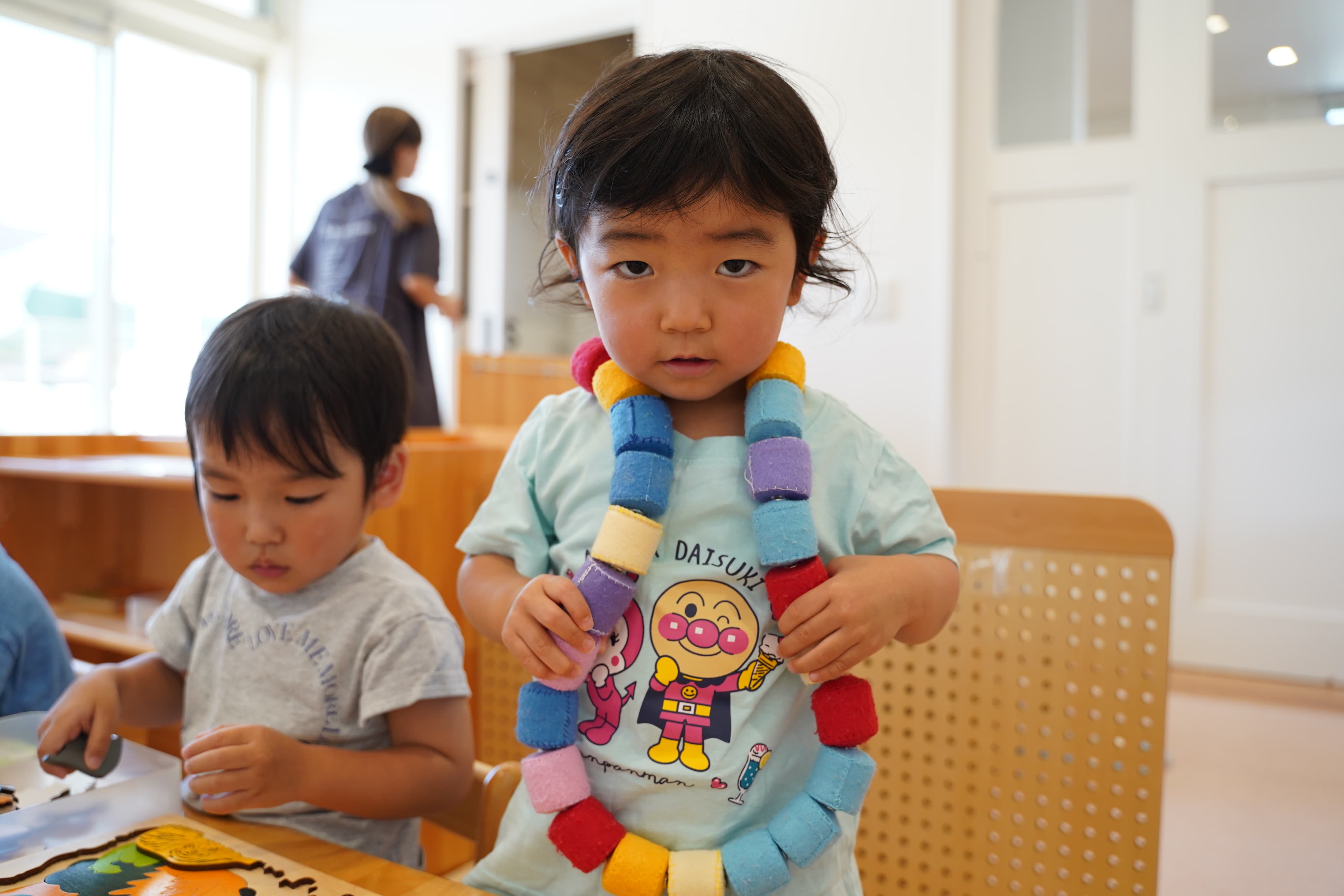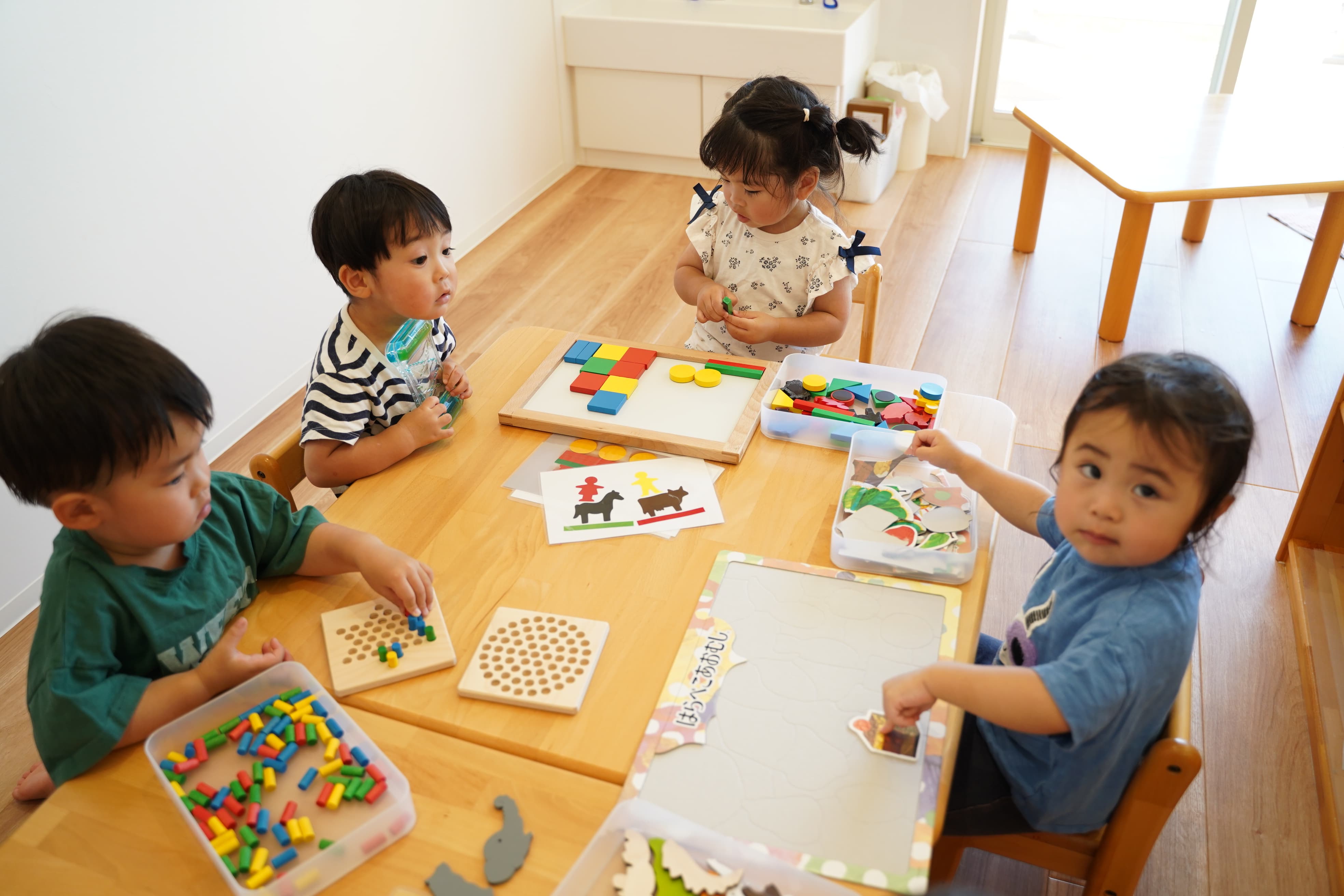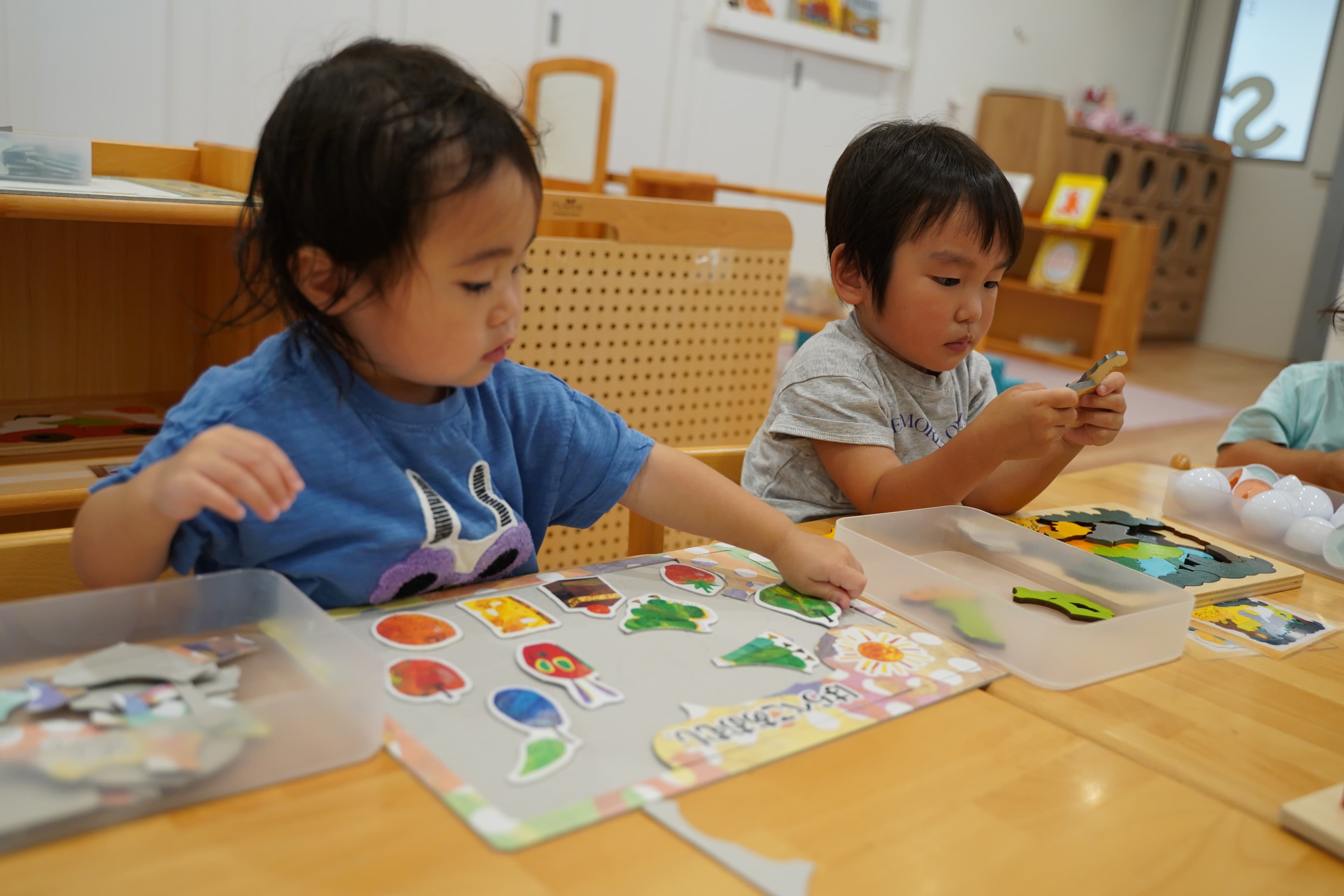 保育園に戻ってサッパリしたら、机に集まってそれぞれ好きな机上遊びに集中!ピースの多いパズルも何回も繰り返し遊ぶうちに覚えてきて、だんだんスムーズに完成できるようになってきていますよ🧩