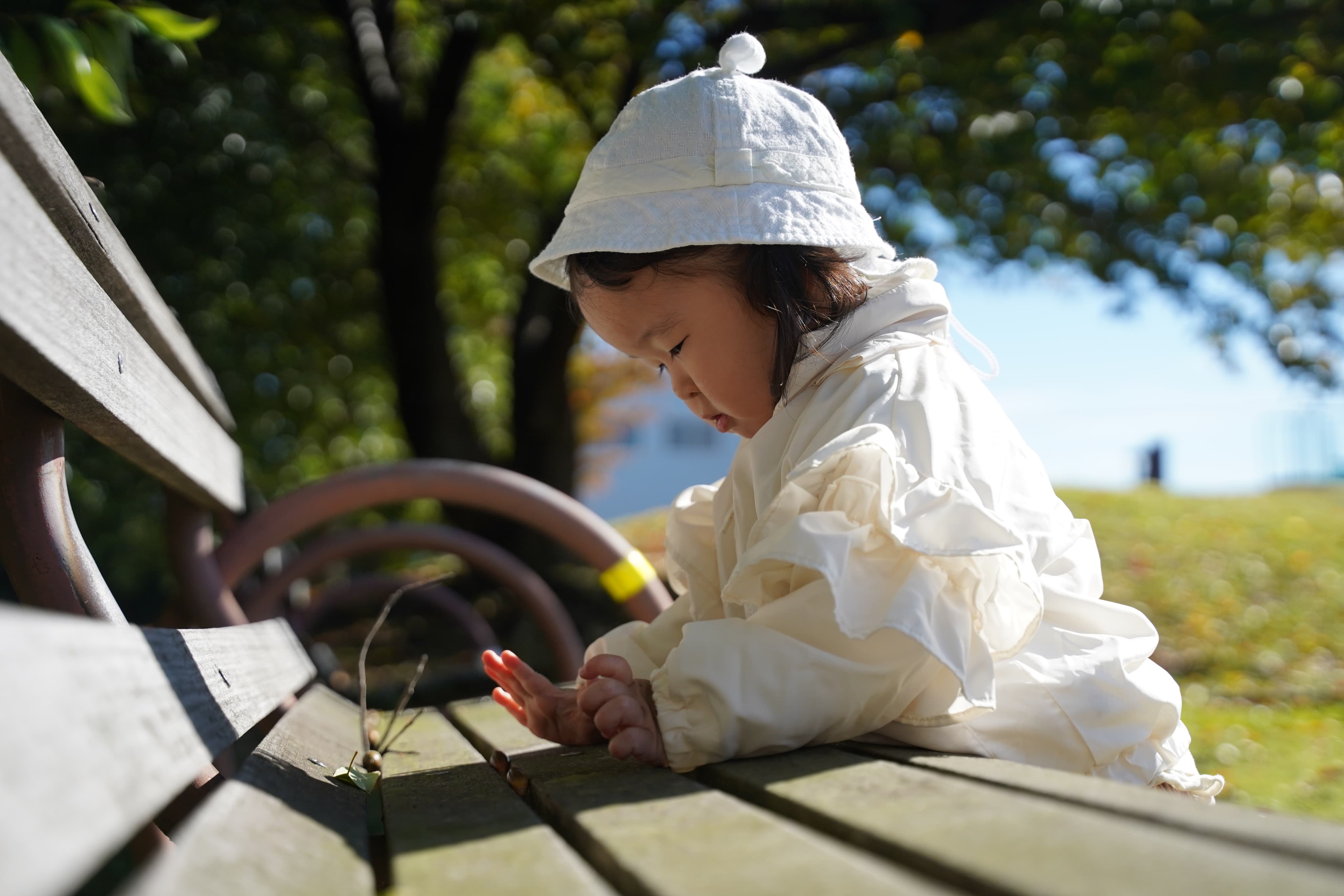 ベンチの溝にどんぐりを落としていくことが面白くて、拾っては何度も入れてましたよ♪