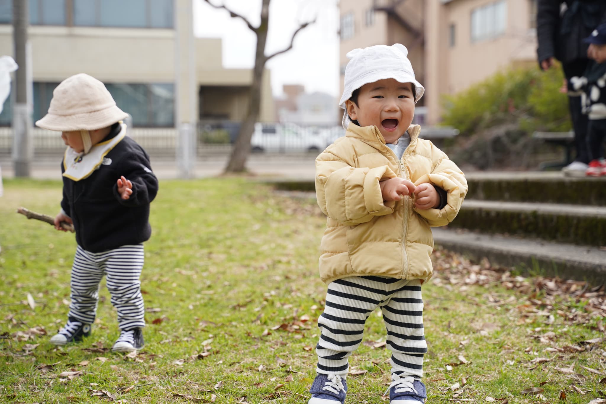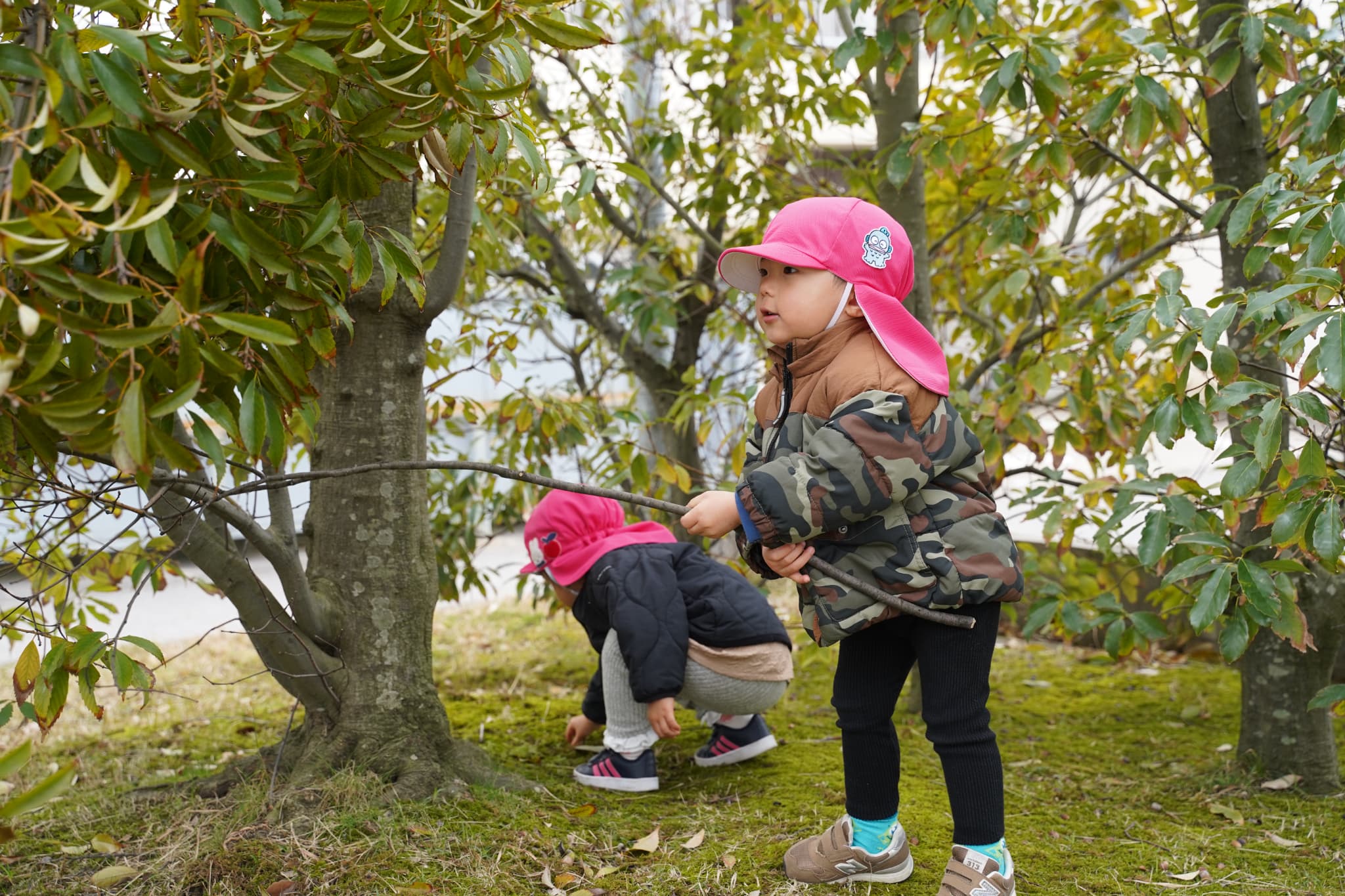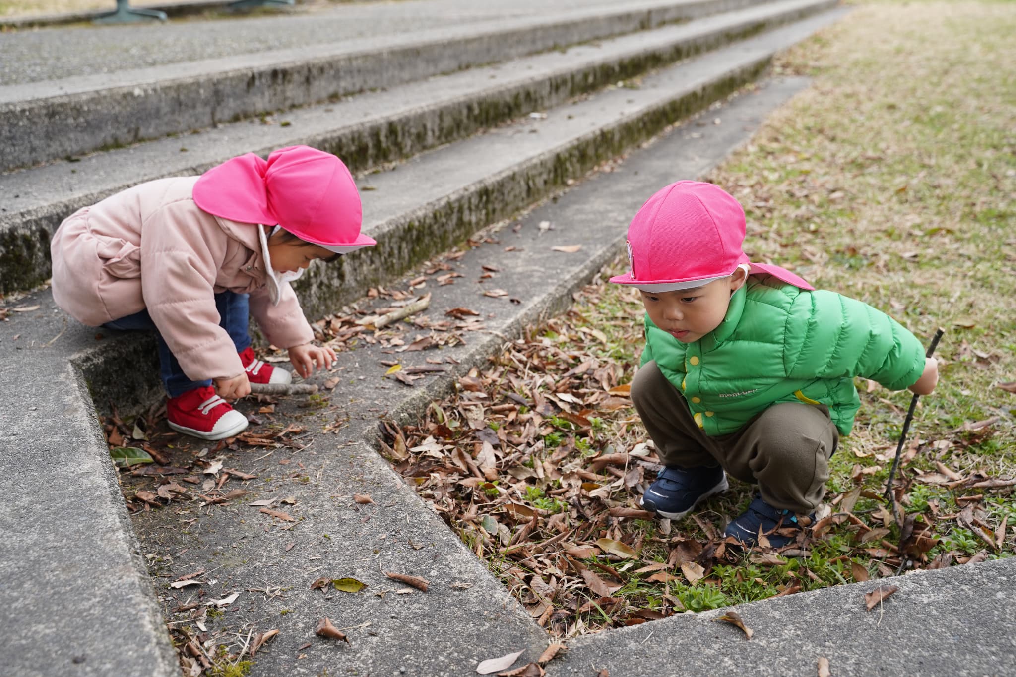 広場にはいろんな自然物が落ちていて、「何か落ちていないかな〜?」とみんなの目がキラキラと光っていました👀✨