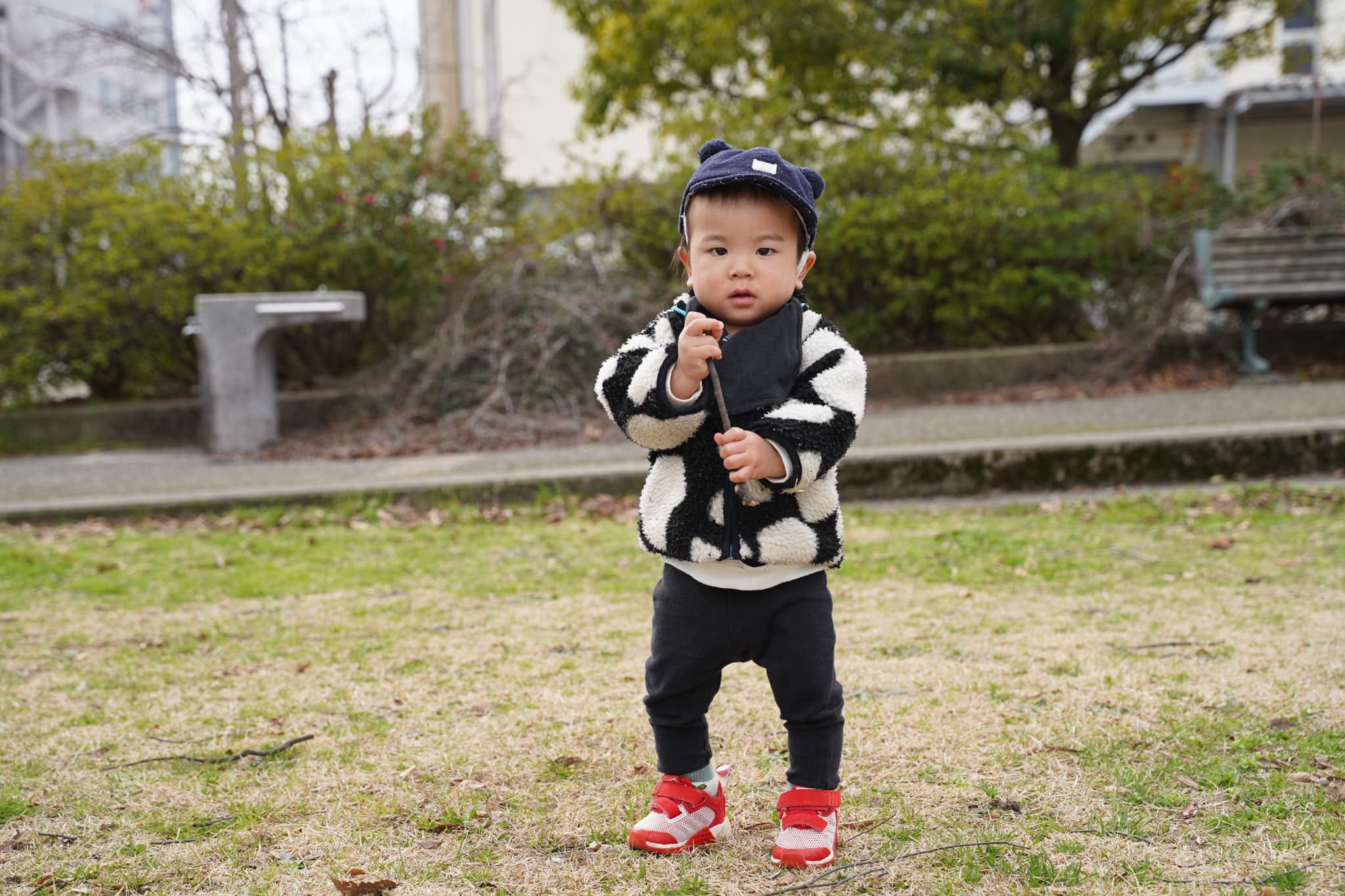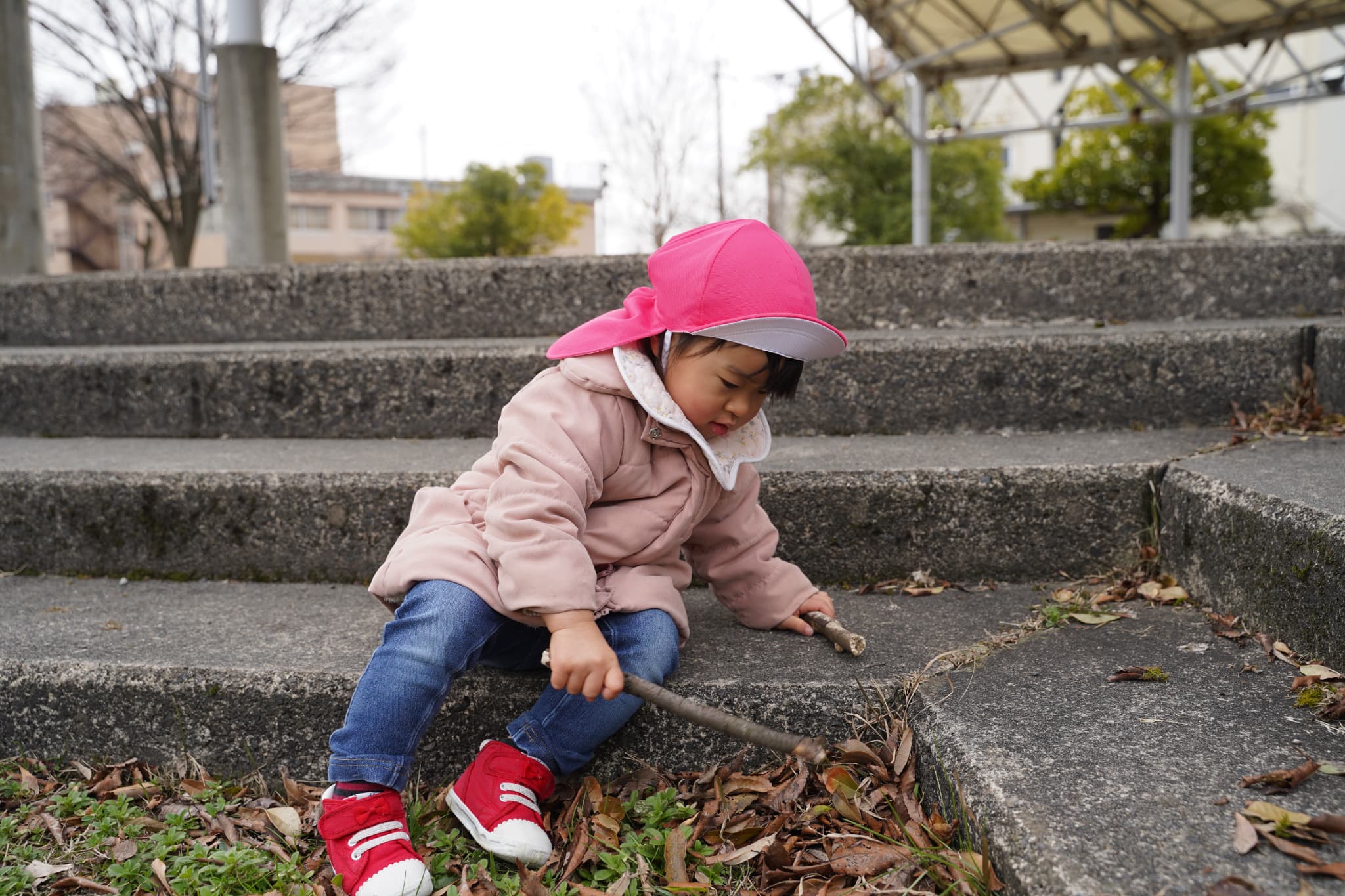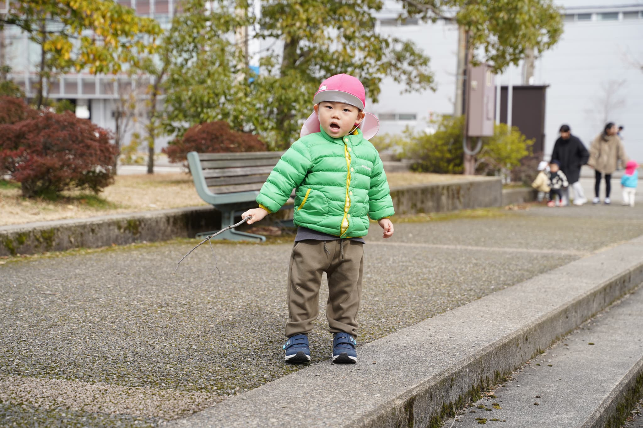 広場にはいろんな自然物が落ちていて、「何か落ちていないかな〜?」とみんなの目がキラキラと光っていました👀✨