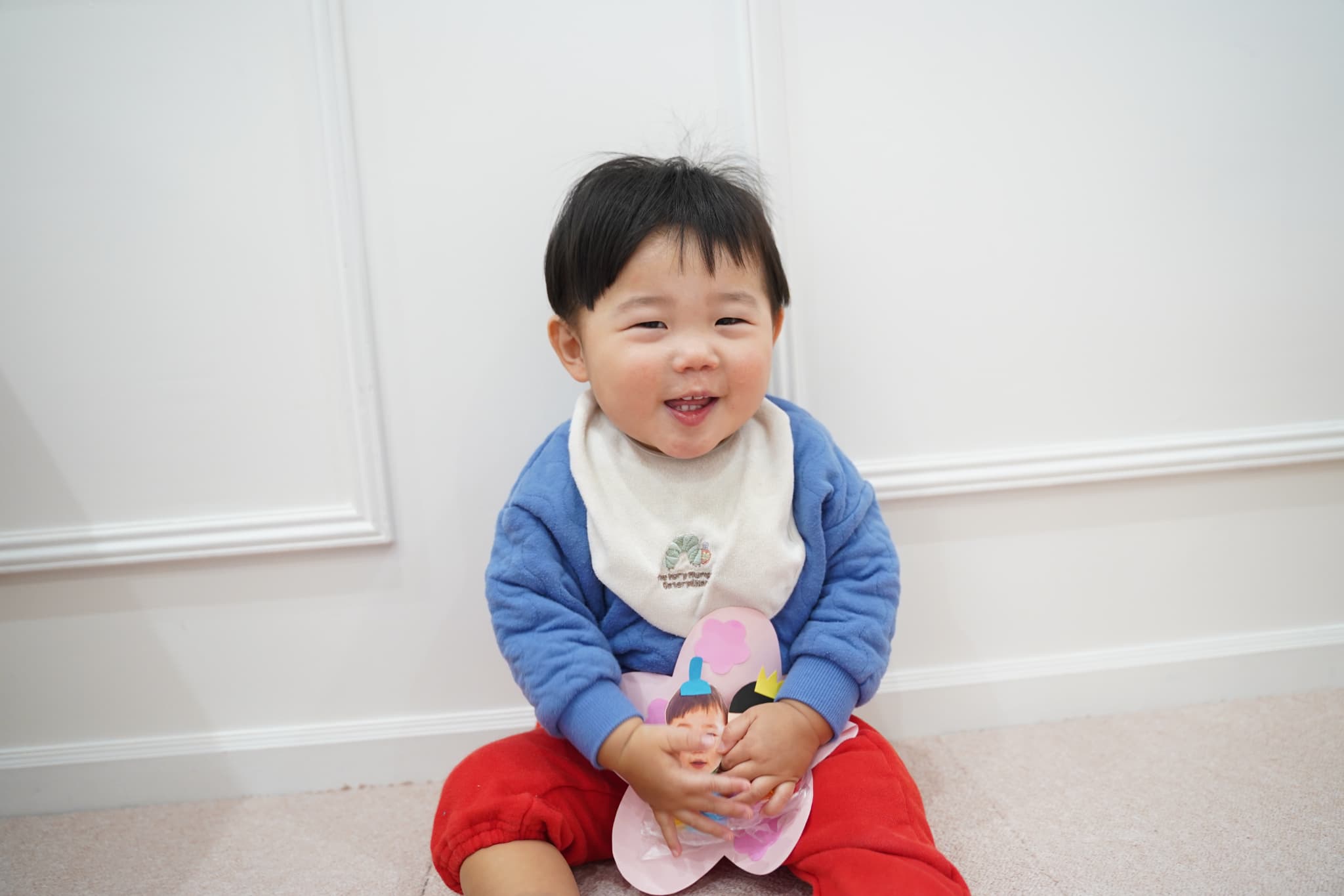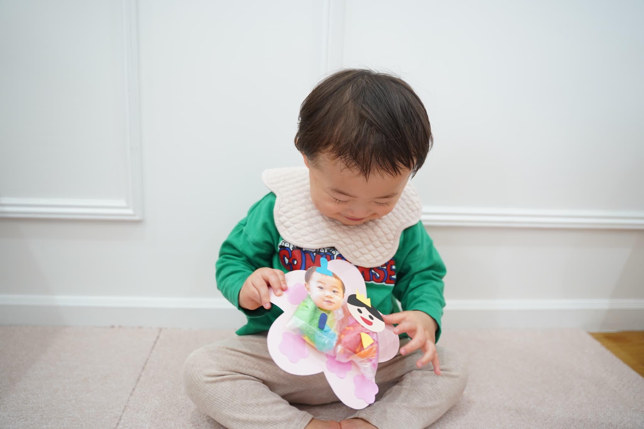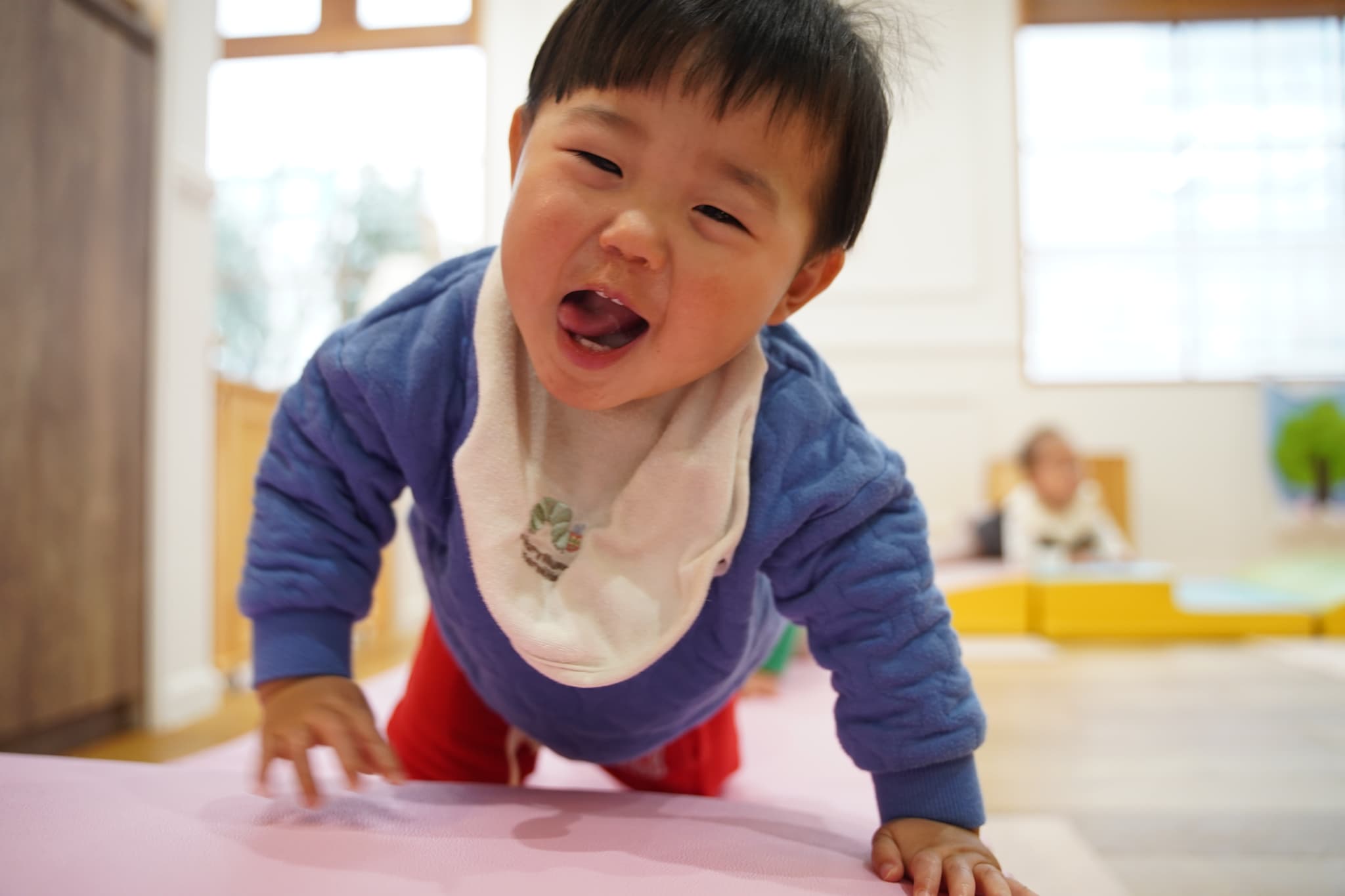 牛乳パックサークルとピンクのマットを組み合わせて坂道を作っていると、絶妙なバランスでそれが楽しかったようでハイハイや立って楽しんでいました💨
