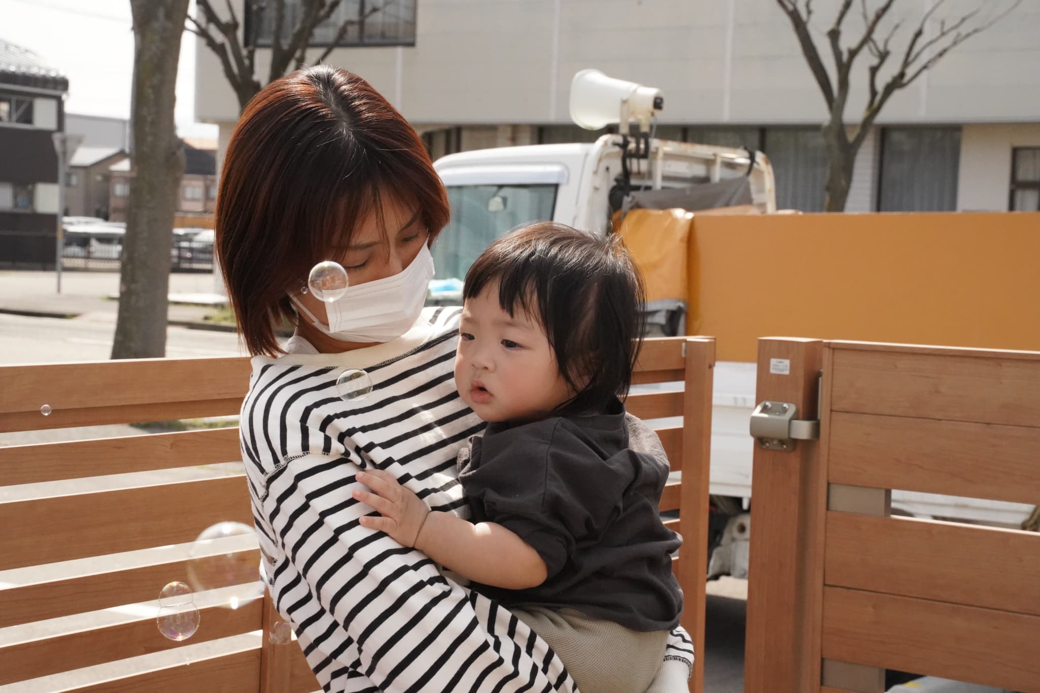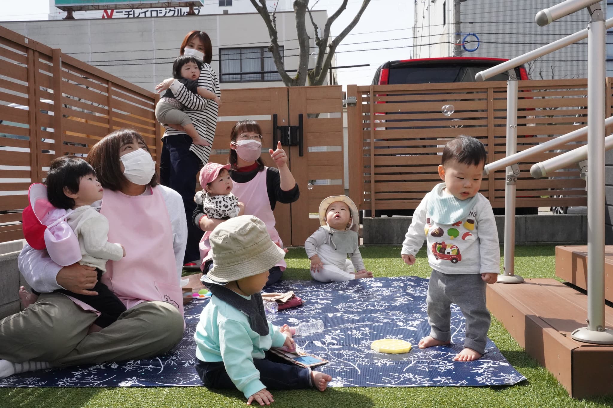 「しゃぼんだま、どこへとんでいくのかな〜?」