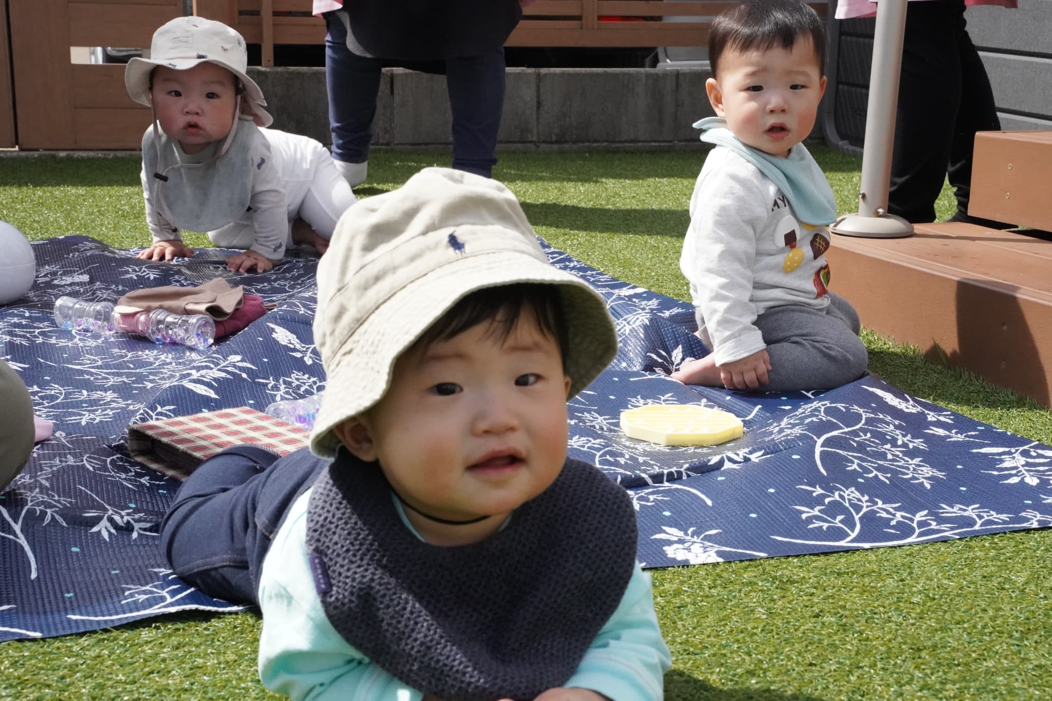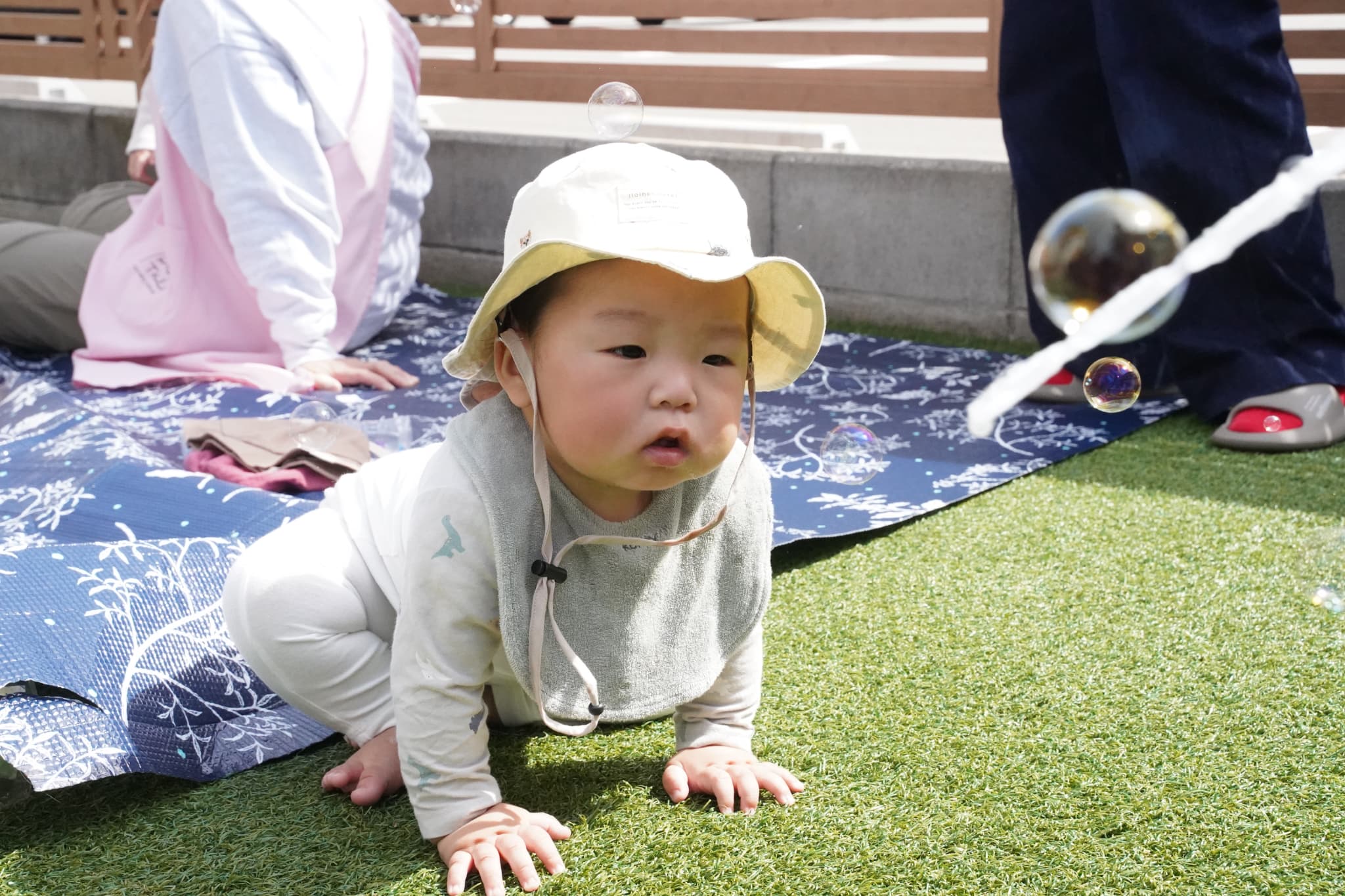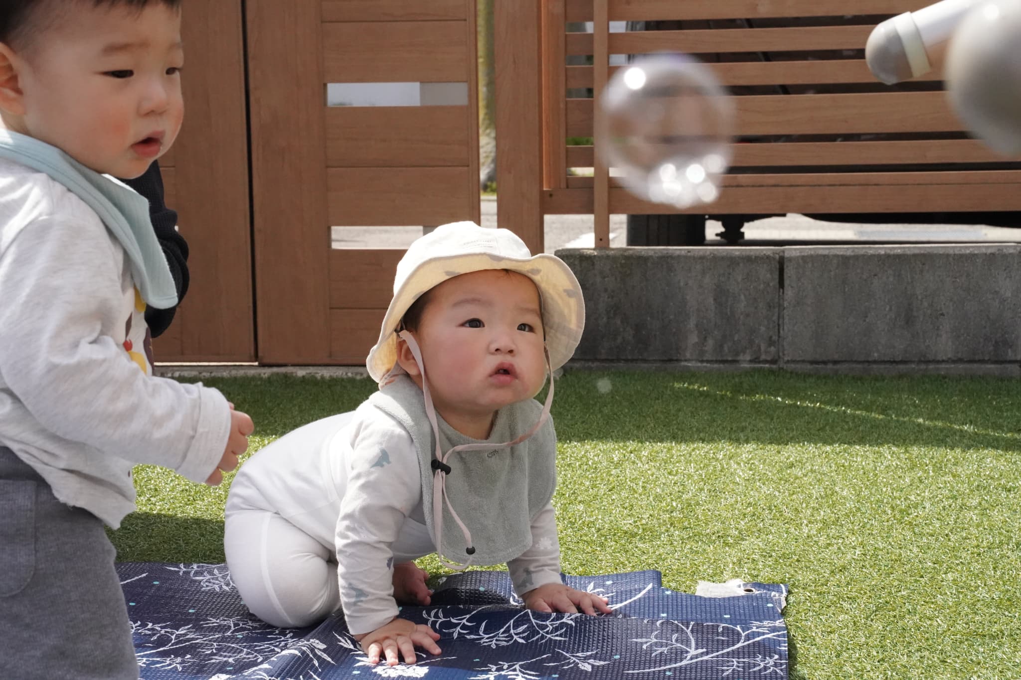 真剣な眼差しでシャボン玉をおいかけているね!😊