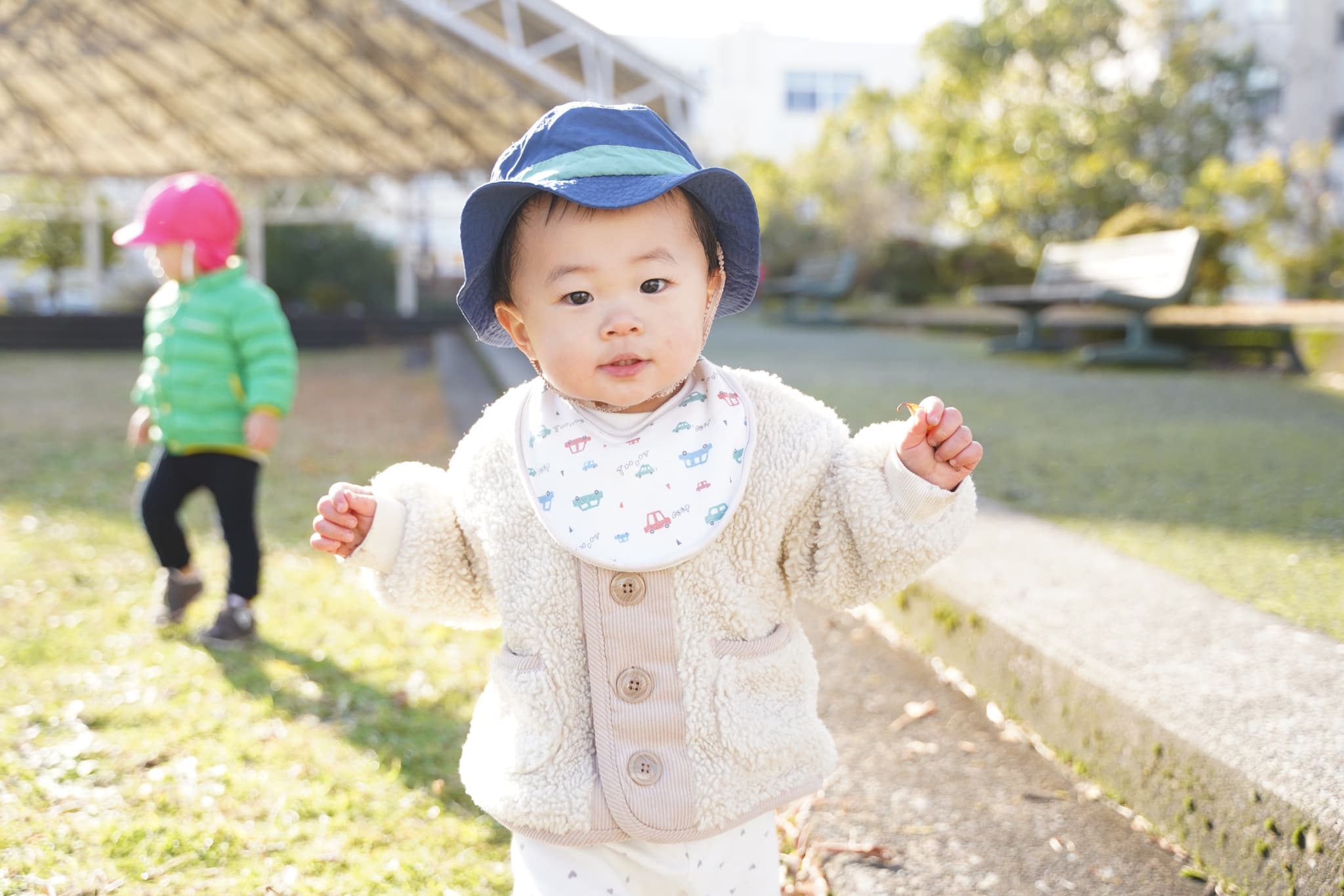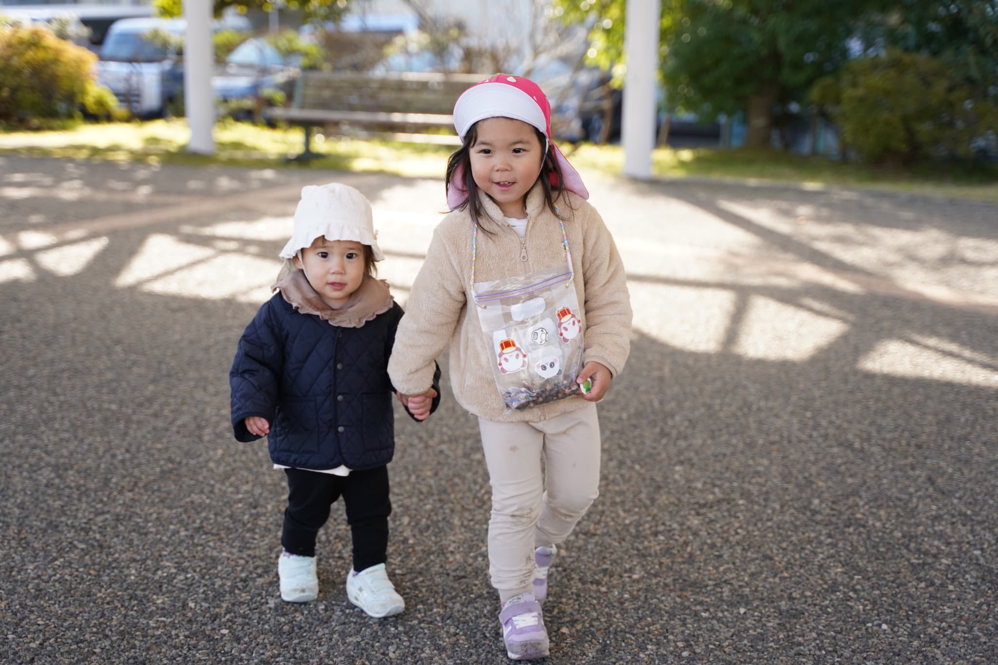 👇ぼくとわたしは、いちご組もも組さんと一緒にきまっし広場へ散歩に行きました👣