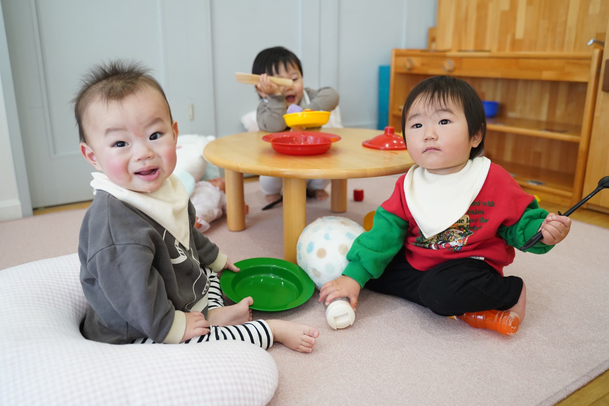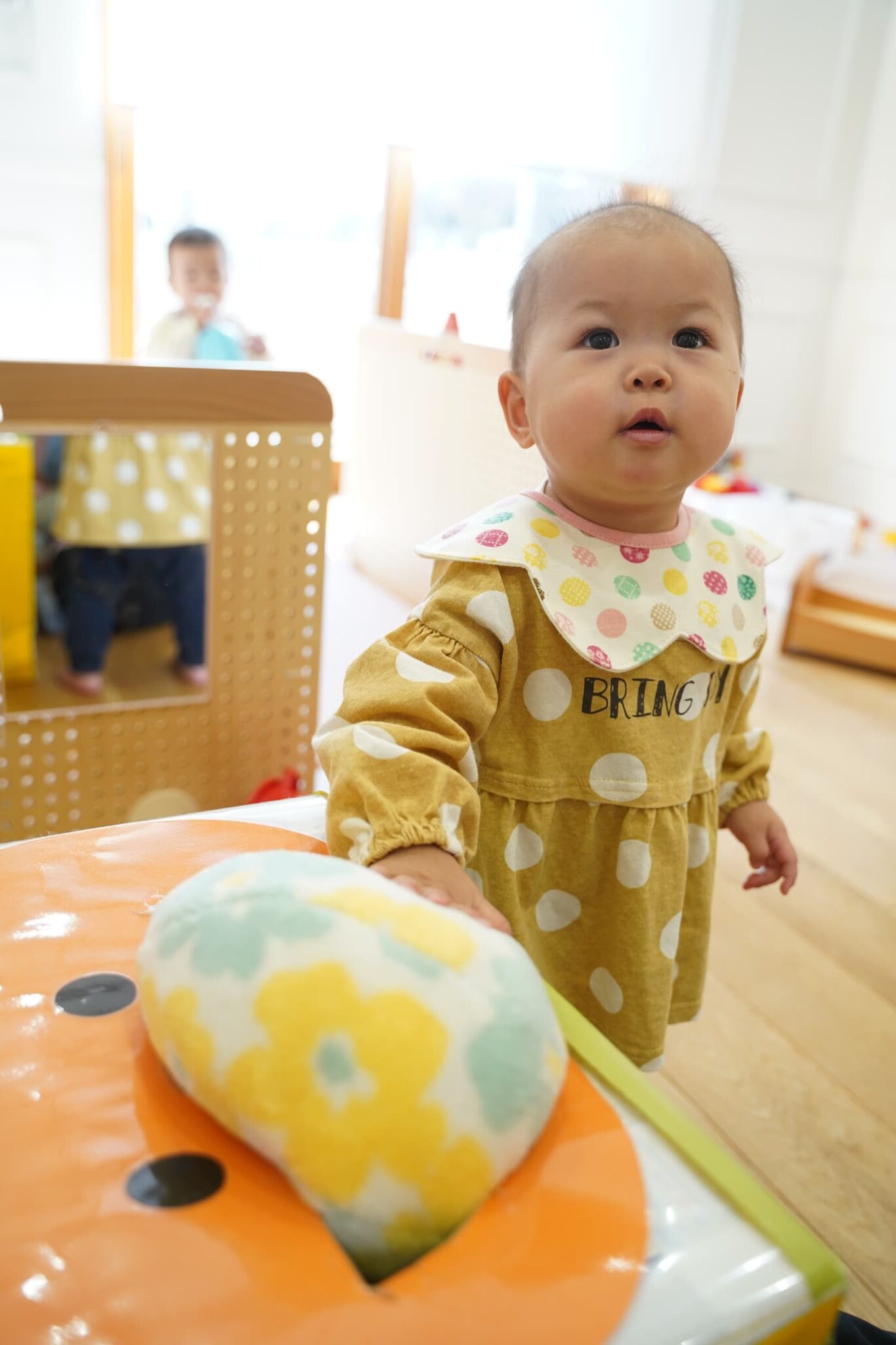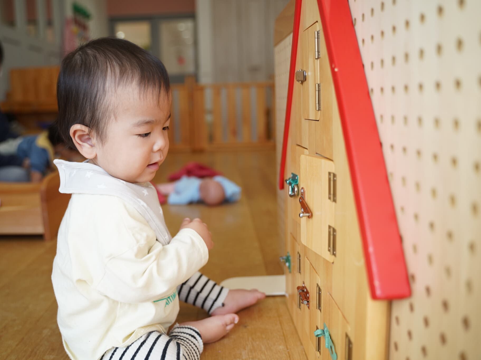 さくらんぼさんのお部屋にないおもちゃなどがたくさんあって興味津々におもちゃで遊ぶさくらんぼさんです🍒
