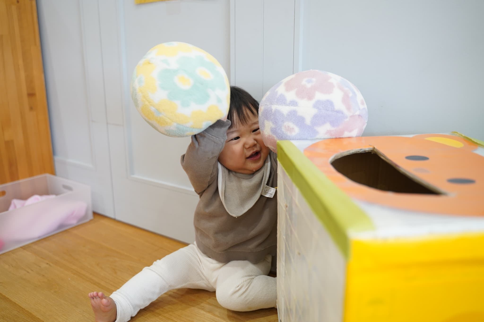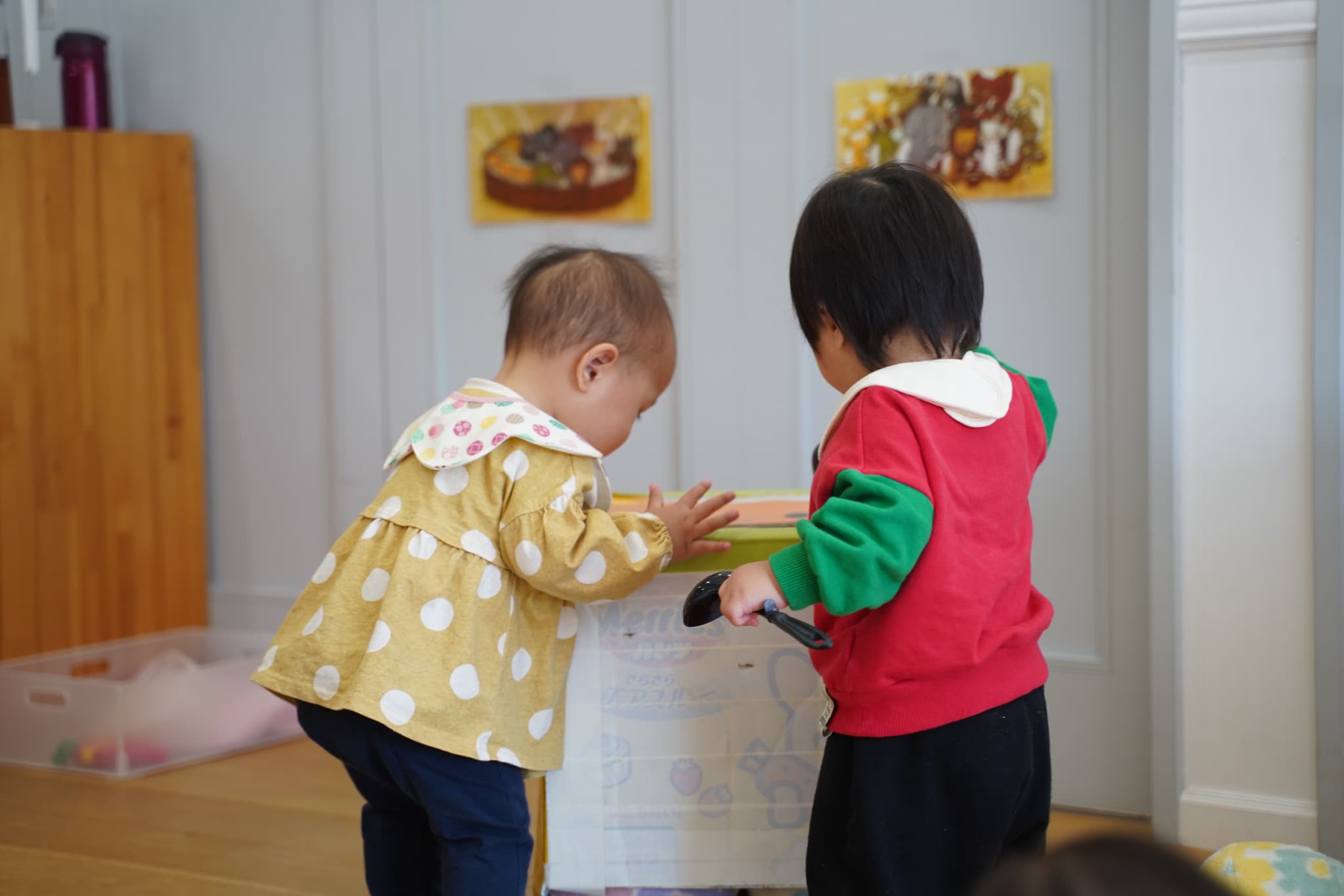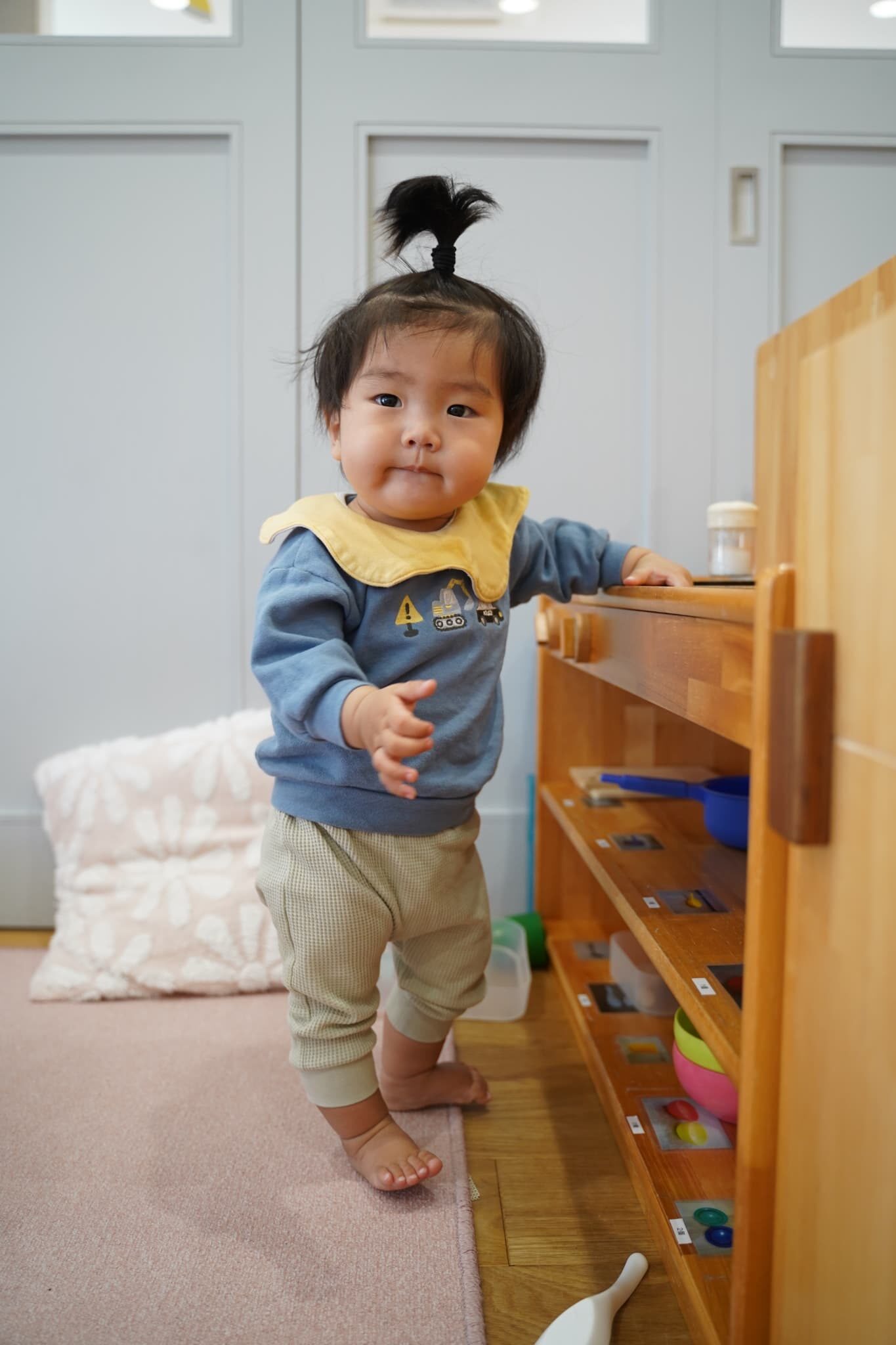 さくらんぼさんのお部屋にないおもちゃなどがたくさんあって興味津々におもちゃで遊ぶさくらんぼさんです🍒