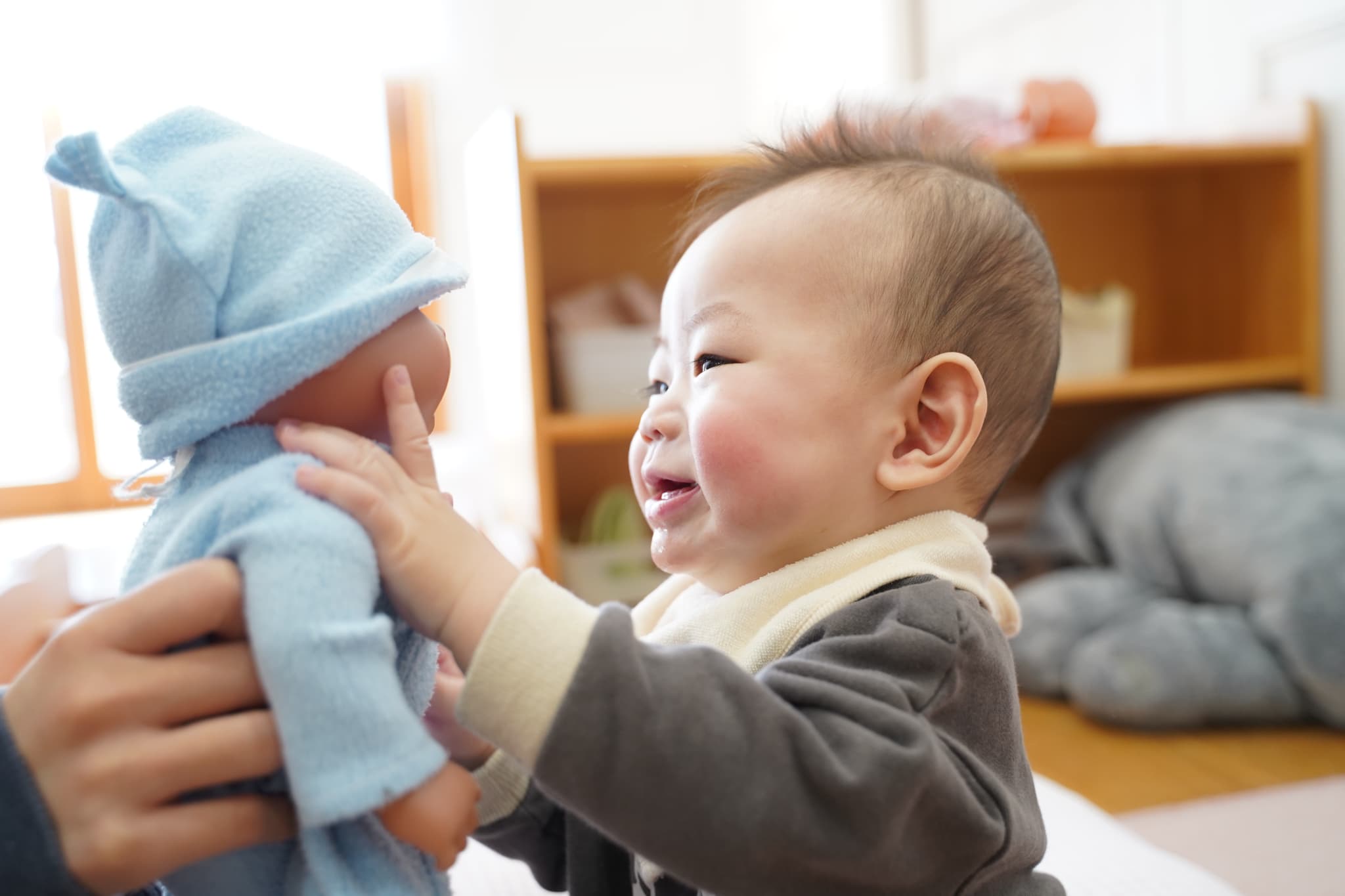 赤ちゃんの人形に興味津々だったぼく!!