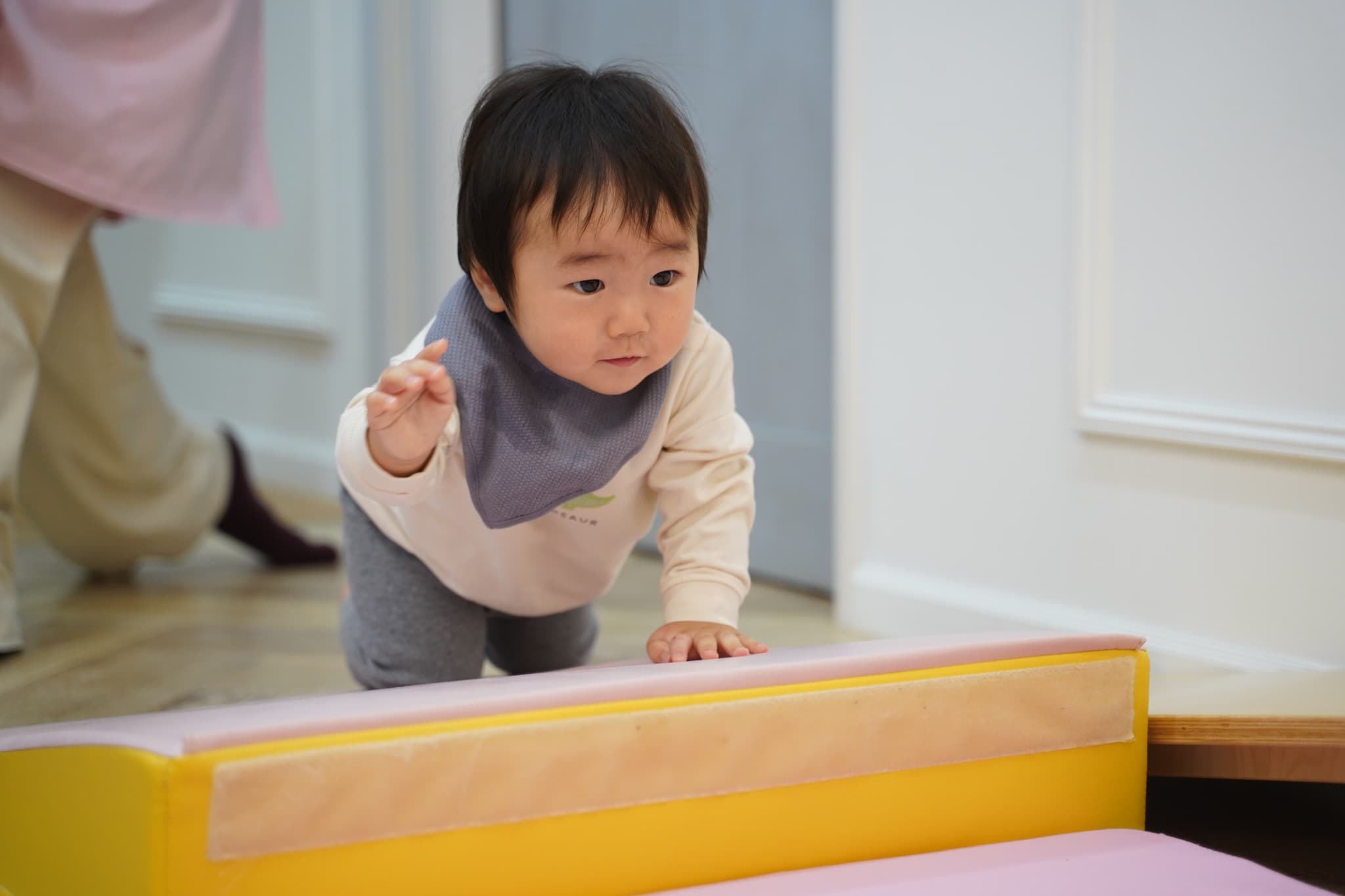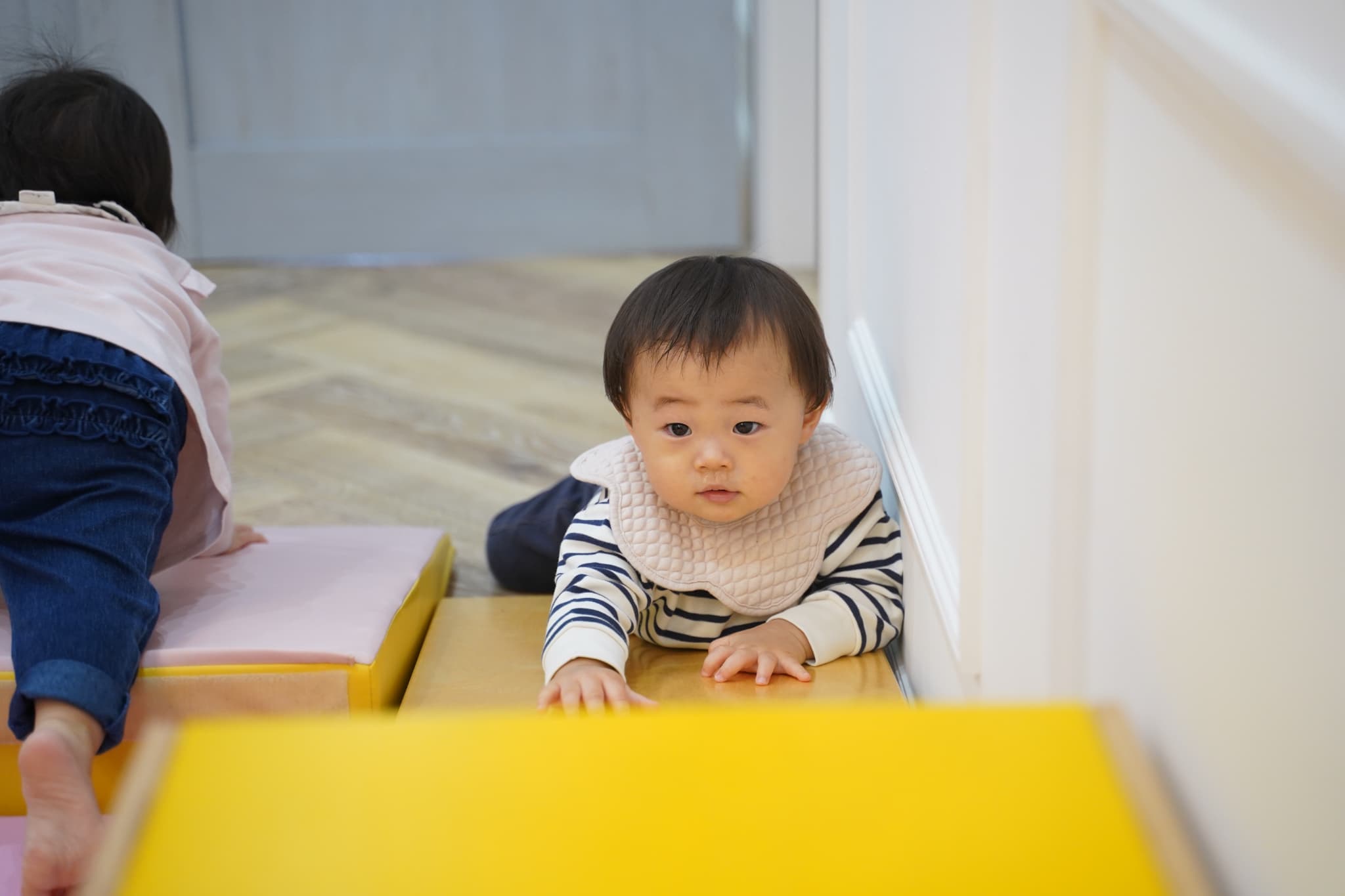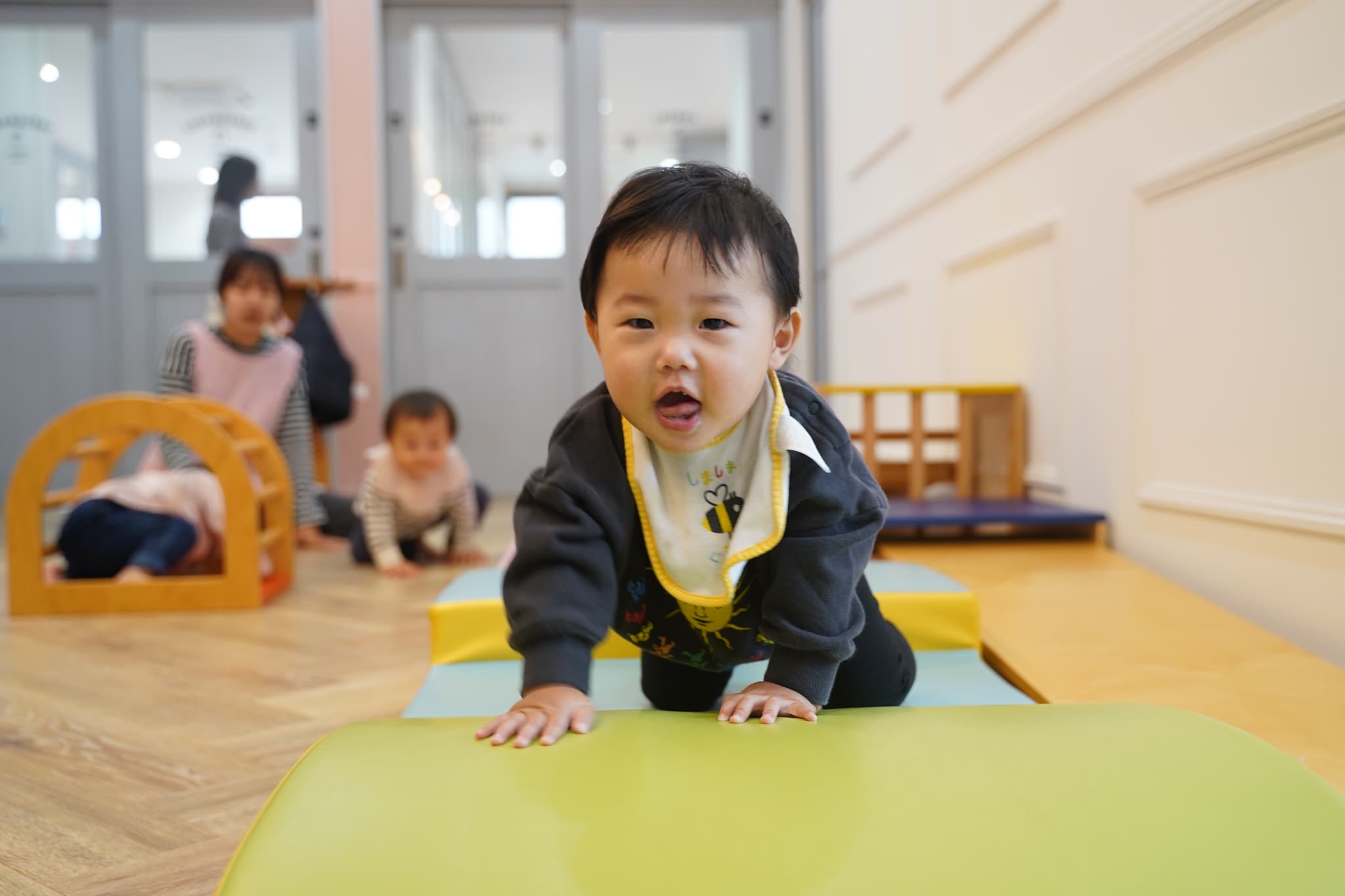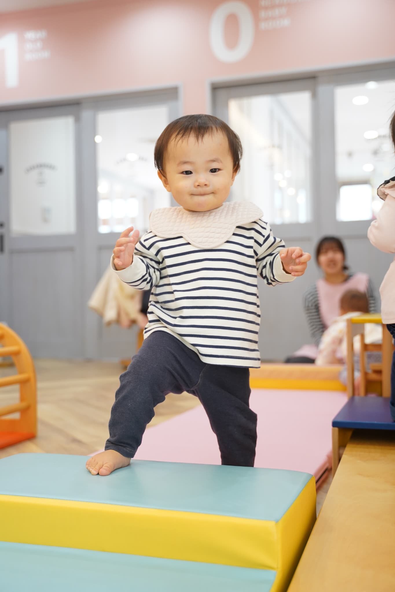 廊下には大好きなプレイキューブやハイハイマットを出しました!