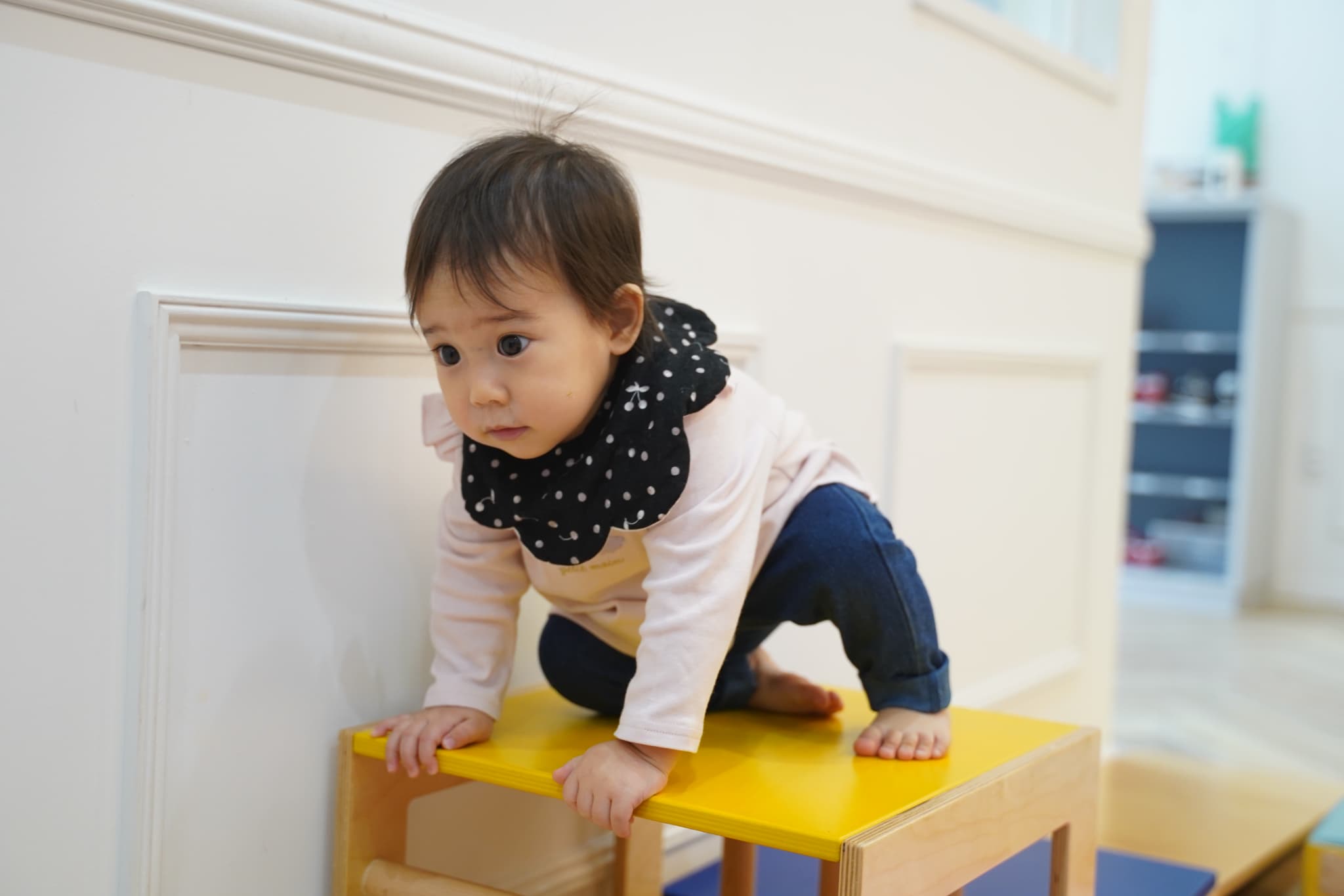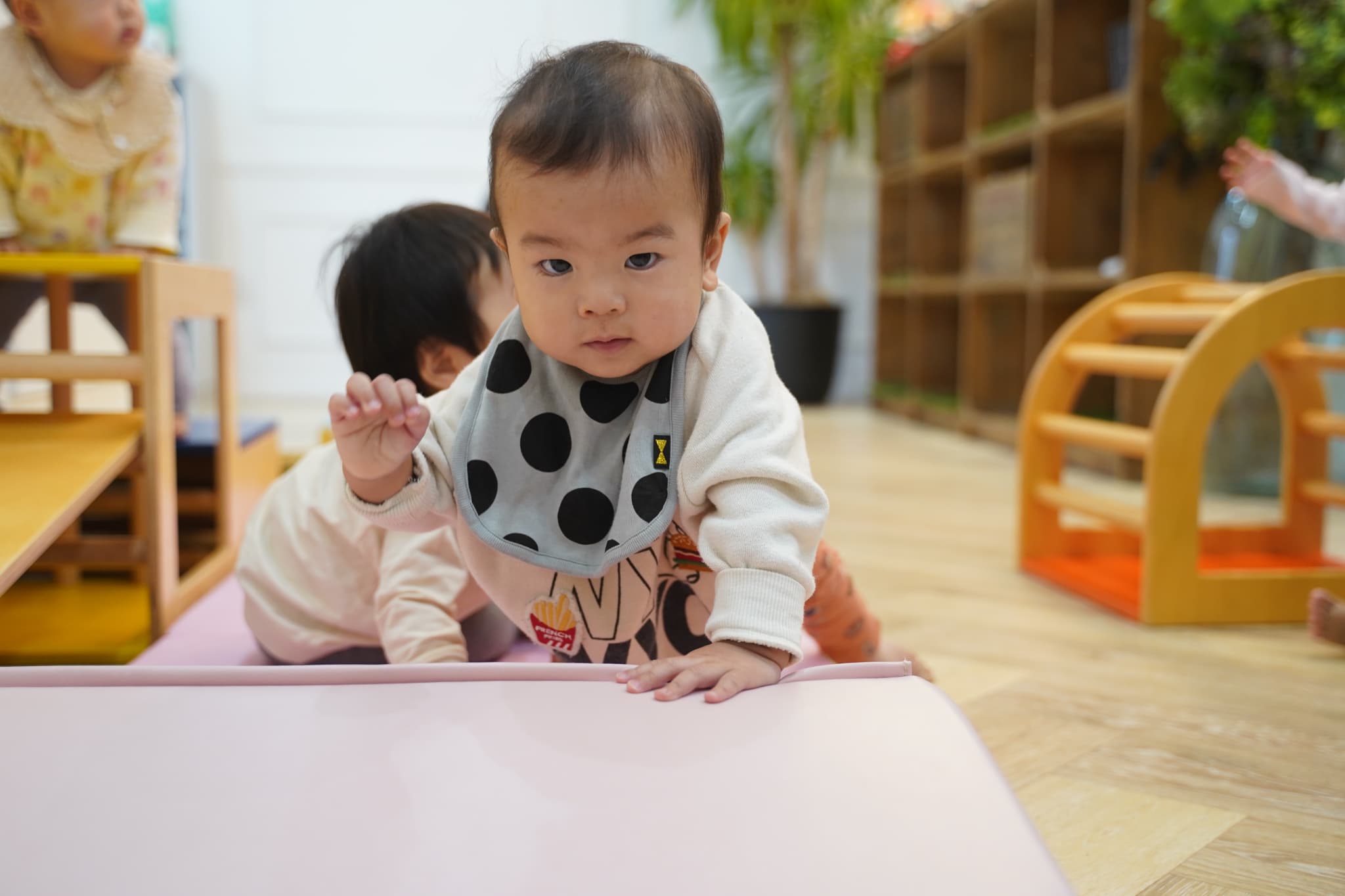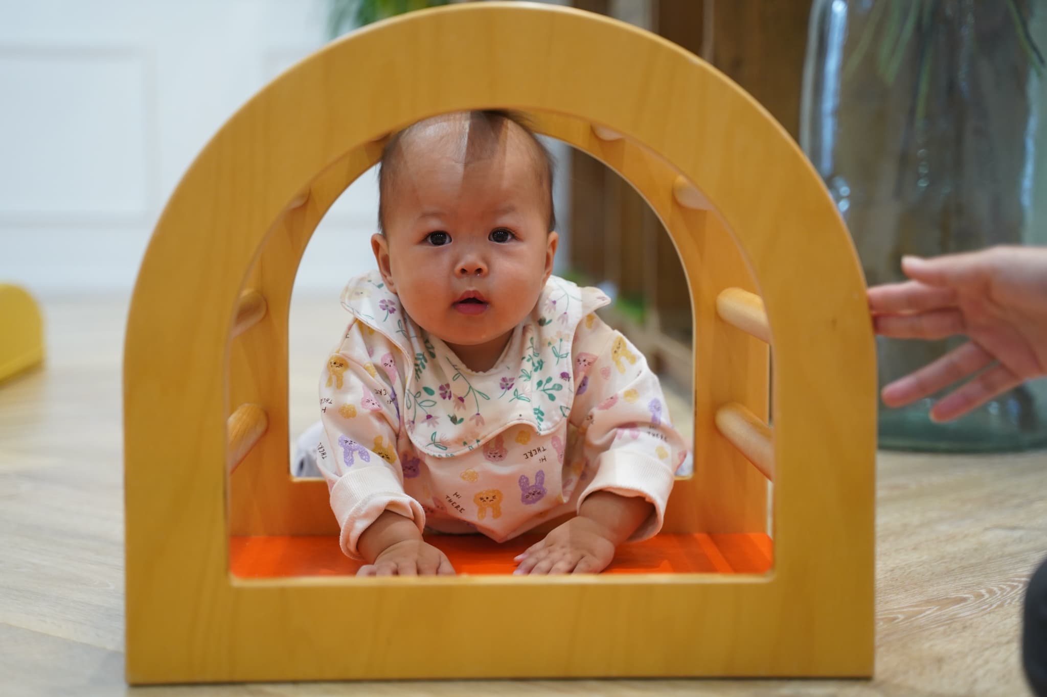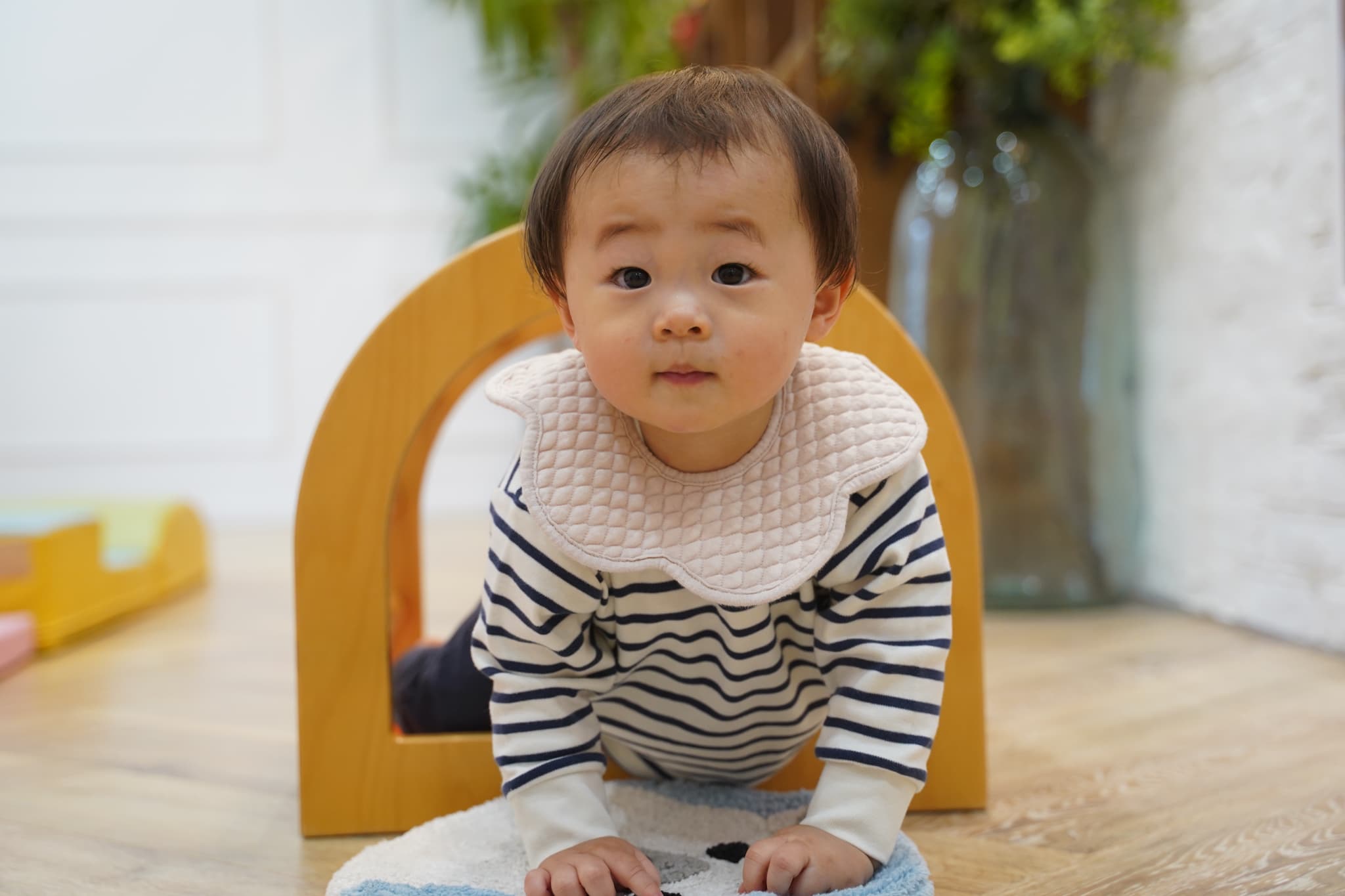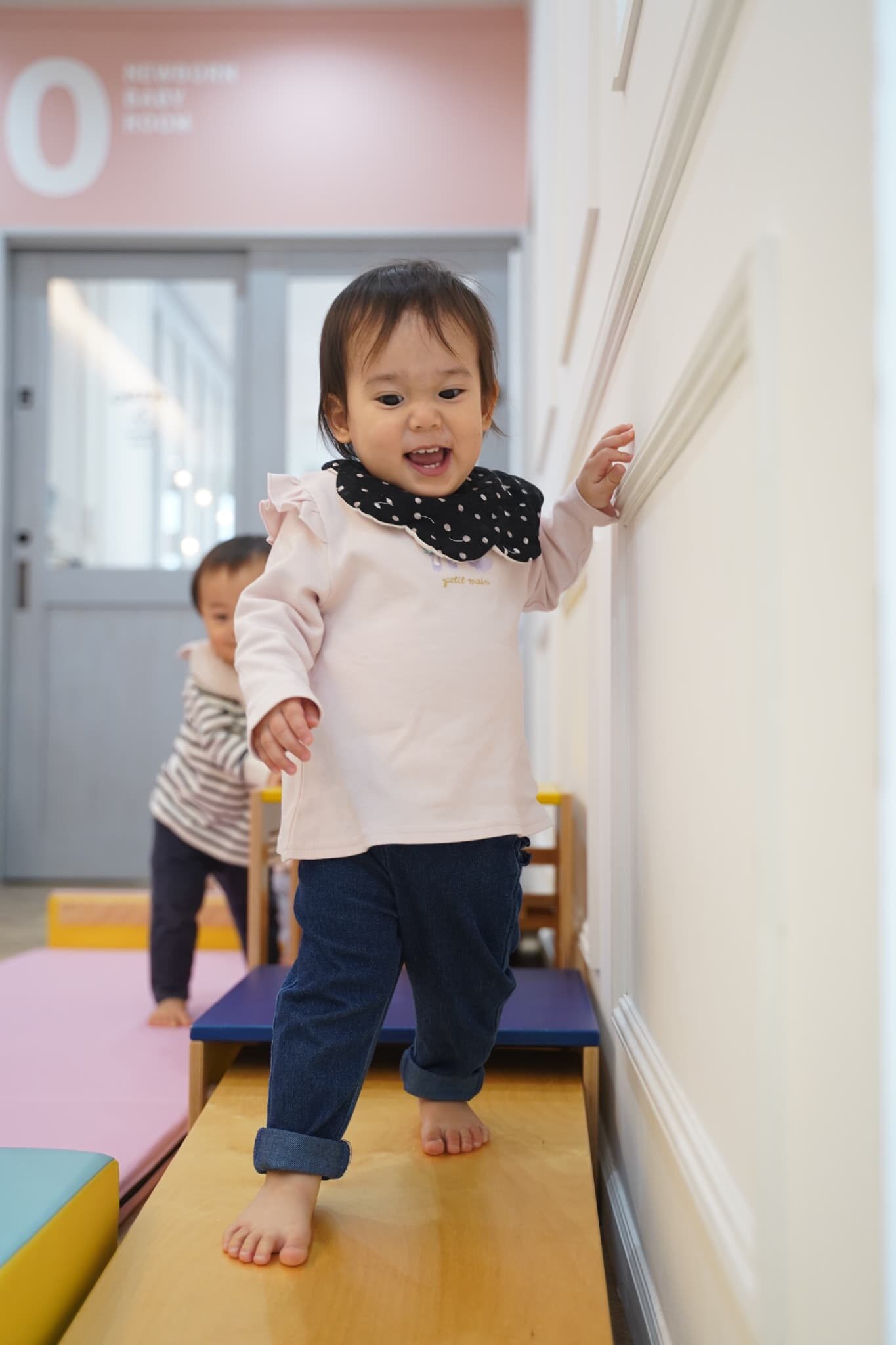 廊下には大好きなプレイキューブやハイハイマットを出しました!