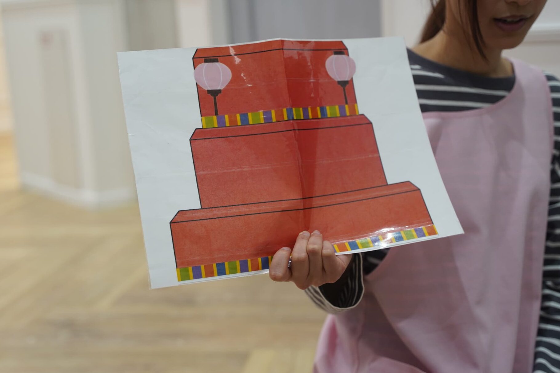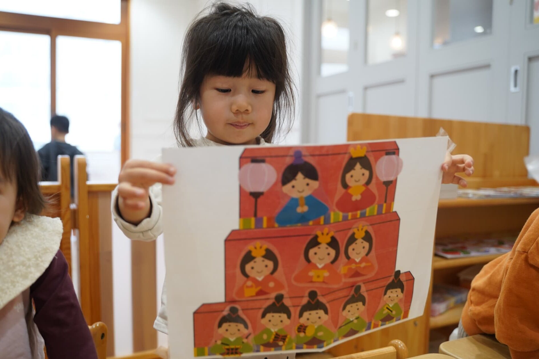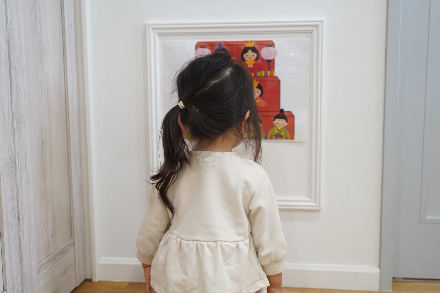見つけたおひなさま達をひな壇にペタリと貼っていきます