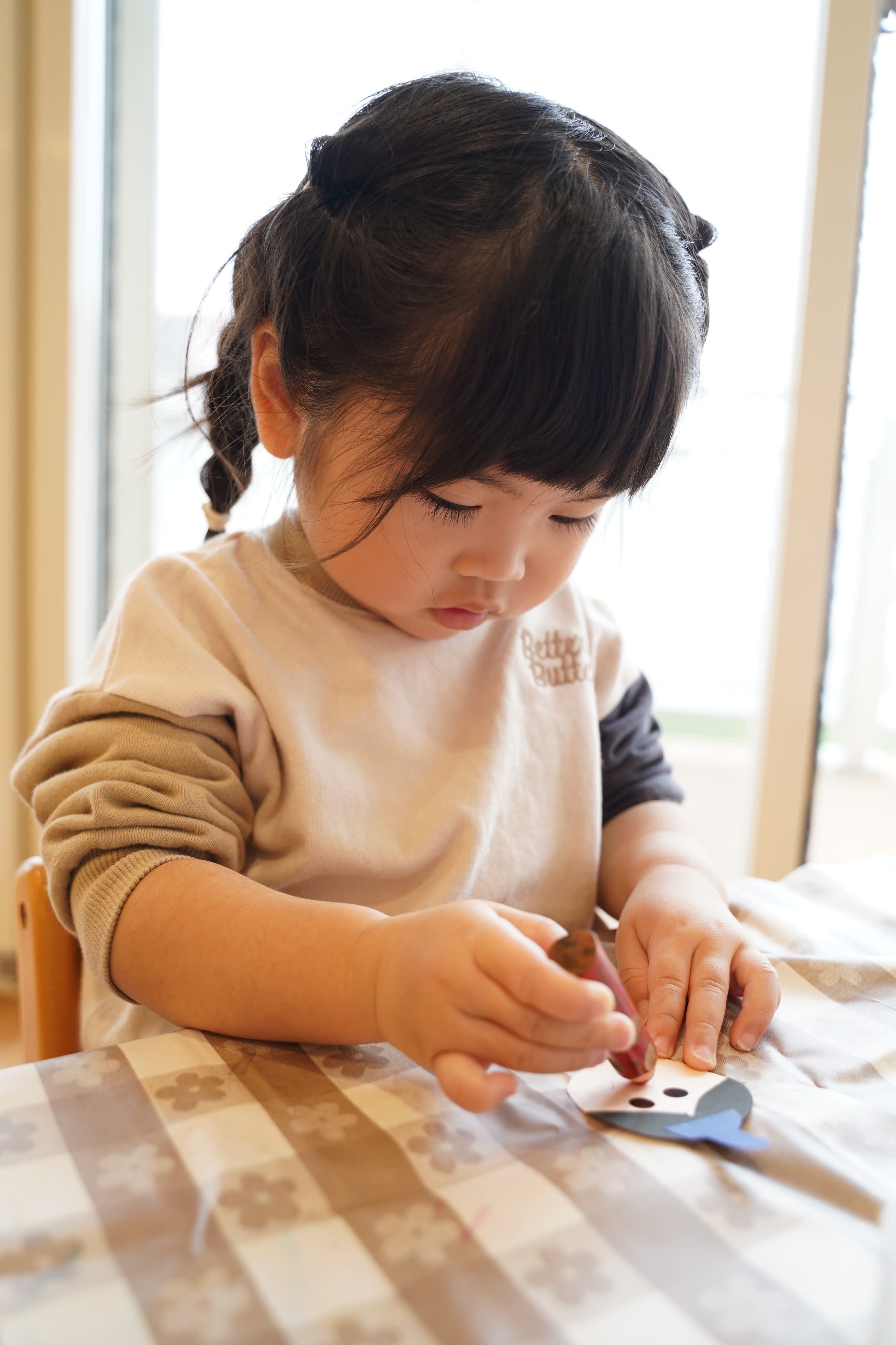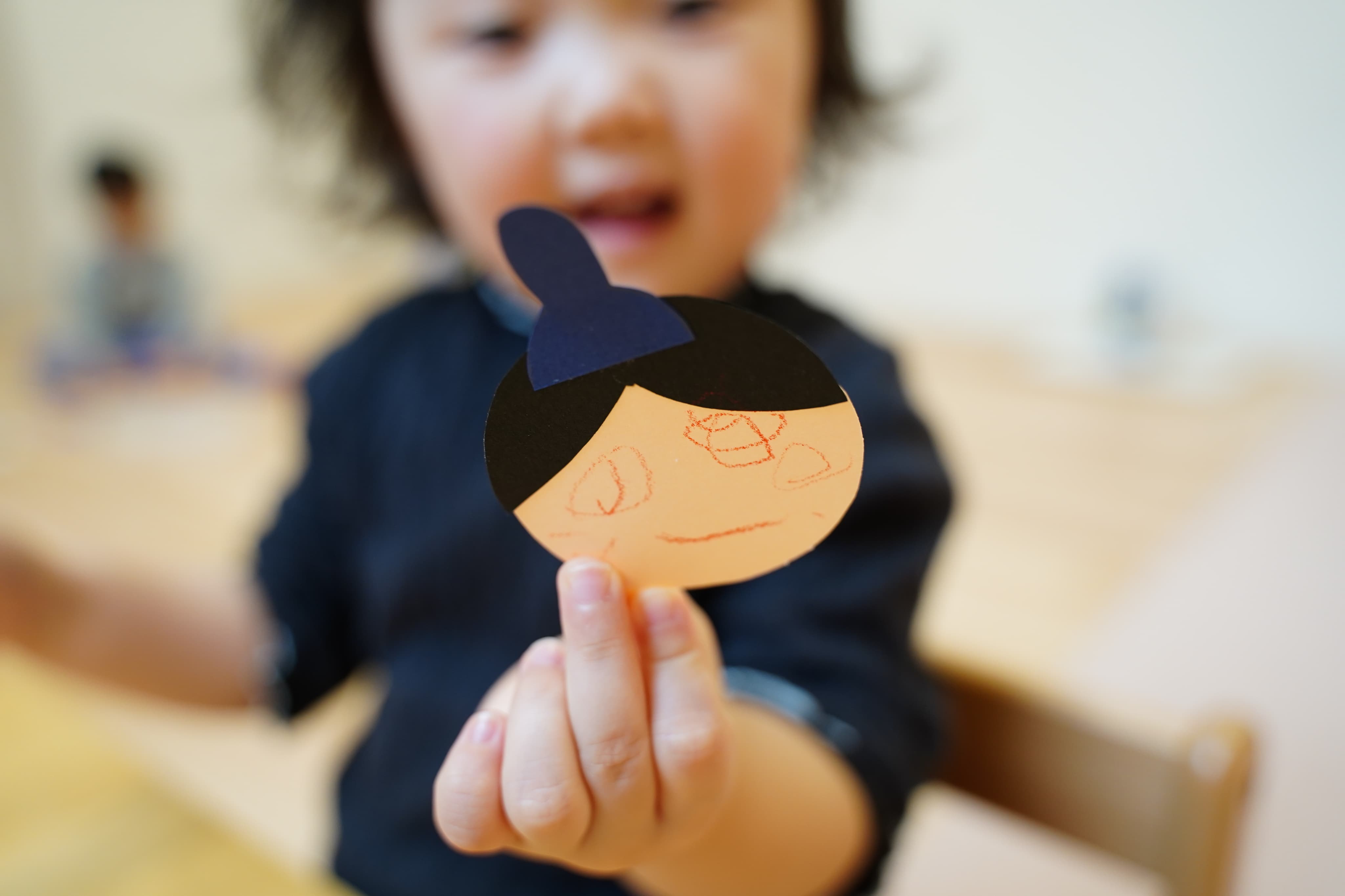 そして、今日はお部屋でおひなさまの製作もしました😄絵本を見たのもあってか「作りた〜い!」とウキウキしながら製作に取り組むこどもたちです🙌