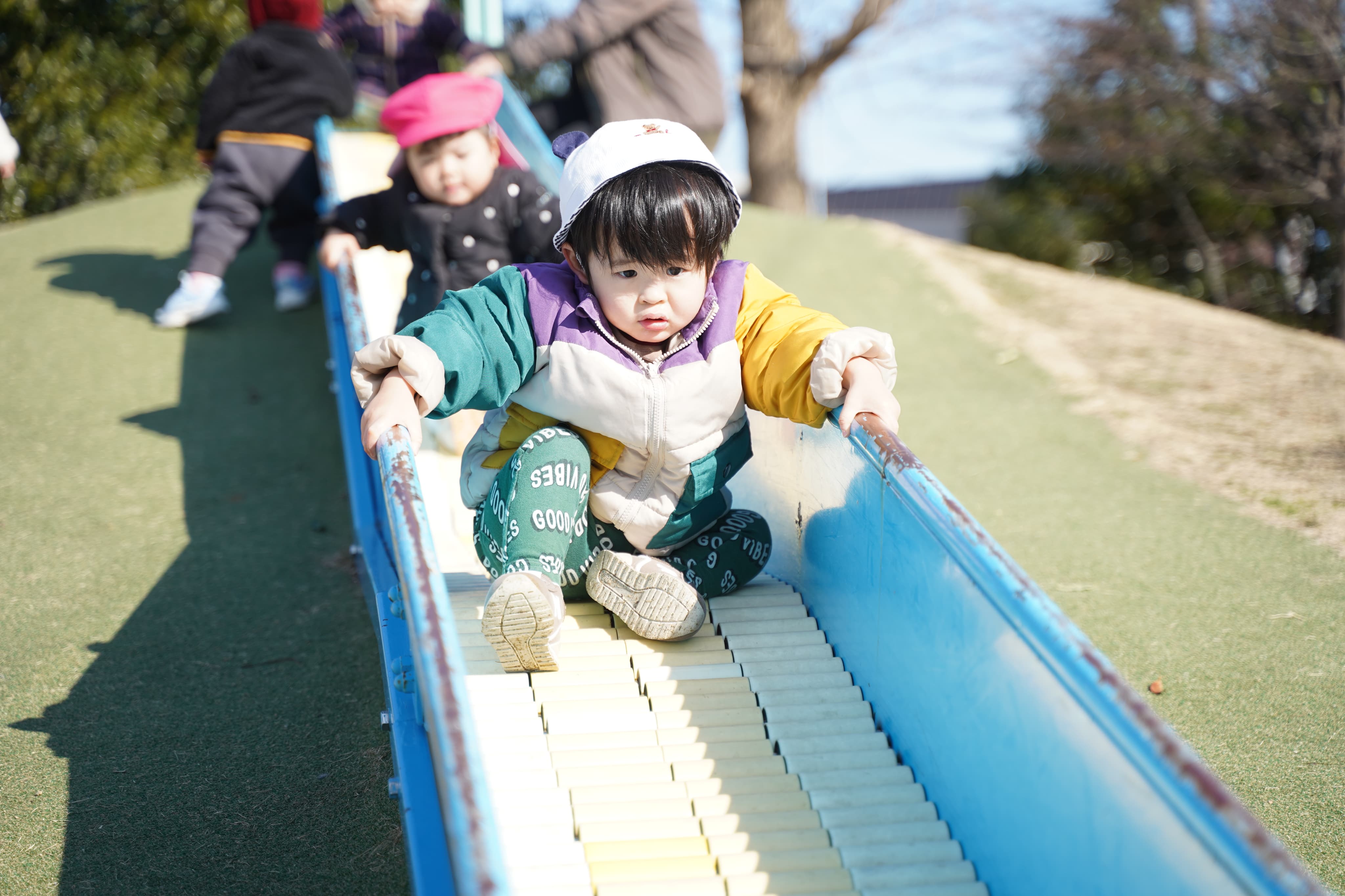 探索をしたり滑り台やブランコをしたり、好きな遊びを楽しみました♪