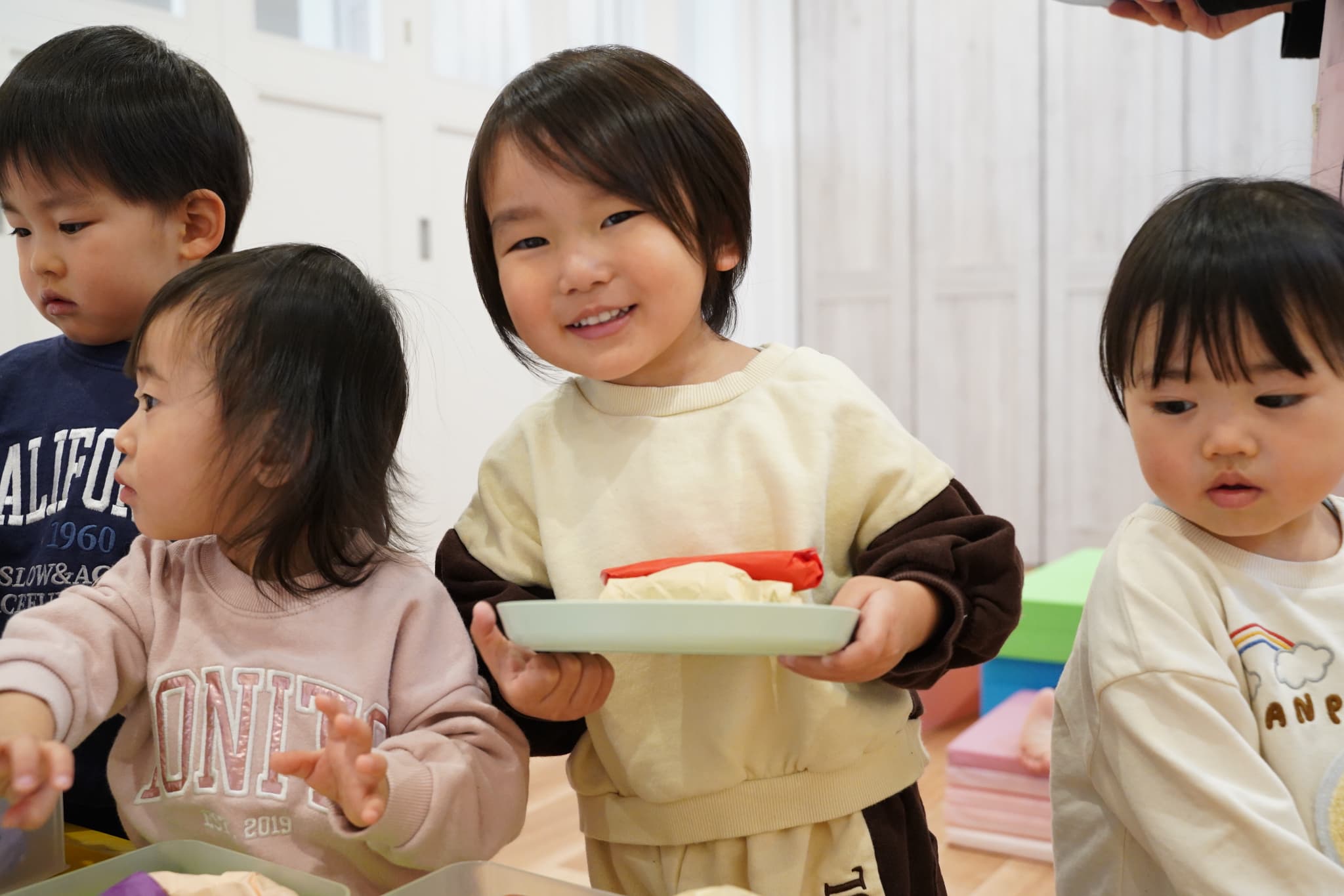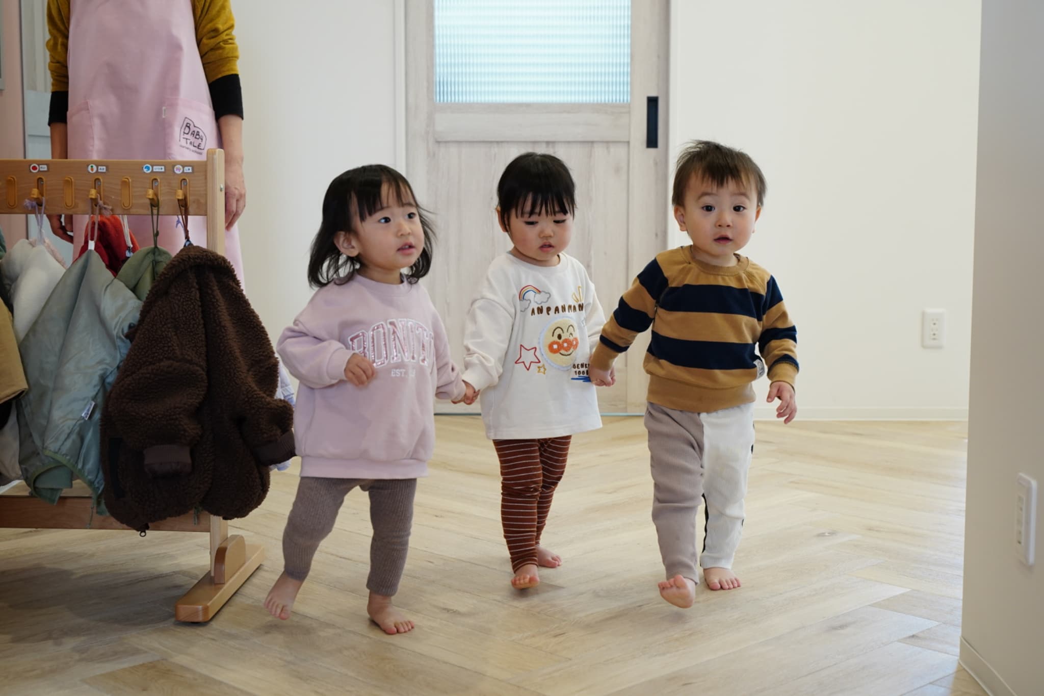 まずはいちご組のお友達が手を繋いでやってきましたよ♡