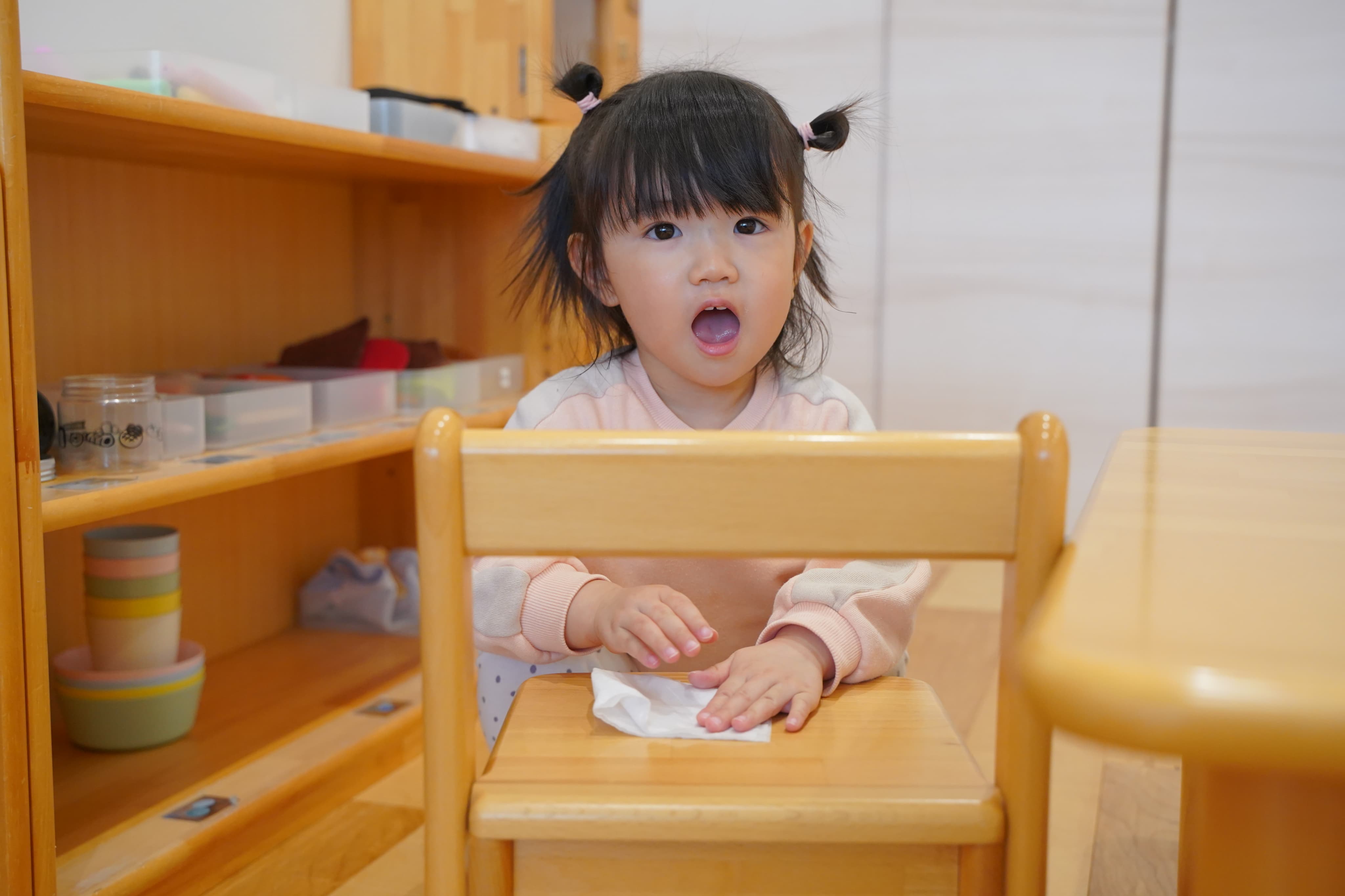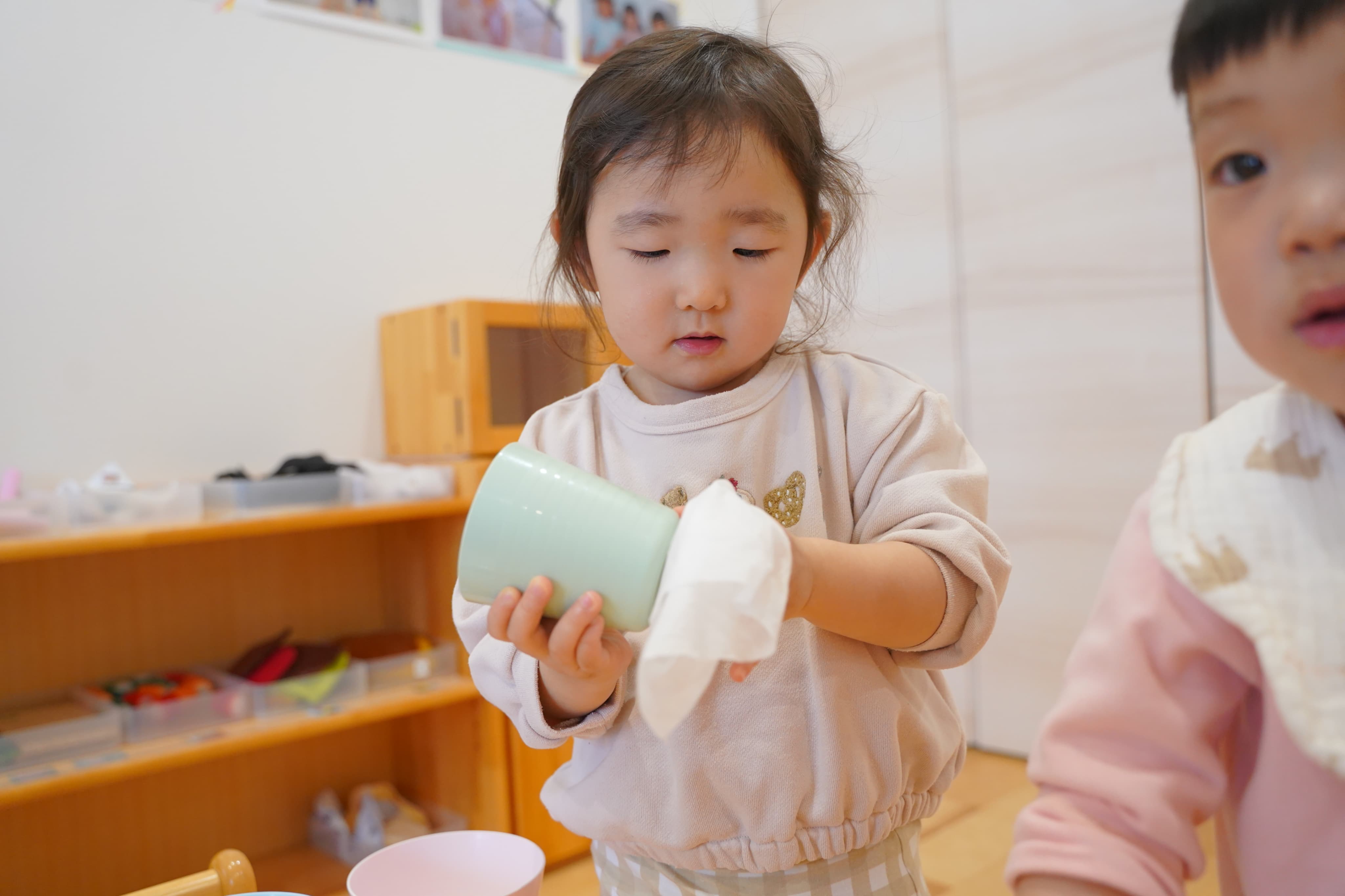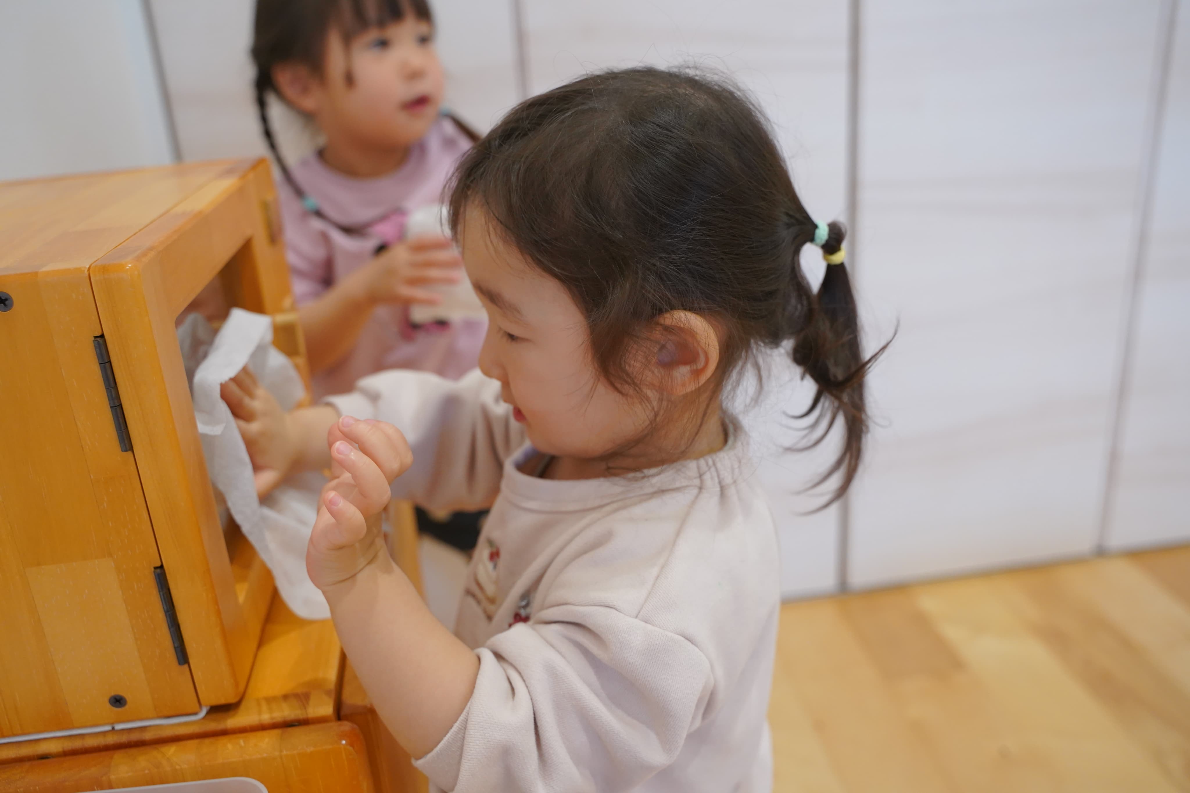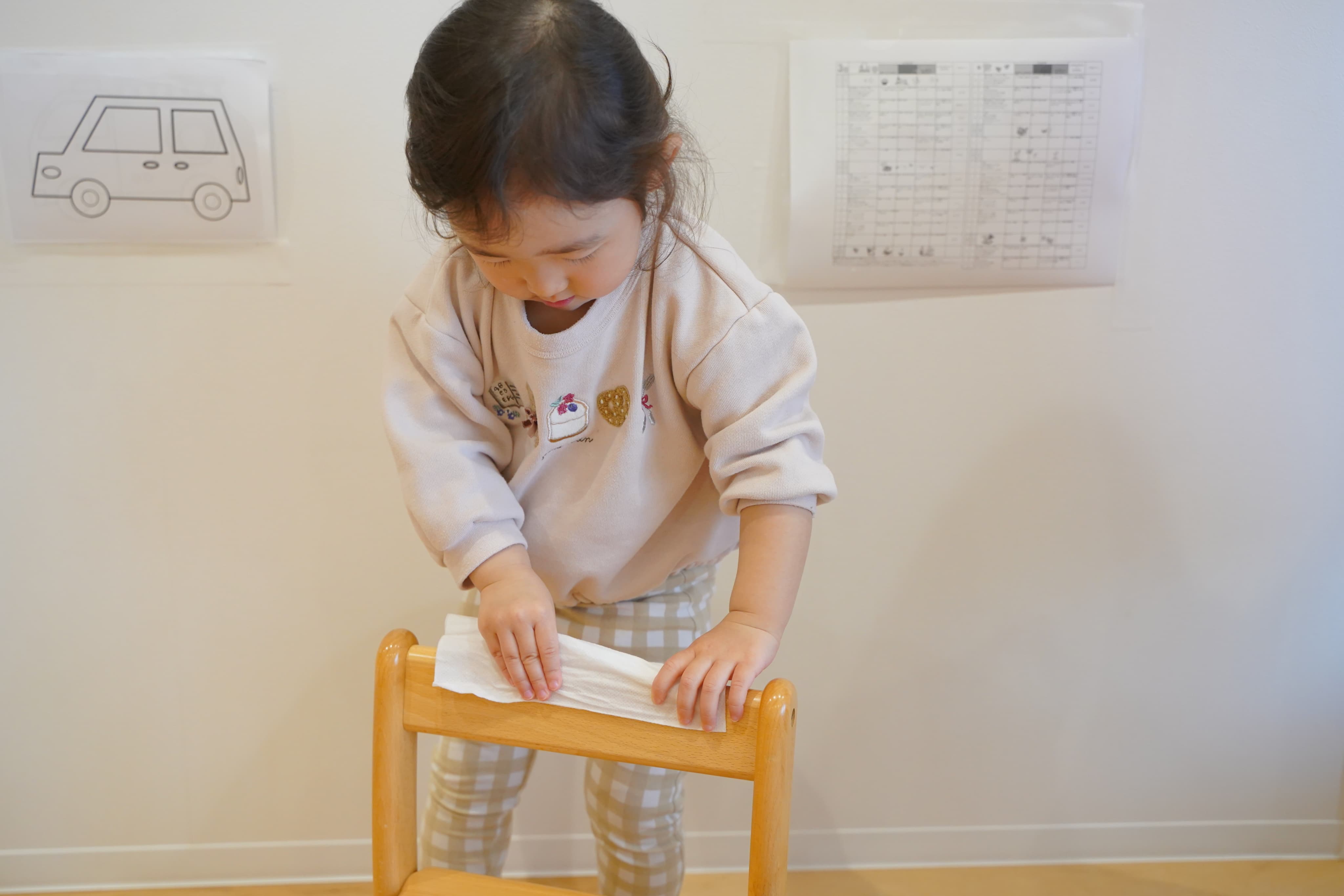 汚れた拭き物を見て、「色がついたよ〜」と嬉しそうに見せてくれる姿もありました💭
