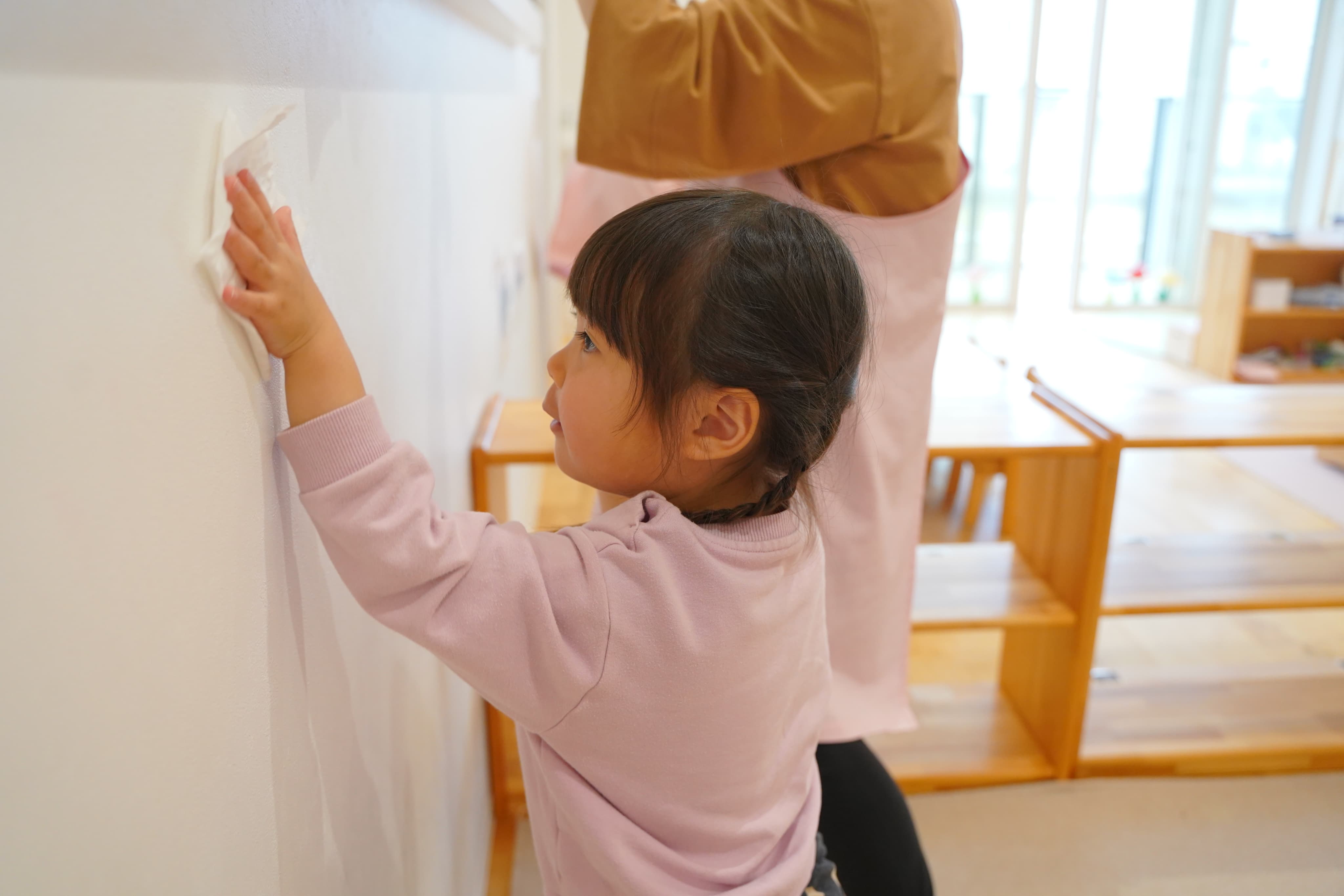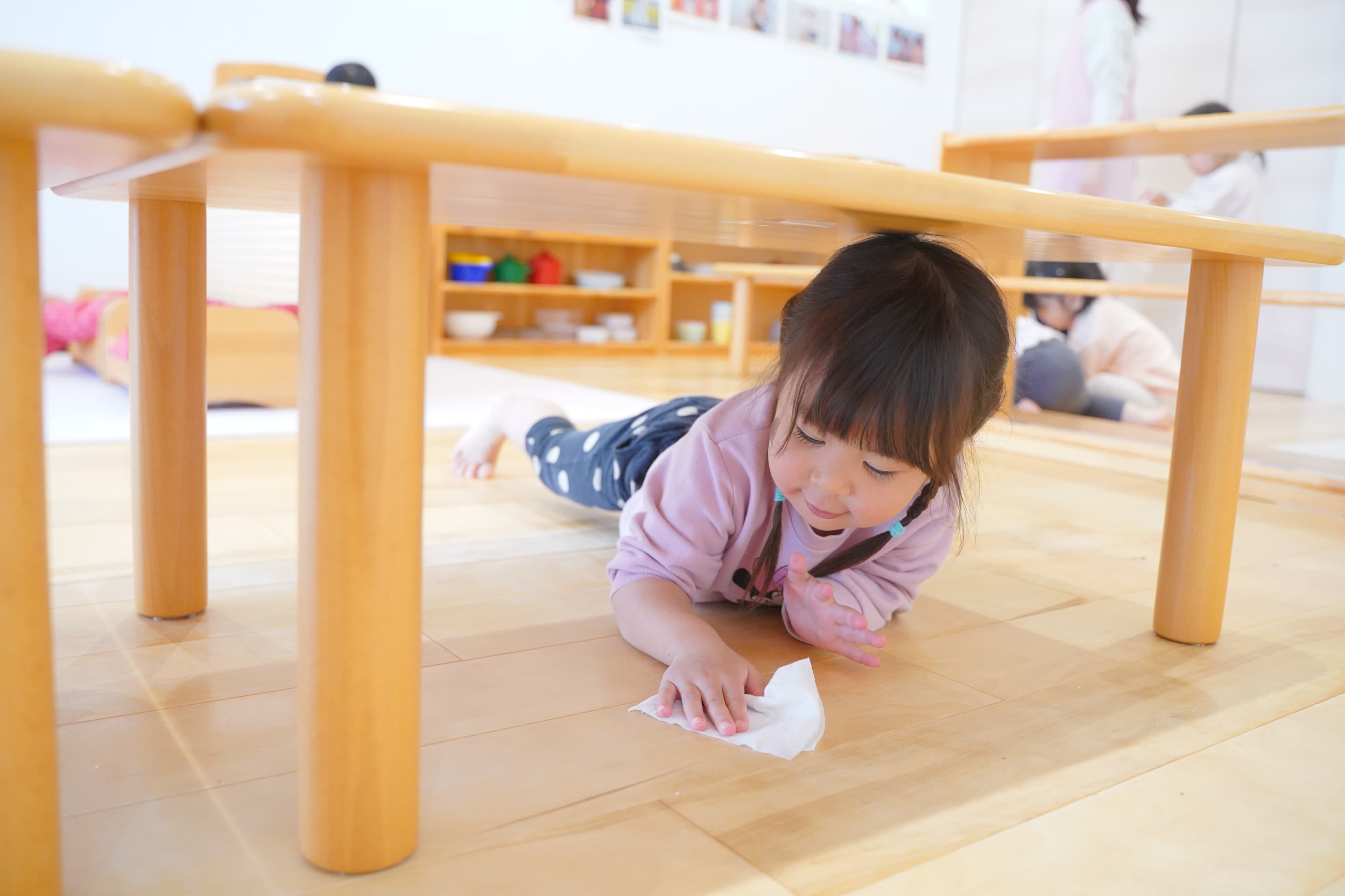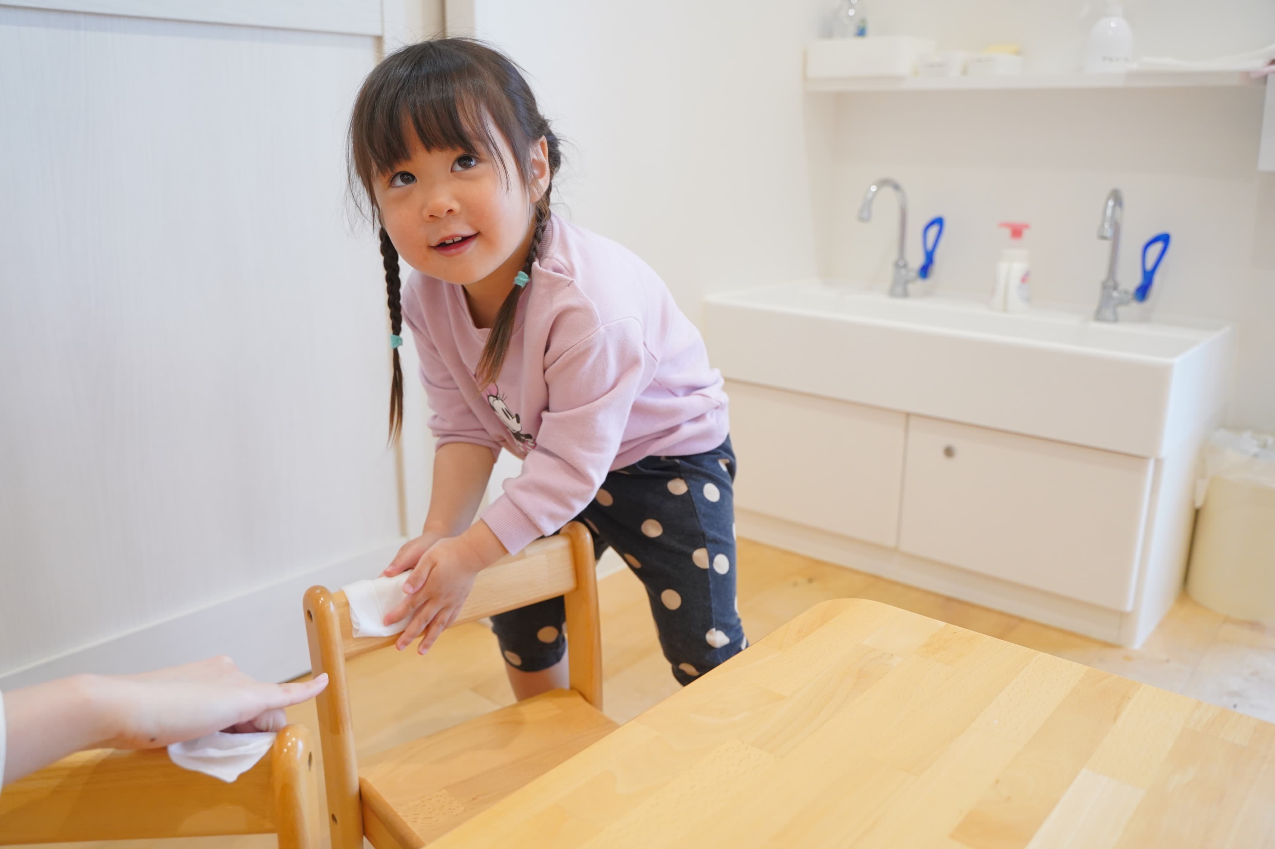 初めは先生の真似をして拭いていた子どもたちでしたが、だんだんと自分たちで拭ける場所を見つけてお掃除してくれていましたよ✨✨「こっちも拭くよ!おいで」と先生やお友だちに教えてくれる姿もありました🤭💕