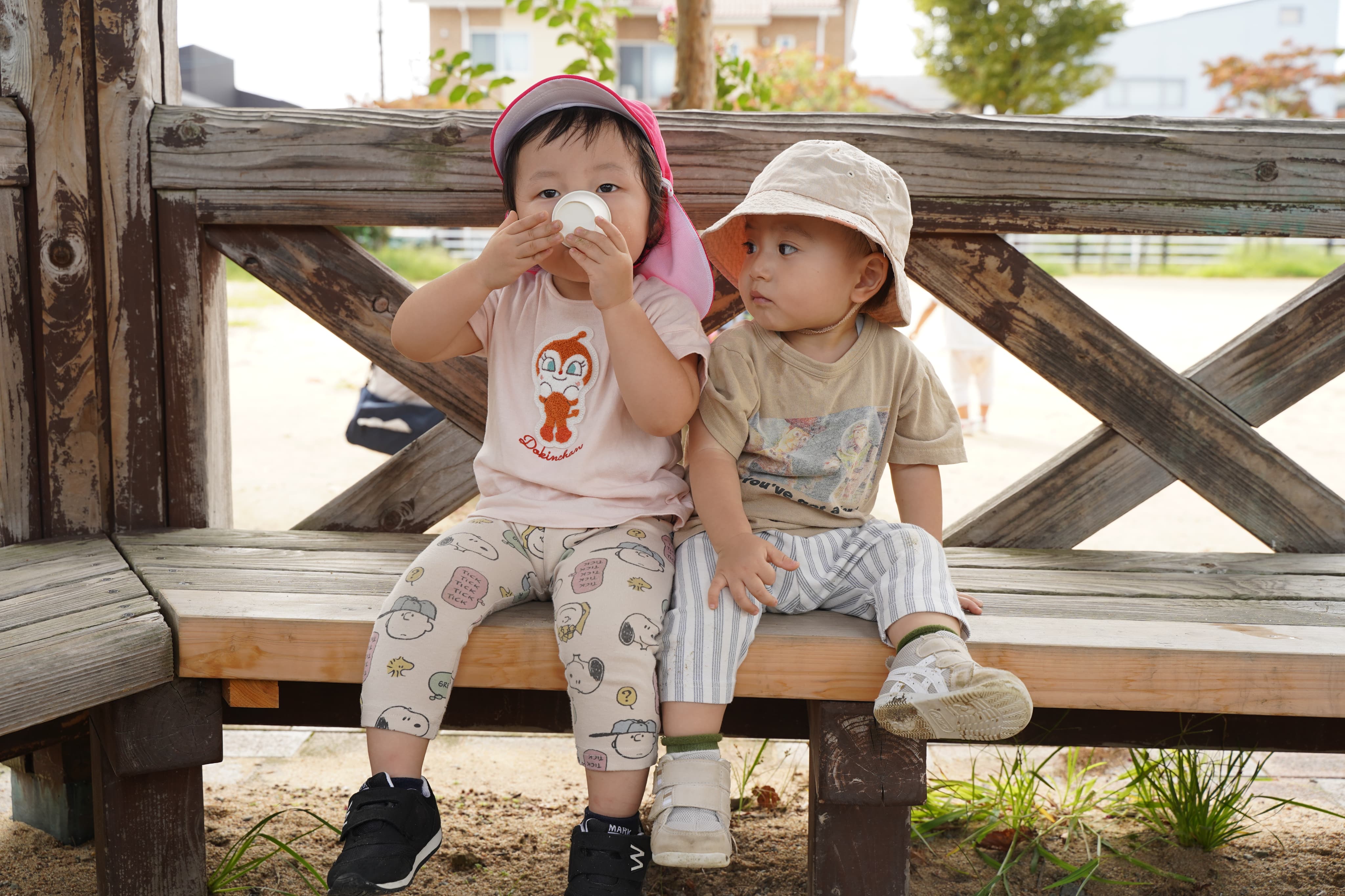 冒険のあとは水分補給!(ぼくはもう飲み終わった後です😁)