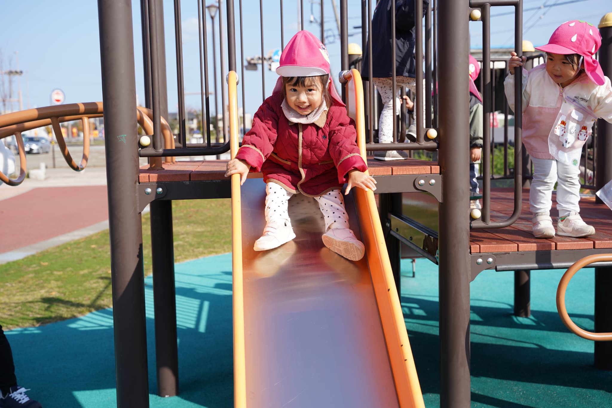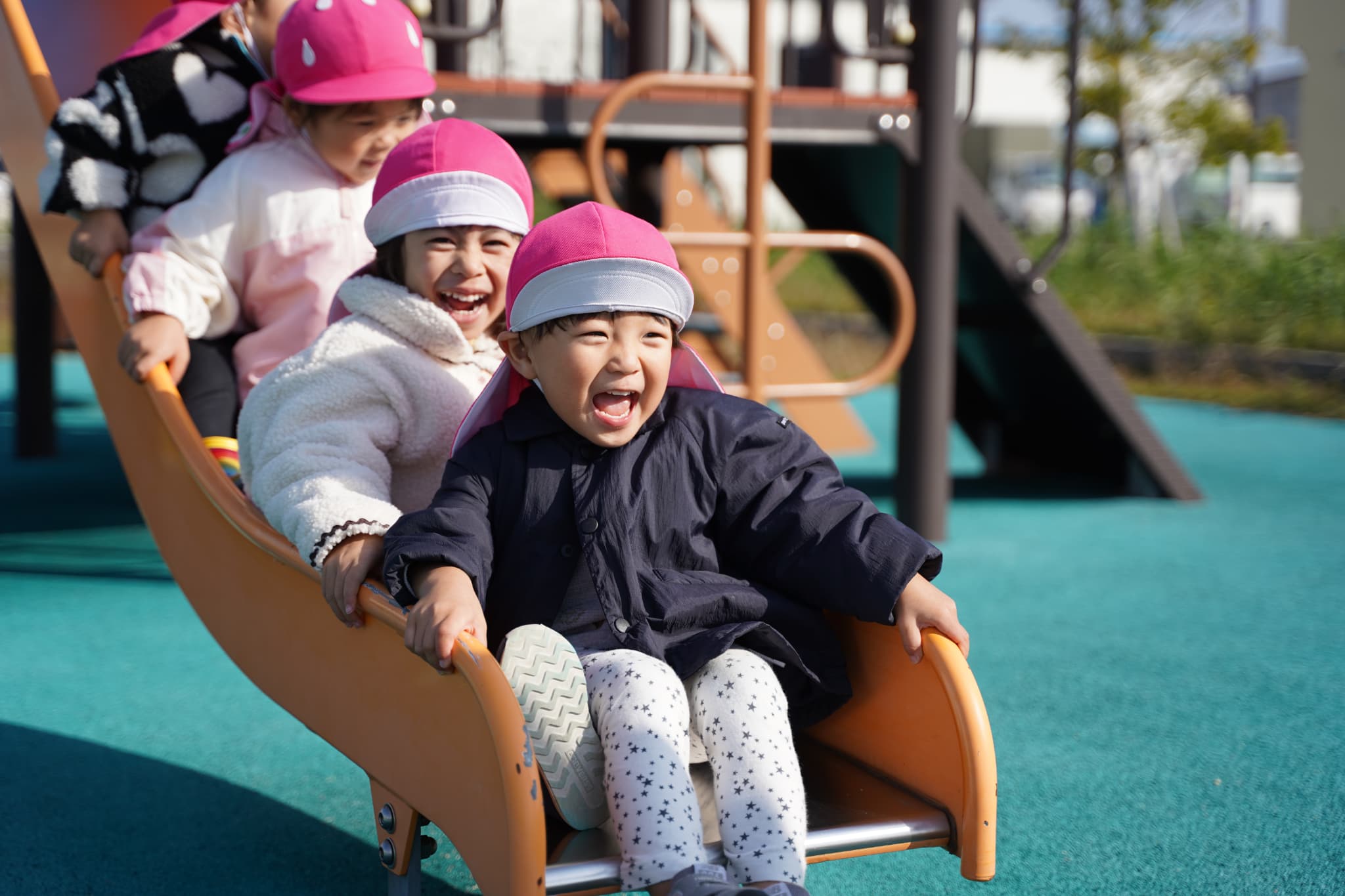 もも組さんはスピードを調節し、お友だちとタイミングを合わせて滑って大笑いしていました。