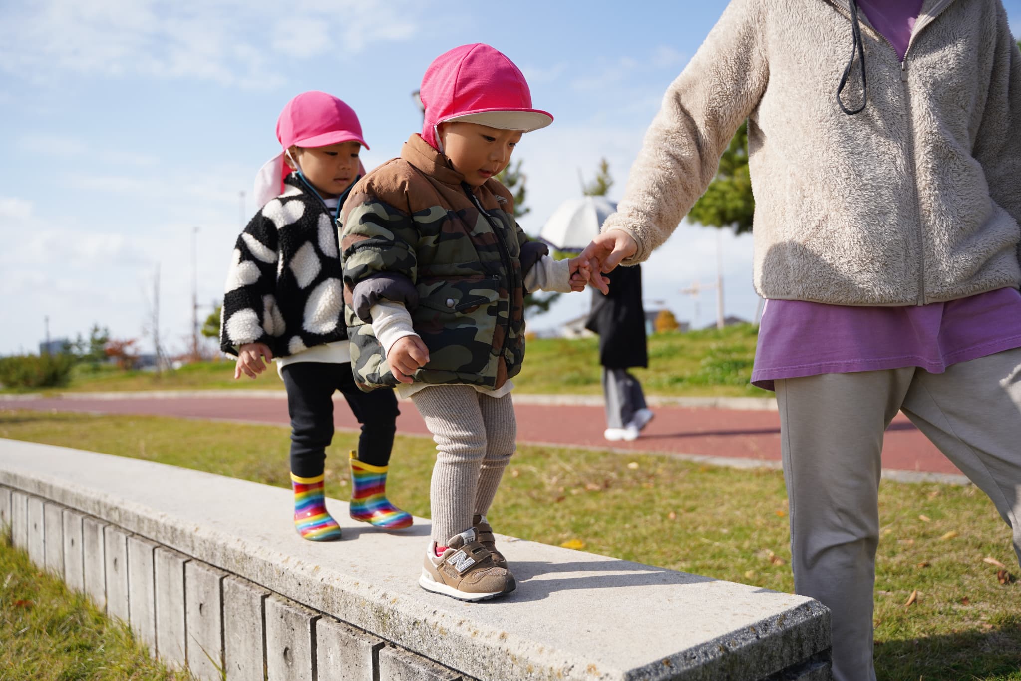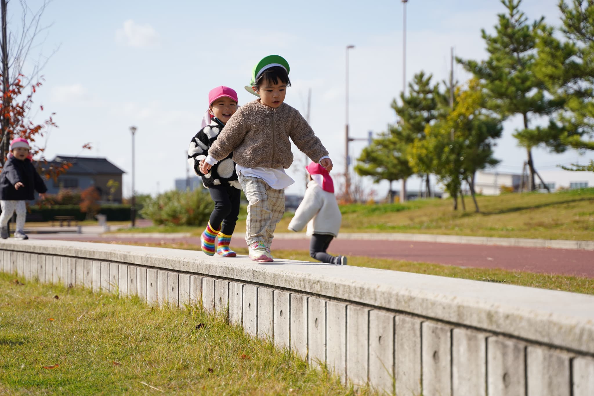 撮影後はすぐに公園に行く気持ちが出てきてお友だちと手を繋いで歩き出す子ども達でした。