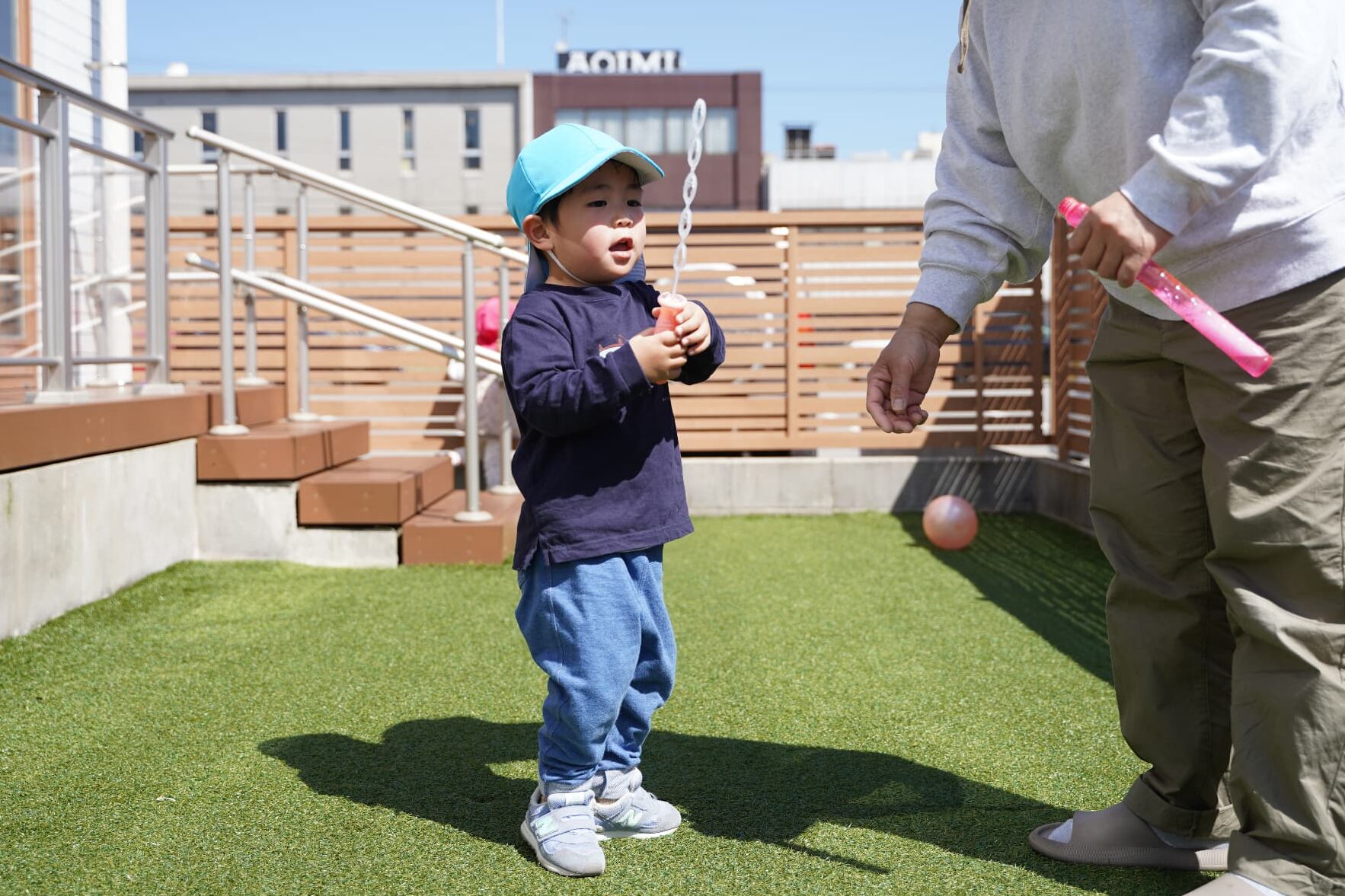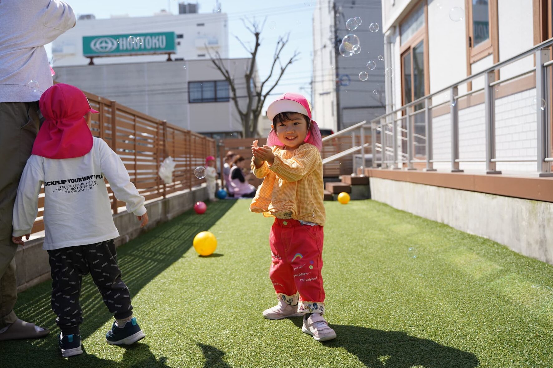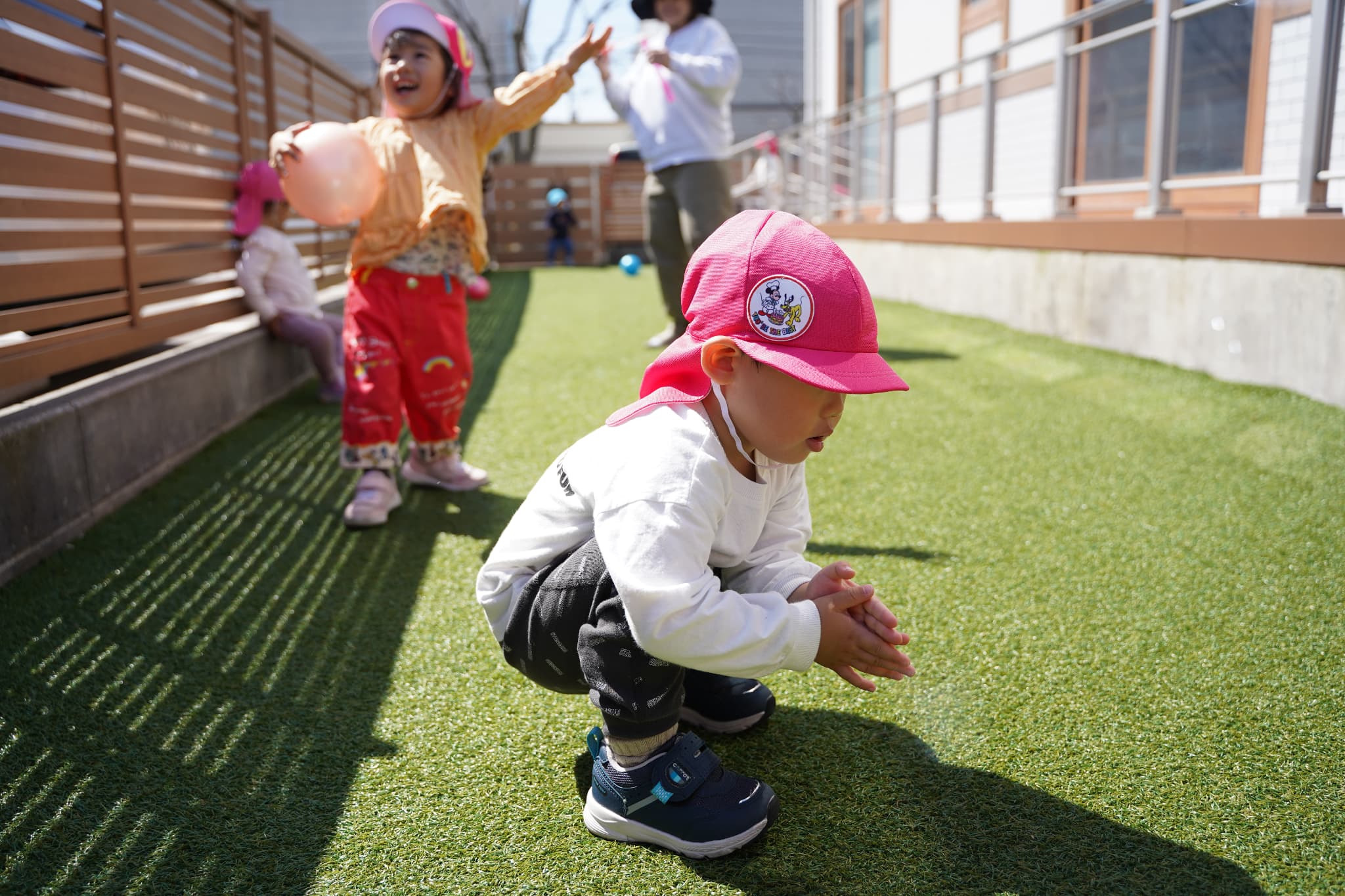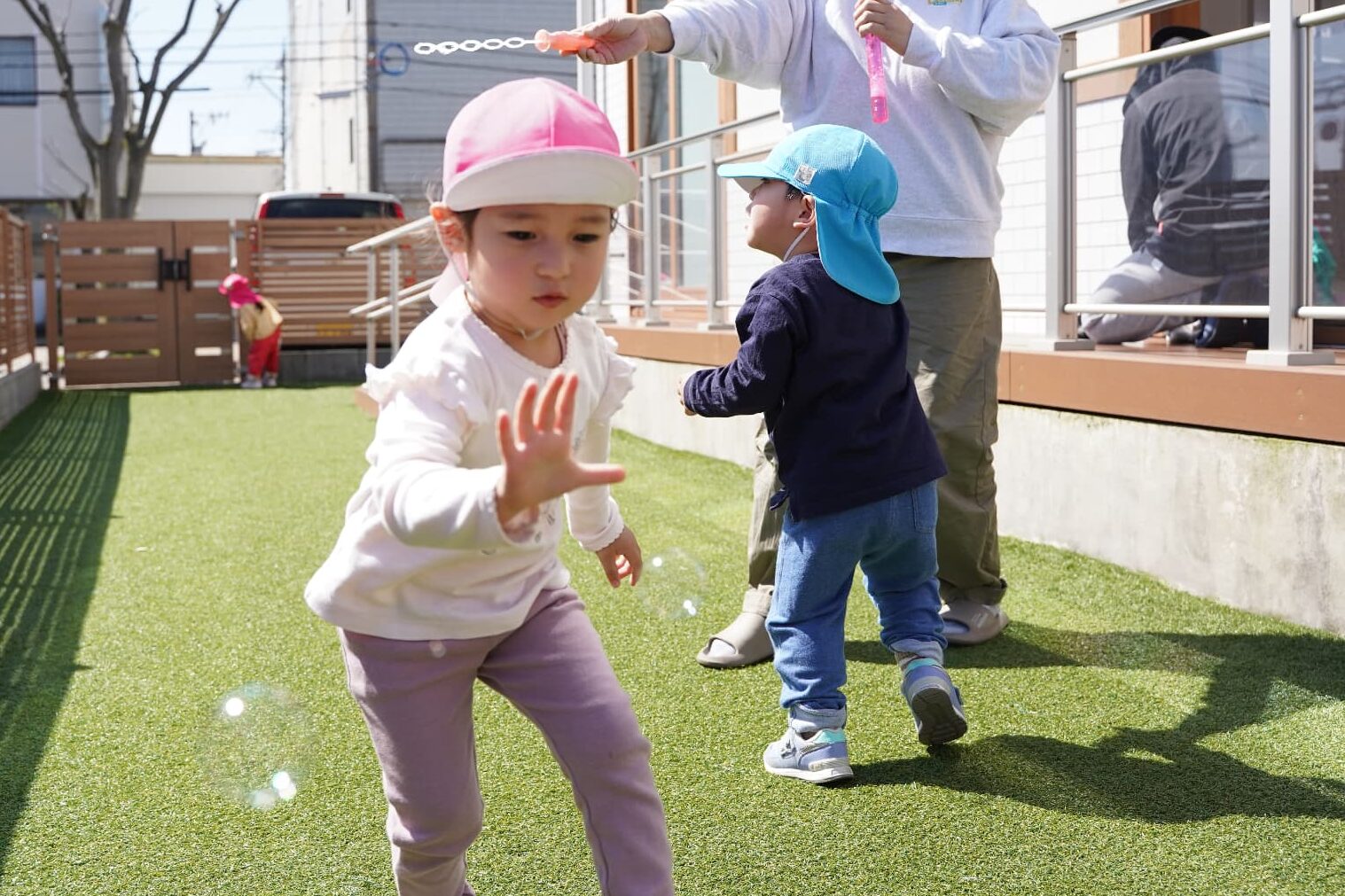 シャボン玉を追いかけて、たくさん走って、子ども達は汗をかくほど楽しみました🎶