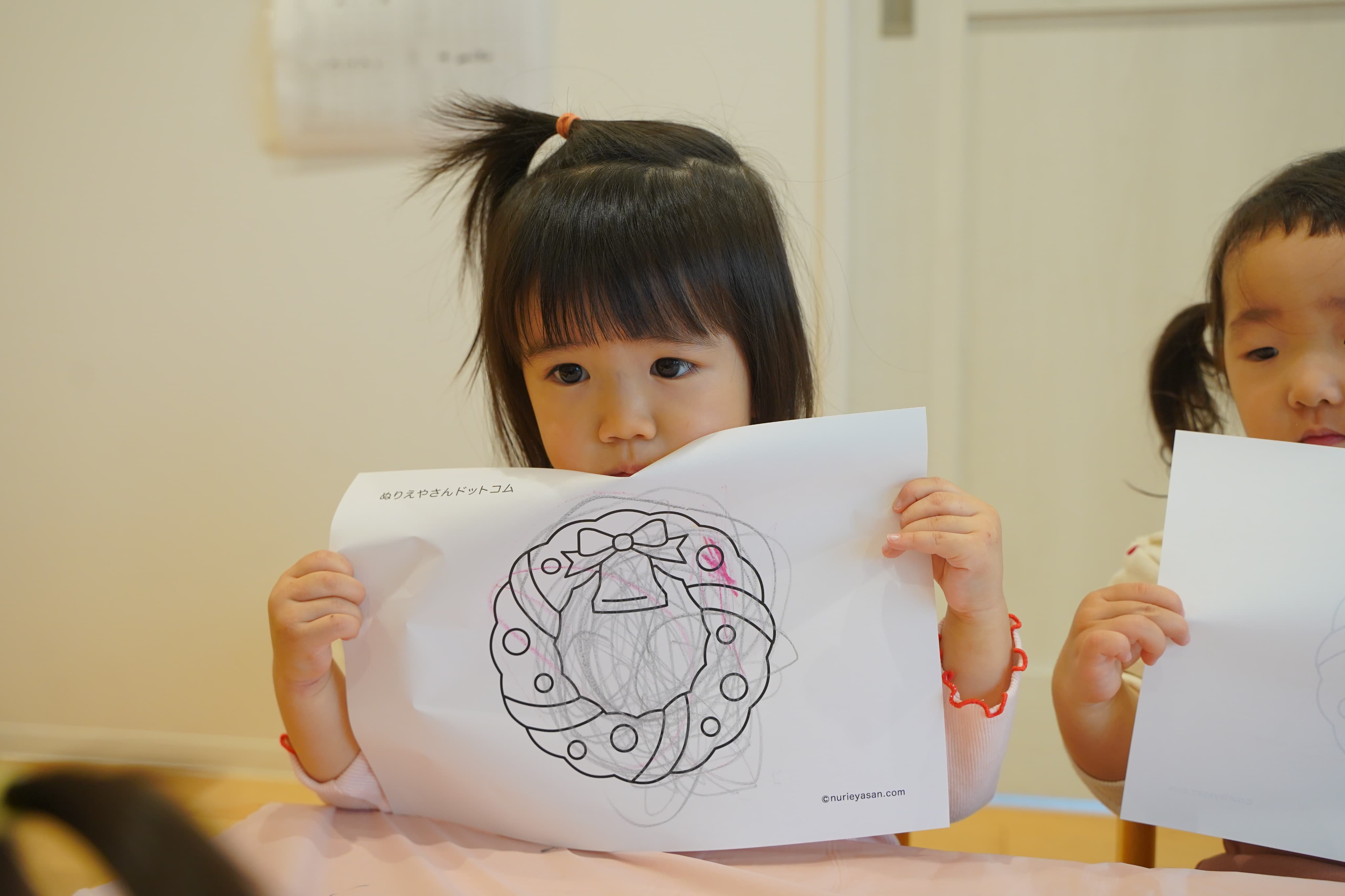 自分たちで選んだイラスト(ベルorリース)に色鉛筆で色をぬりぬり🖍️