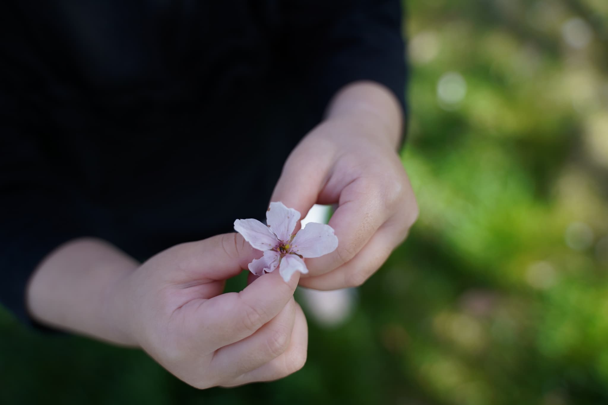 公園に着くと立派な桜が咲いていて、みんなでパシャリ📷私は落ちてた桜、見つけたよ🌸