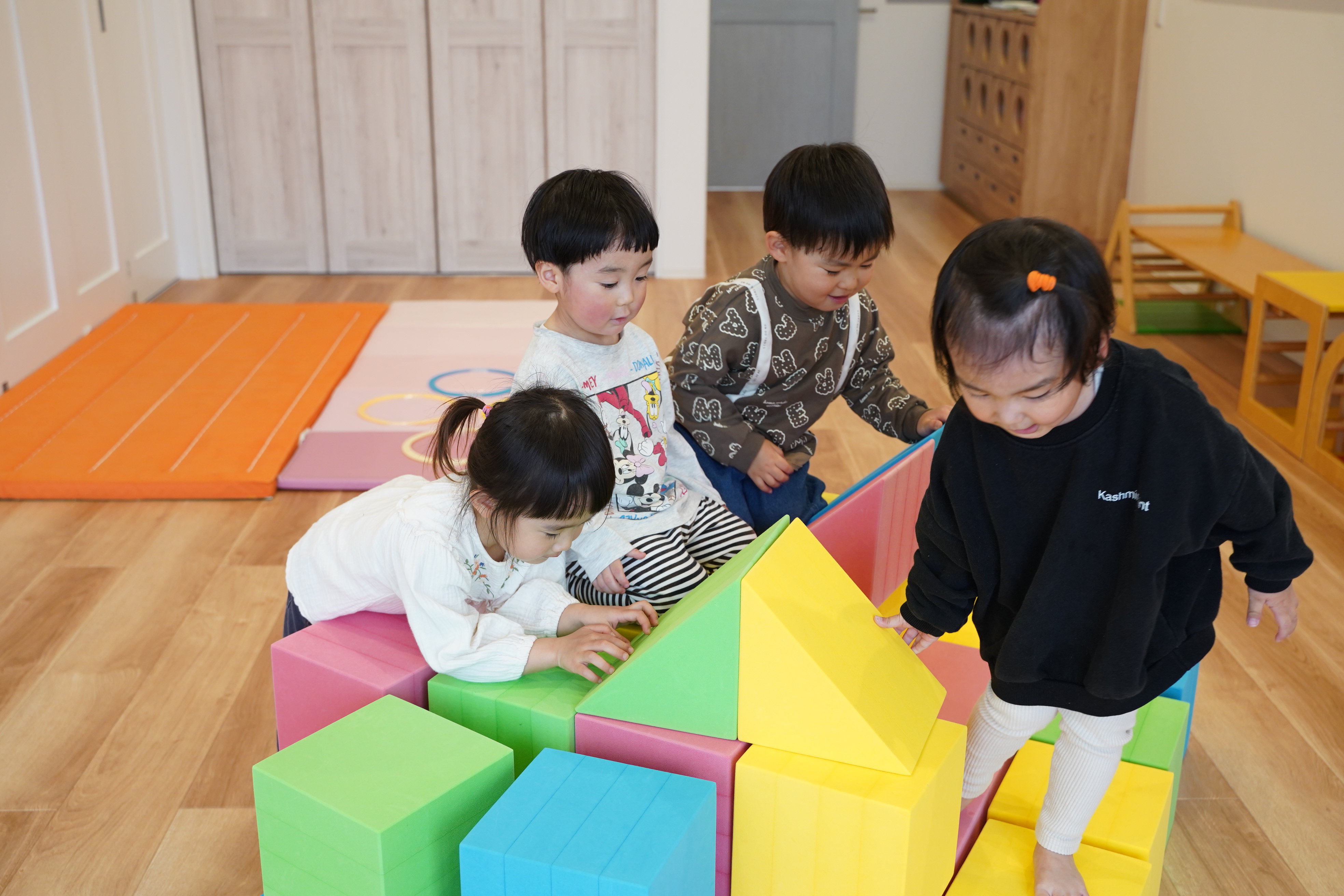 お部屋では大好きなプリズモやアキシモにハマって遊ぶ子どもたち🎵