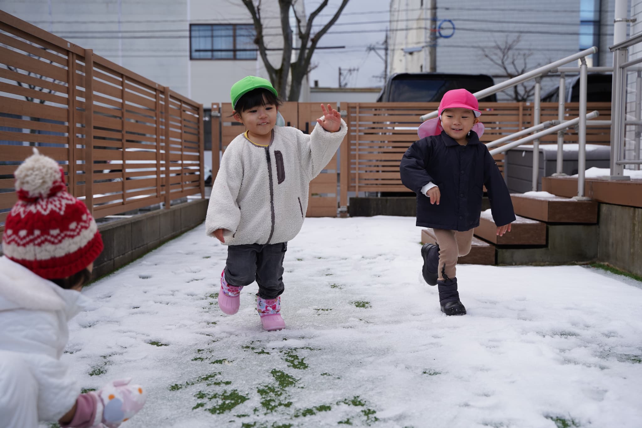 しゃりしゃりした雪の感触を全身で楽しむ子どもたちでした🙌🦶