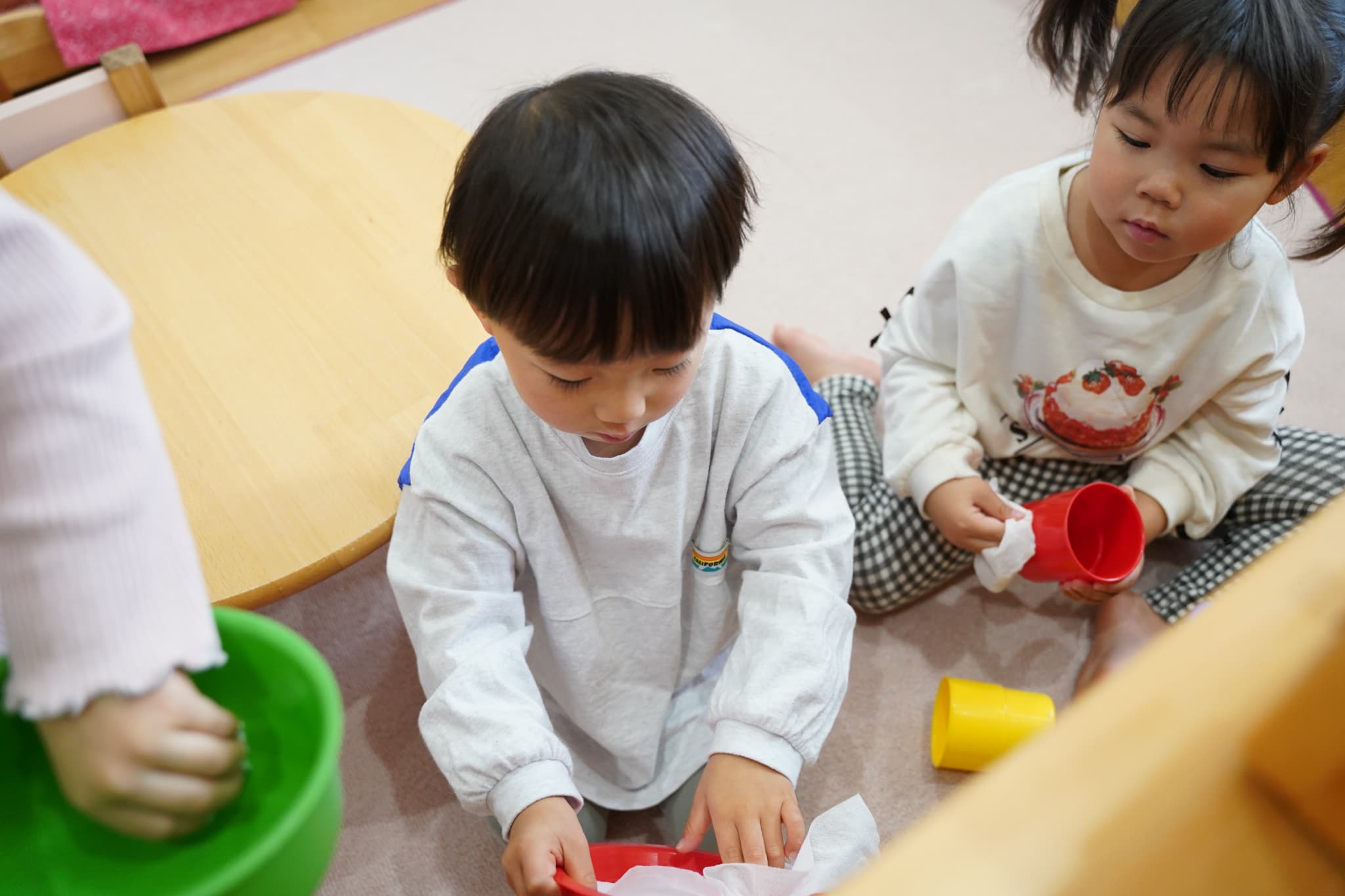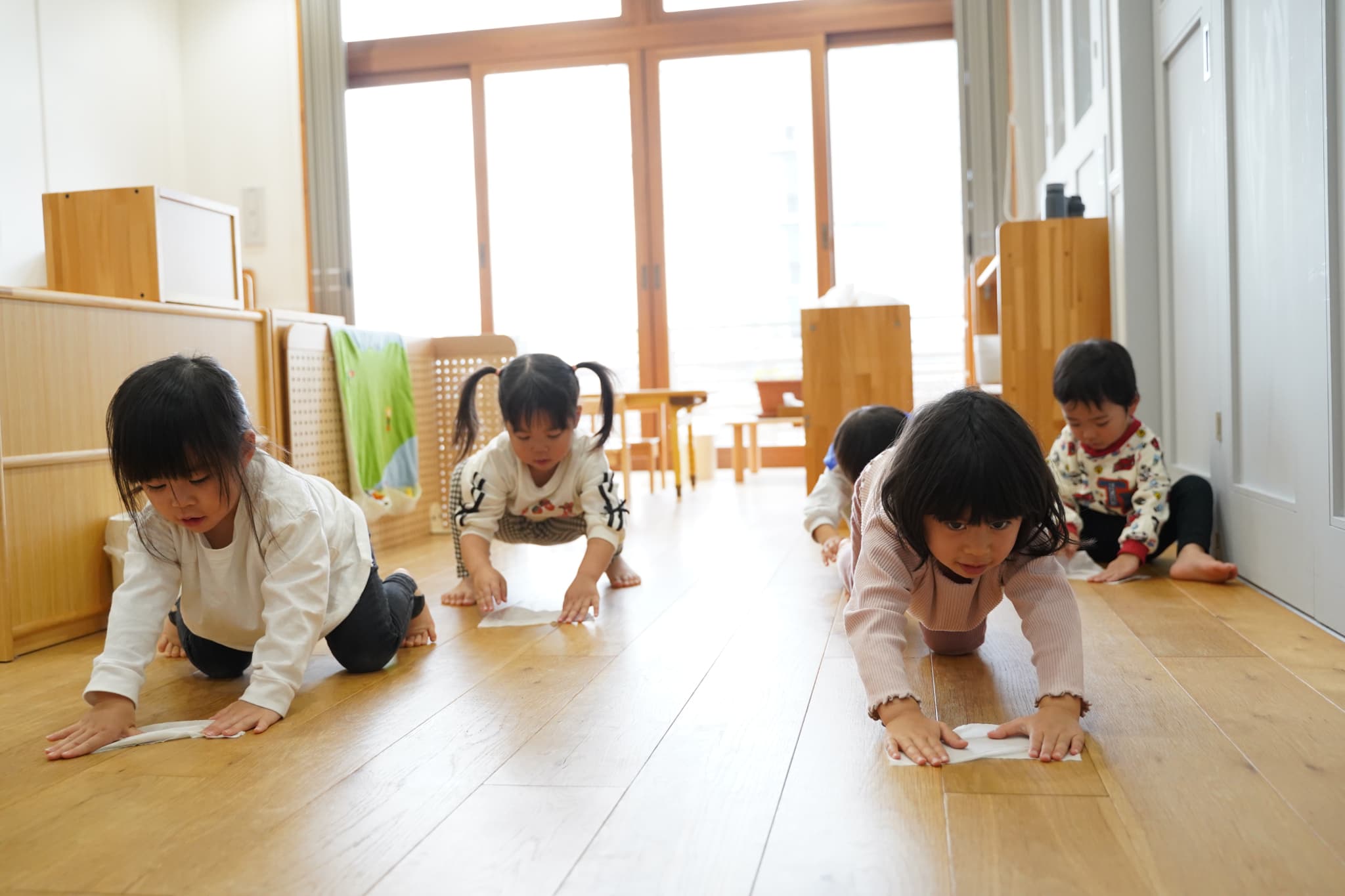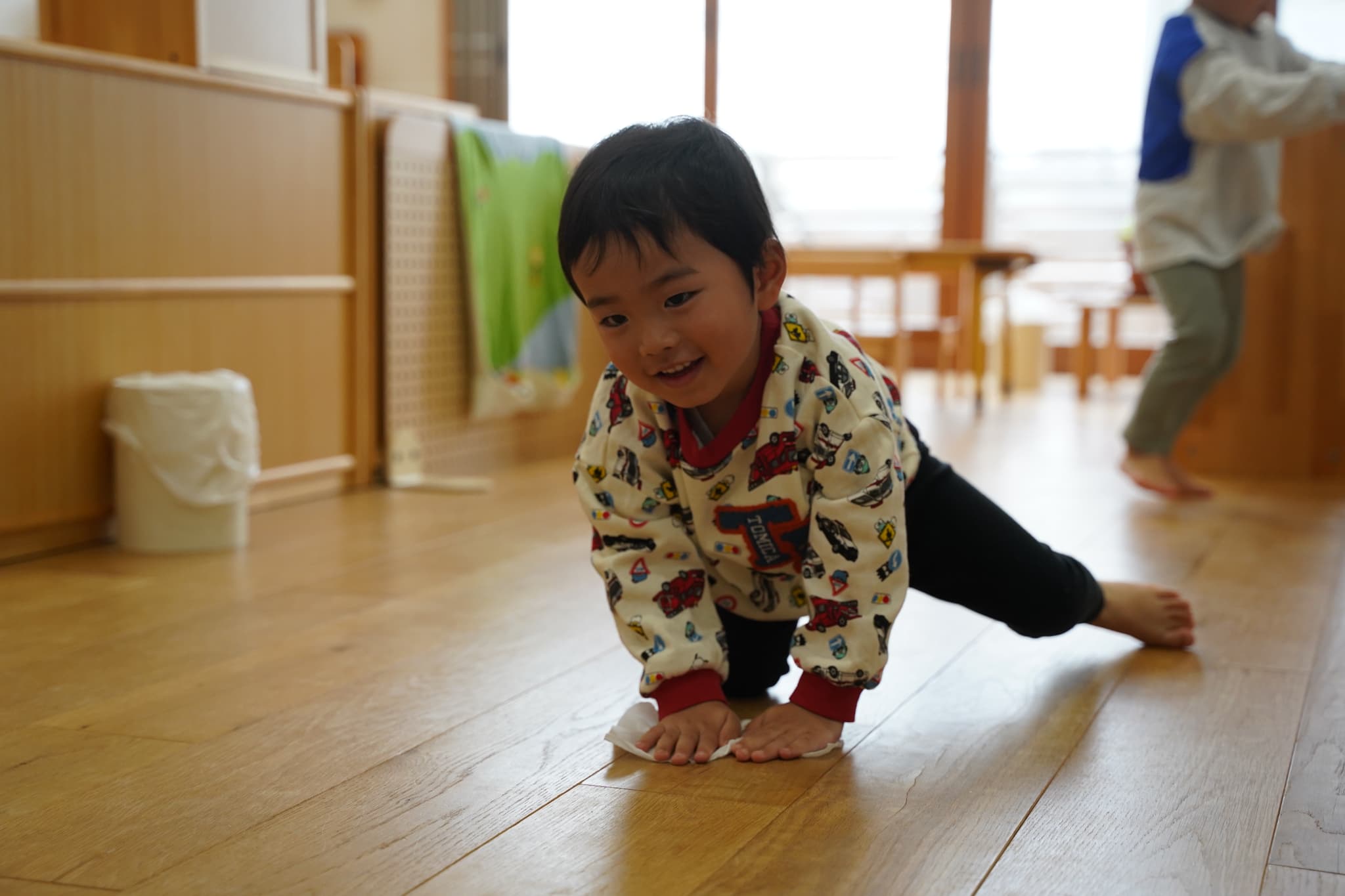 子どもたちの反応はどうかな?と思い大掃除をしてみましたが、自分たちで拭く場所を見つけていく姿に驚きました。またお掃除後は綺麗になった気持ちよさも感じている様でした。綺麗なお部屋で新年が迎えられそうです。