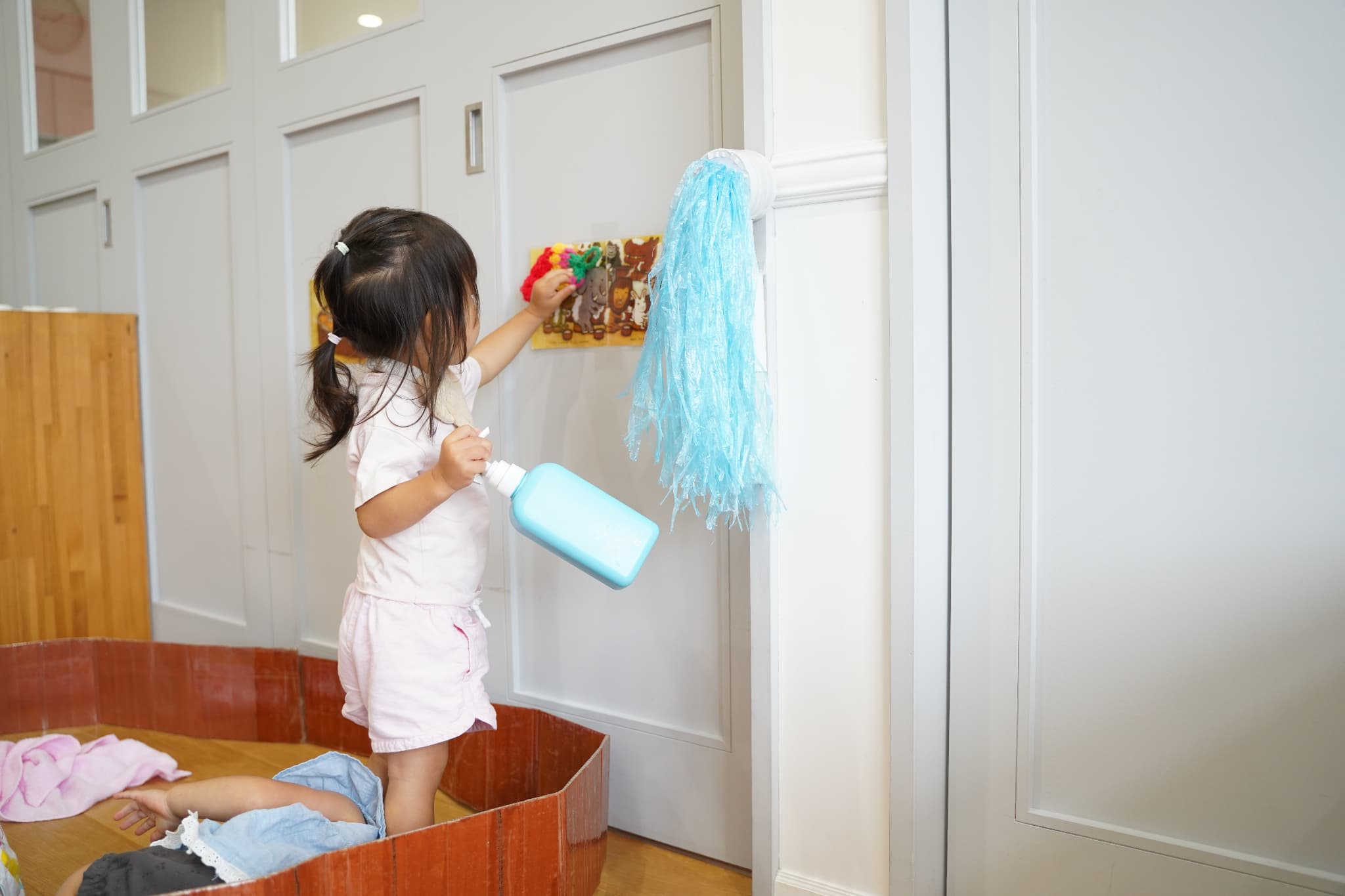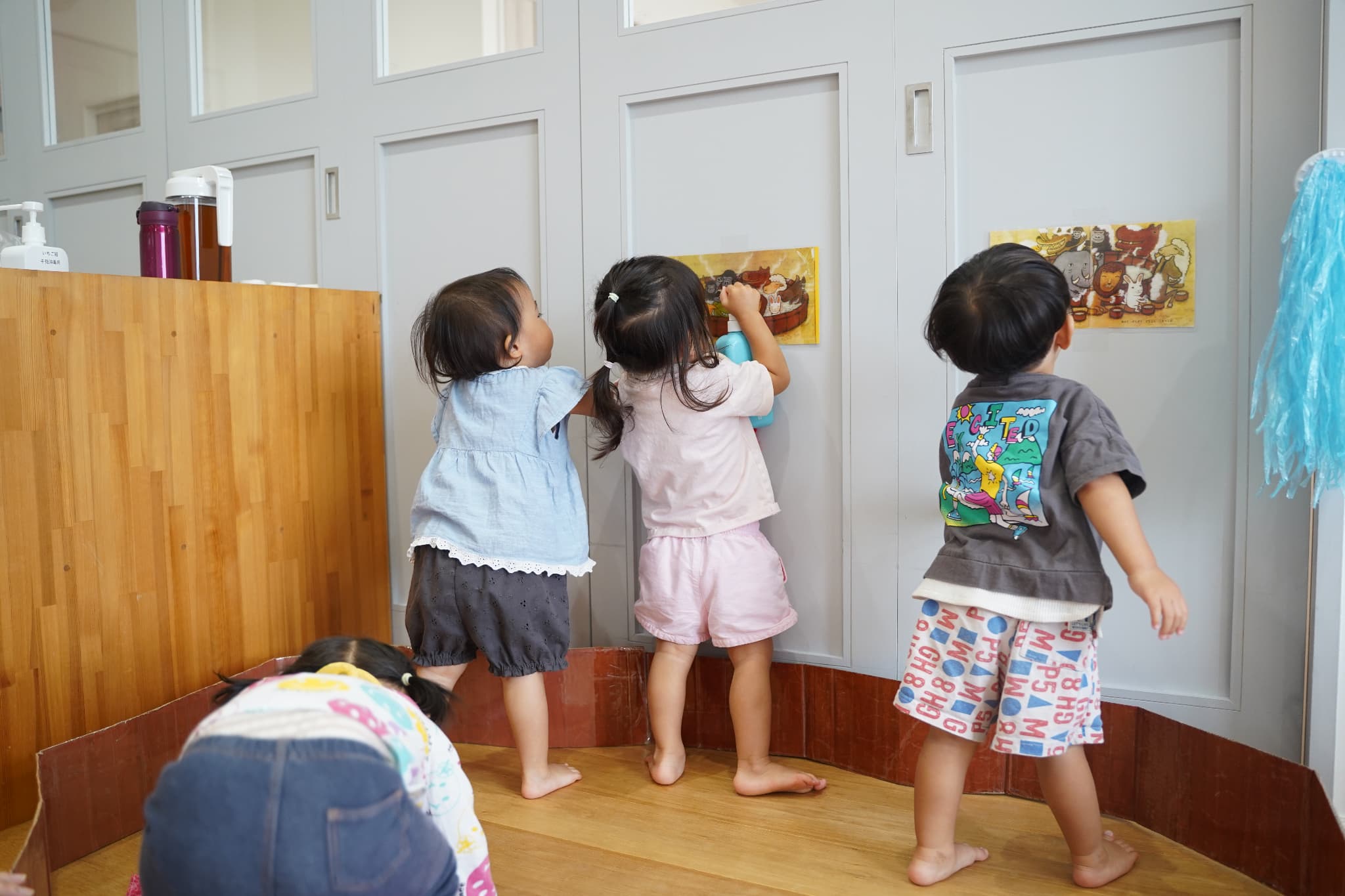 壁に貼った動物さんたちも洗ってあげていました🐘🐇🧴