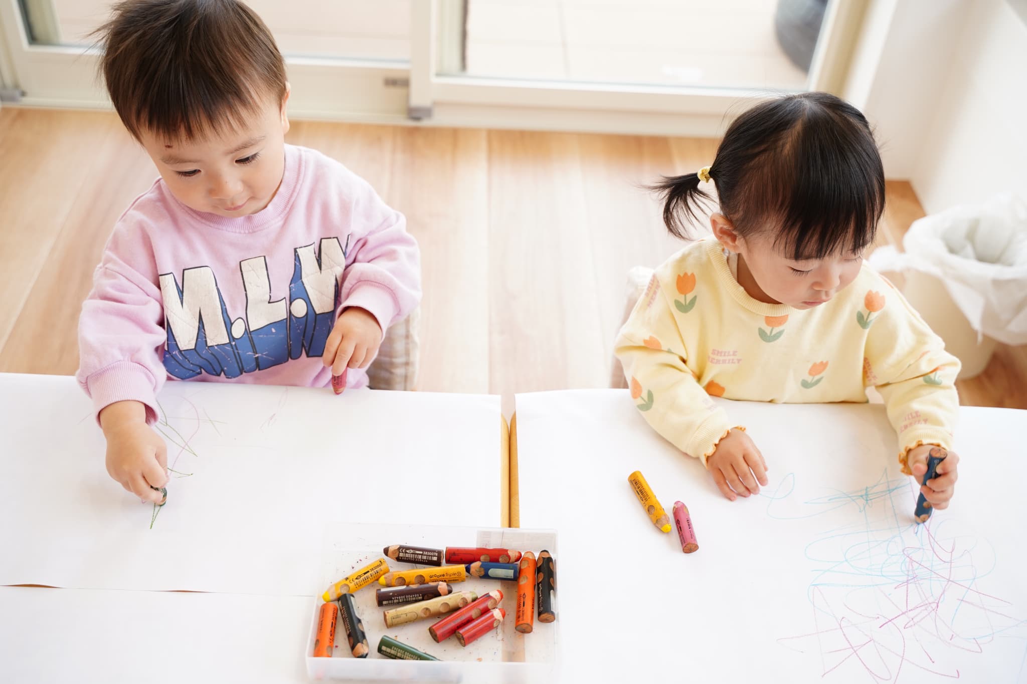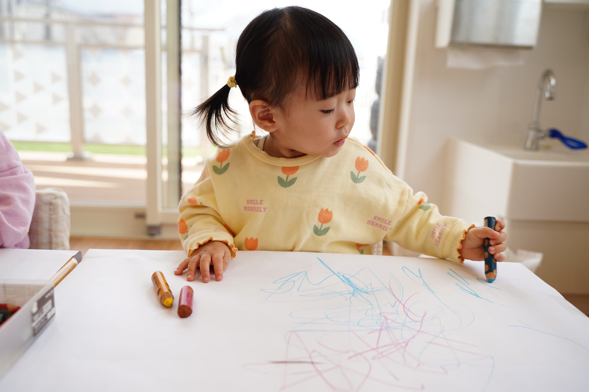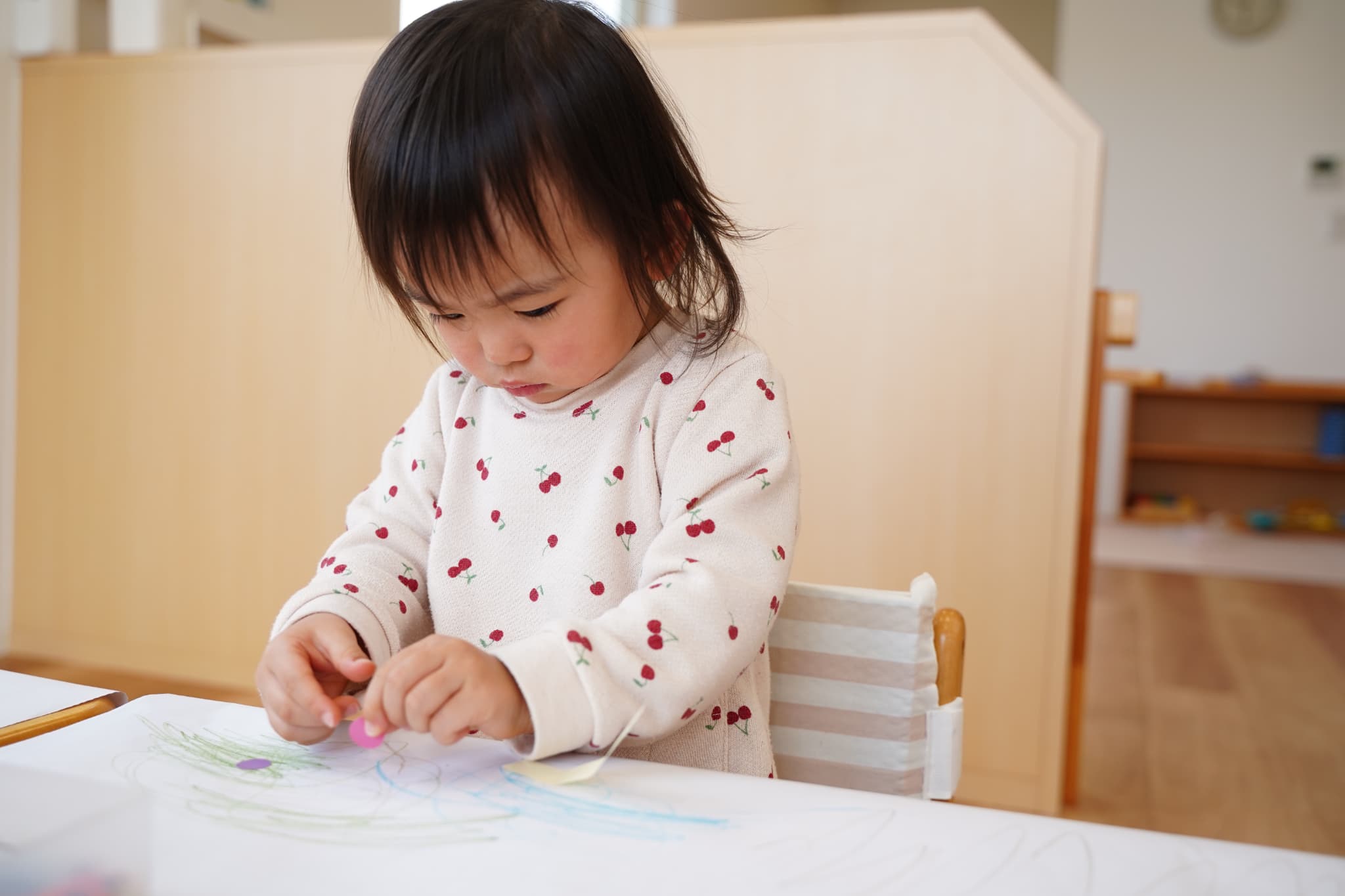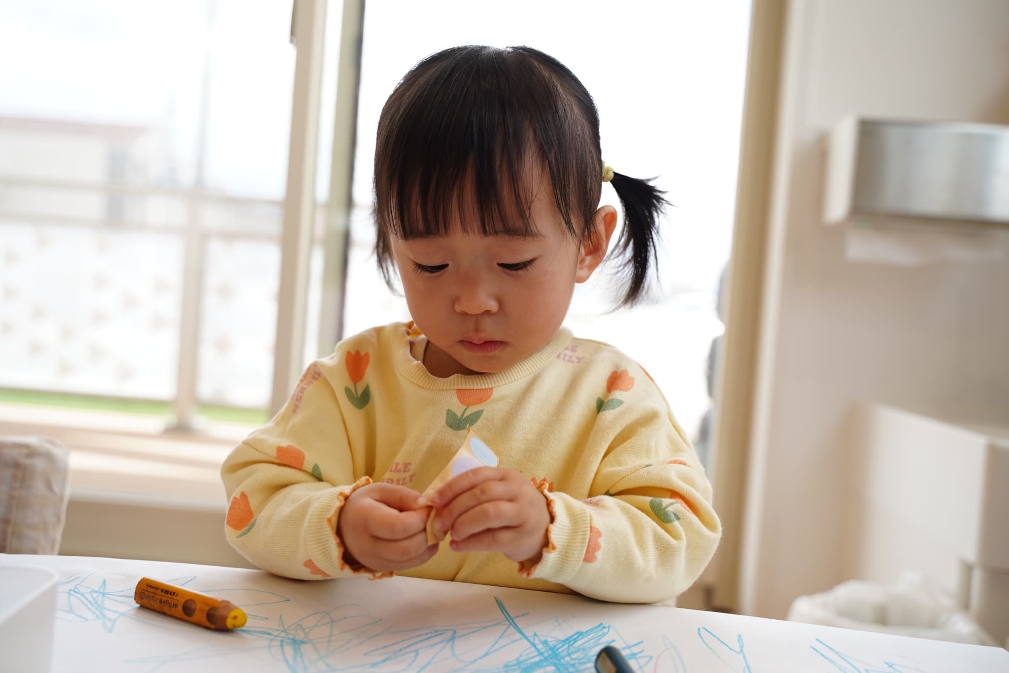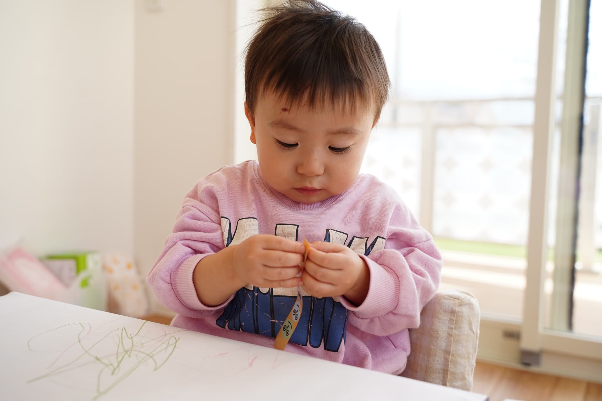 今日はお部屋でまったりお絵描きとシールタイム🖍️