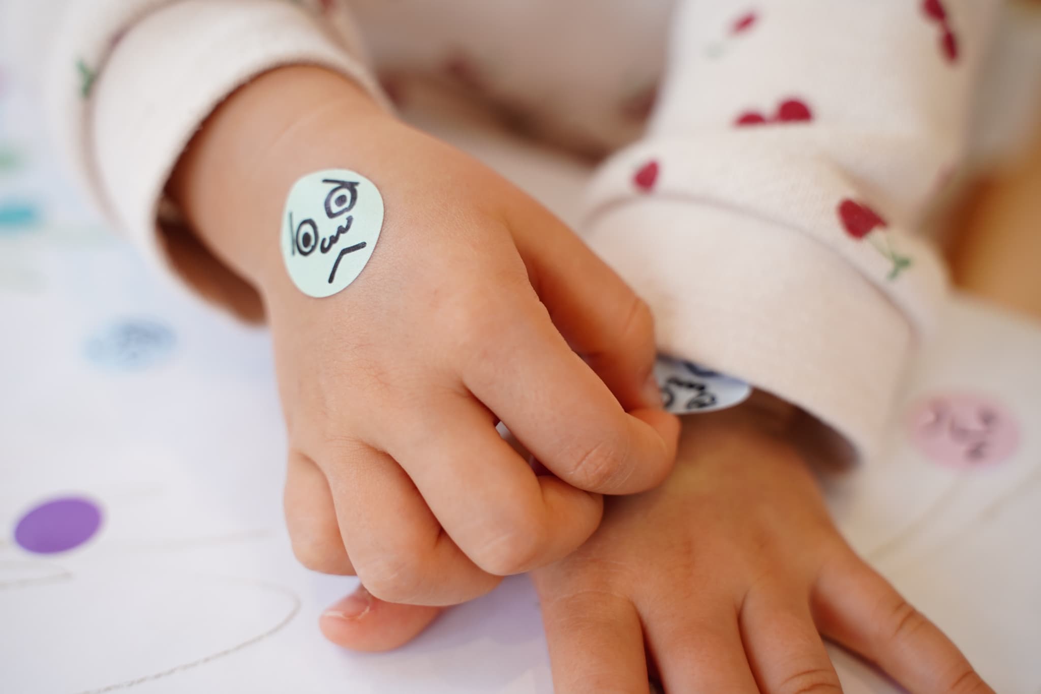 わたしは自分の手にも貼ってみて、嬉しそうに見せてくれました☺️顔がつくとなんだかかわいく見えてきますね💕