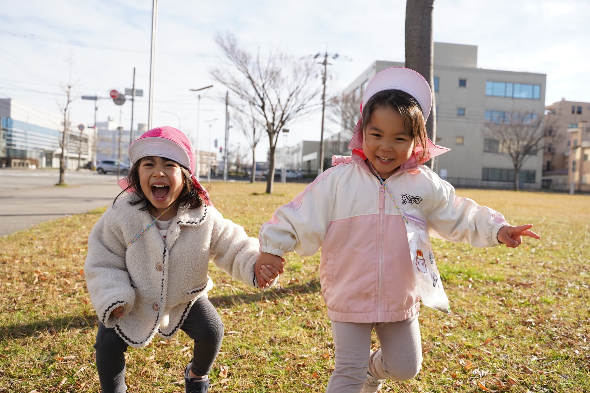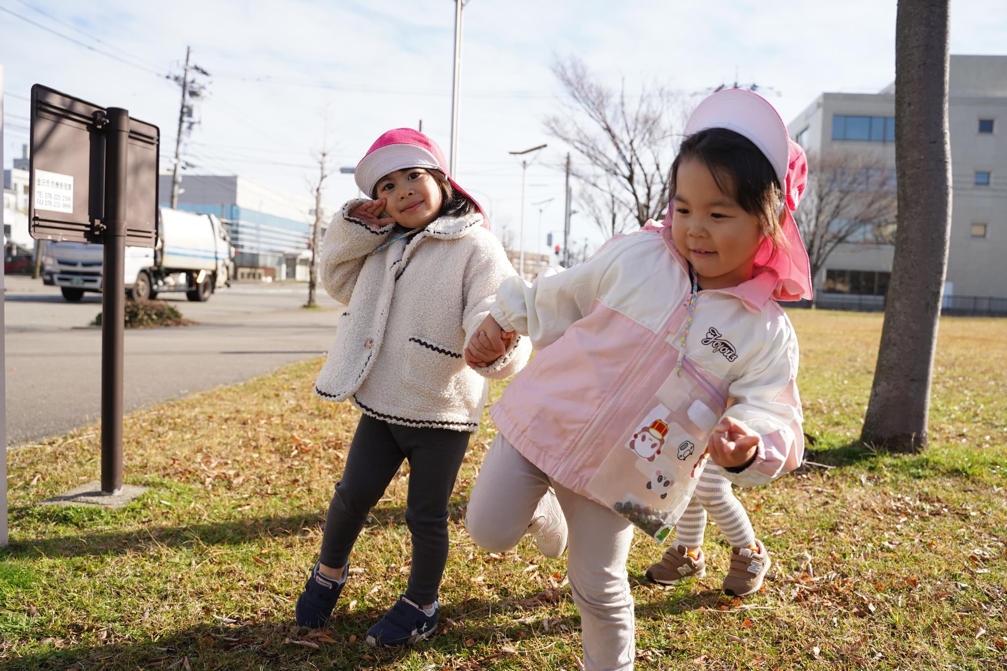 太陽が出ているものの寒い…😨と大人は体が縮こまるような気温でしたが、子ども達は寒さなんてお構いなし!