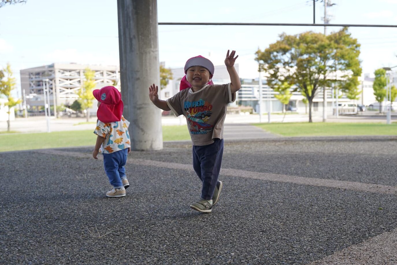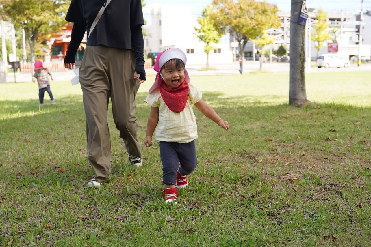 みんなでいっぱい遊んで、お腹を空かして園まで戻りました。