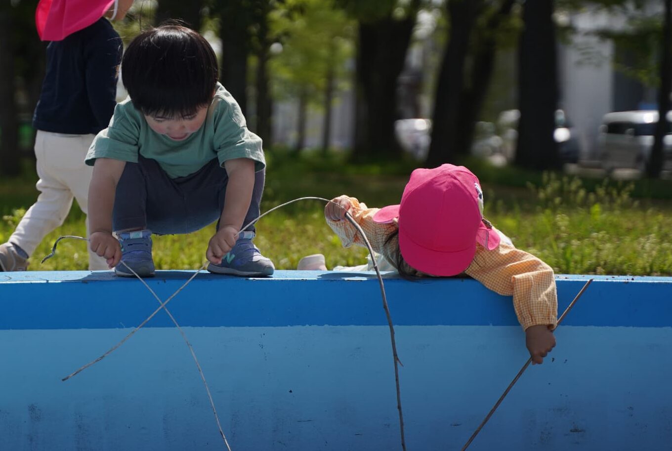 いちご組さんのお友だちも一緒になって興味津々に魚が釣れるのをじ〜っと観察していましたよ👀