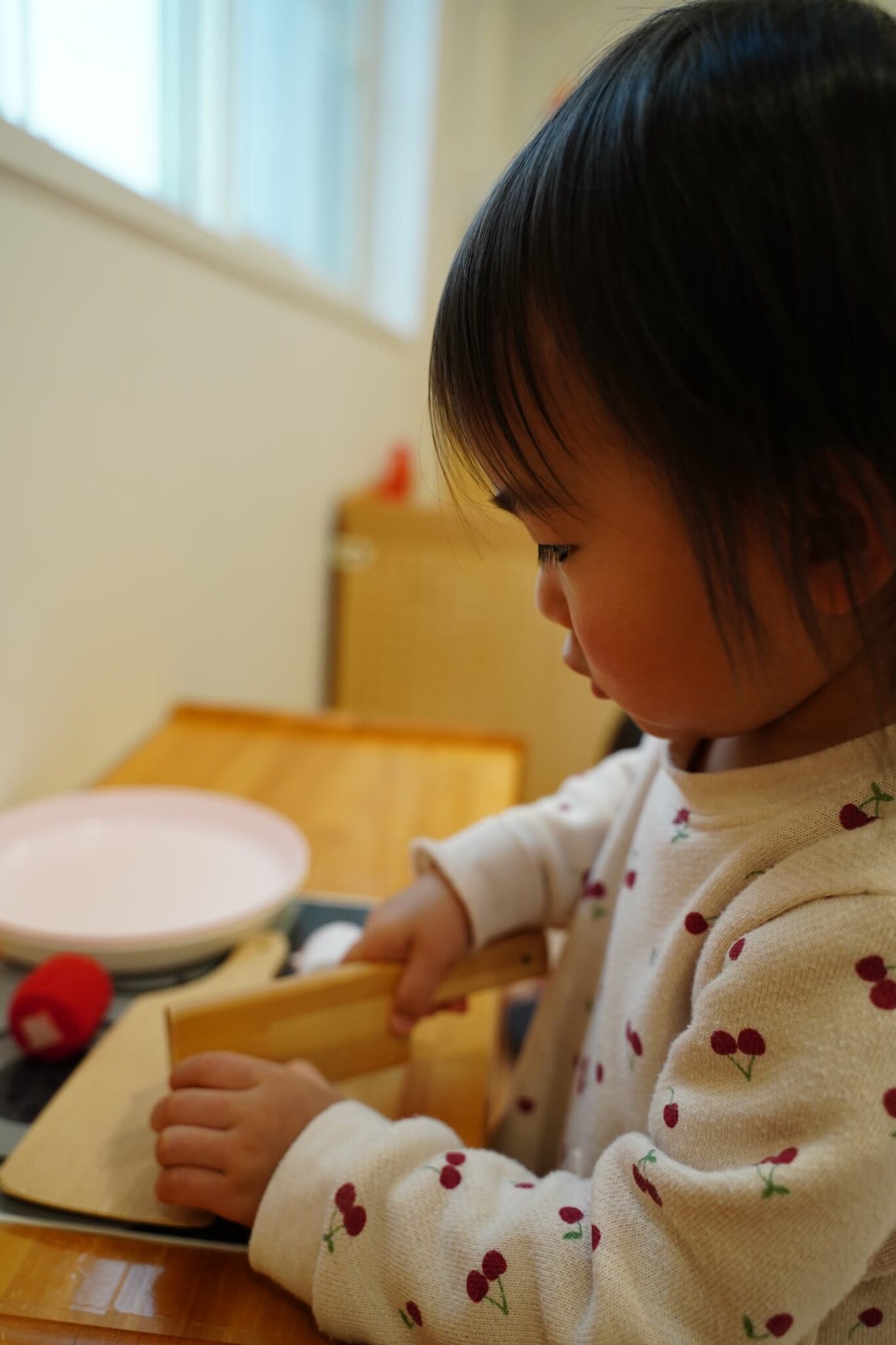 お部屋に戻ったら、食べ物の絵本を読んだり包丁でトントンお料理したりと、しっかりお腹を空かせてご飯の準備はバッチリ👌