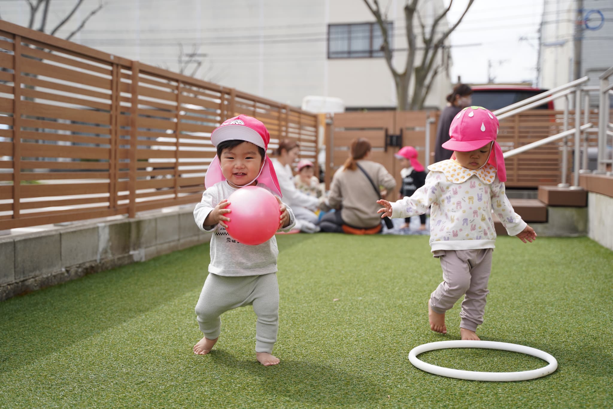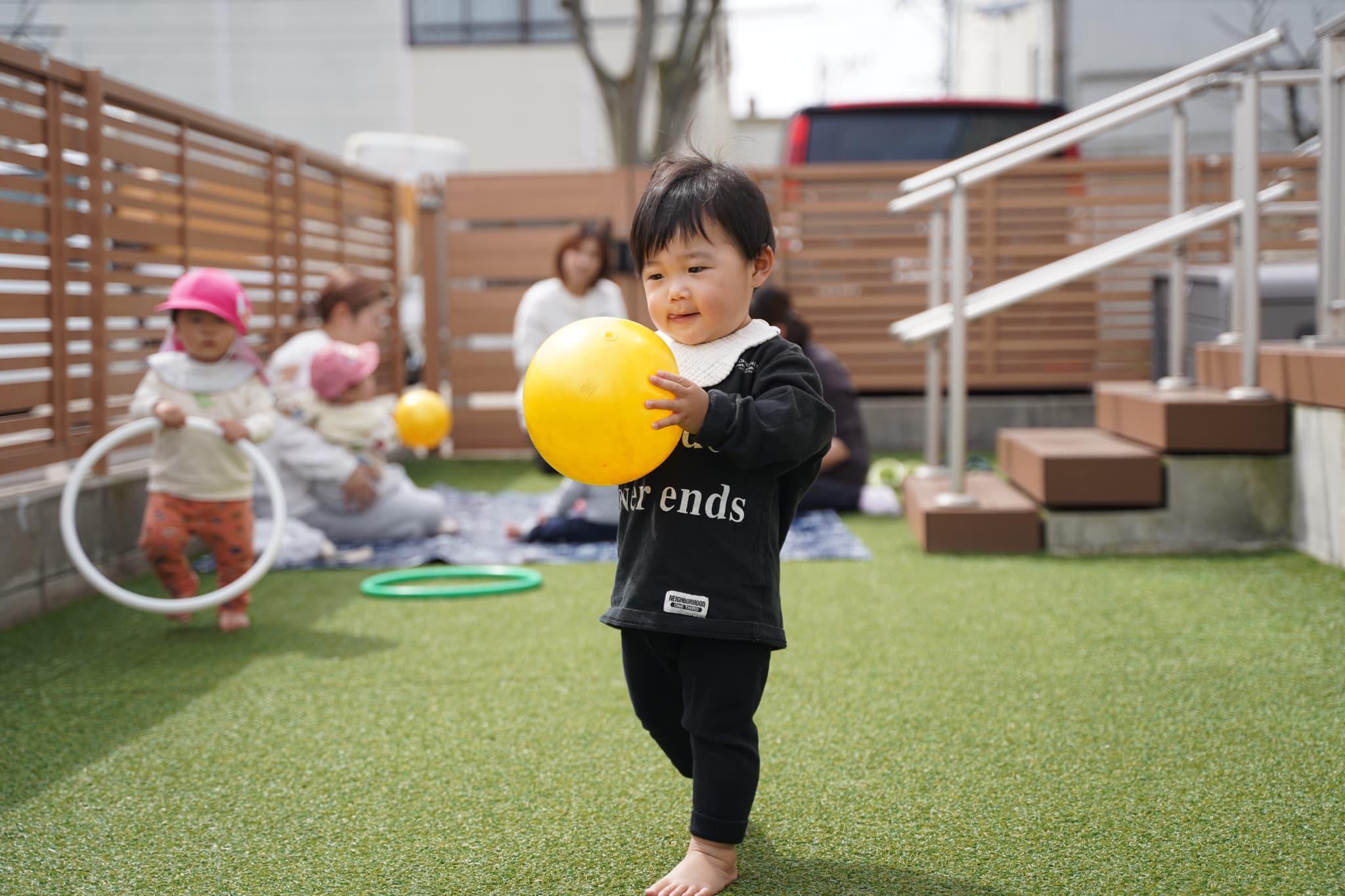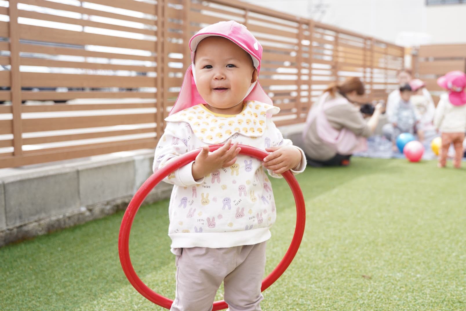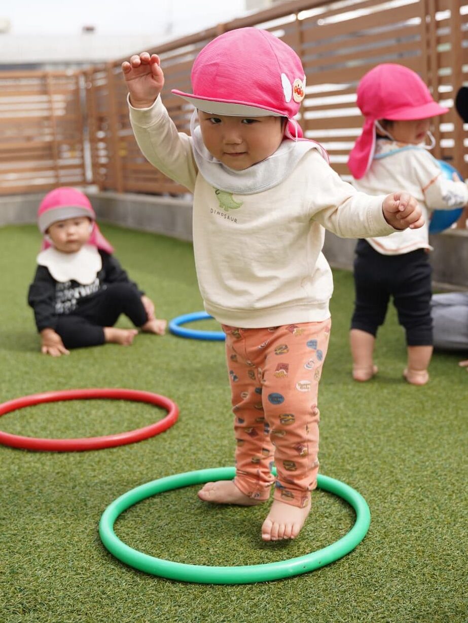 園庭でフラフープやボールを出して遊びましたよ♩